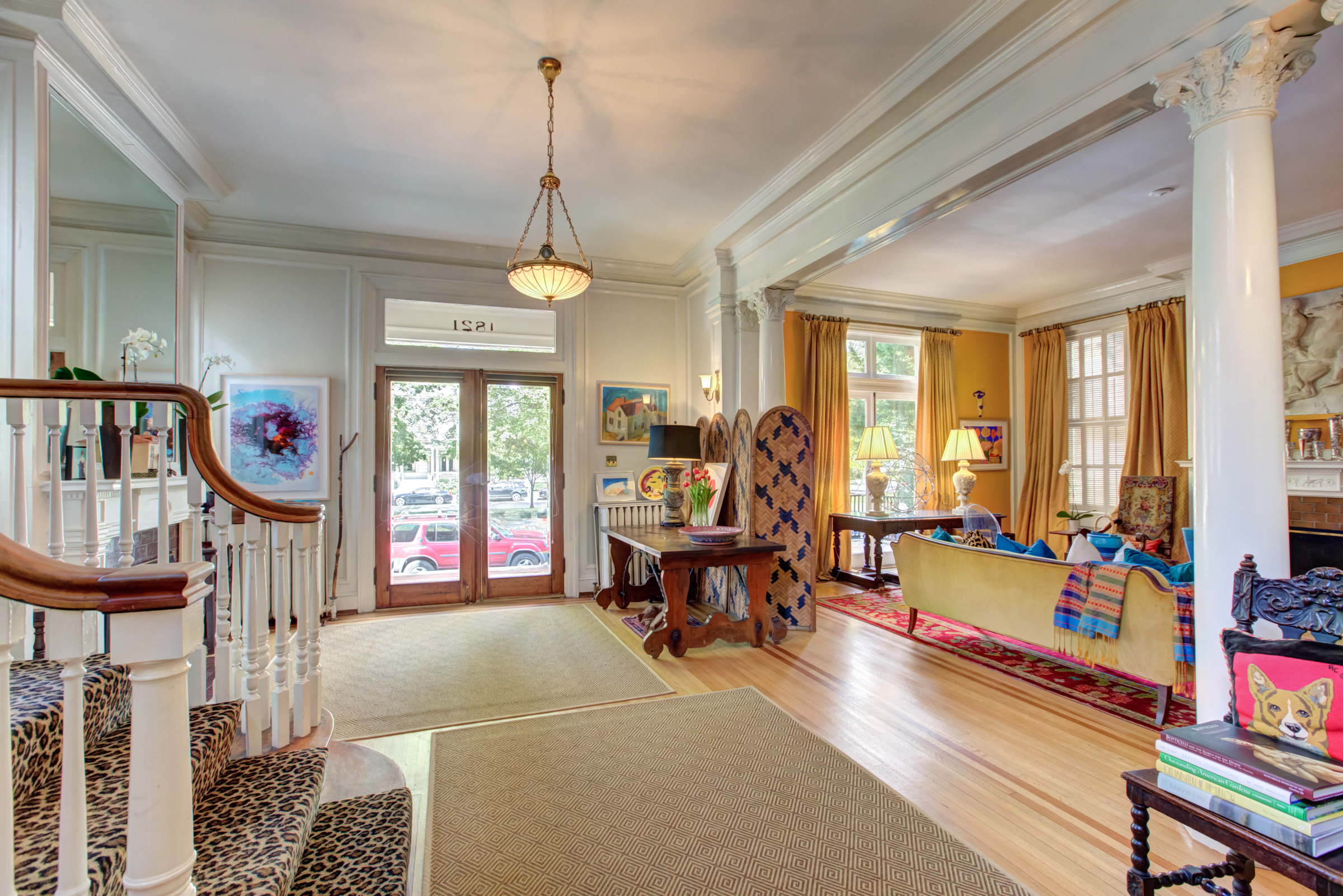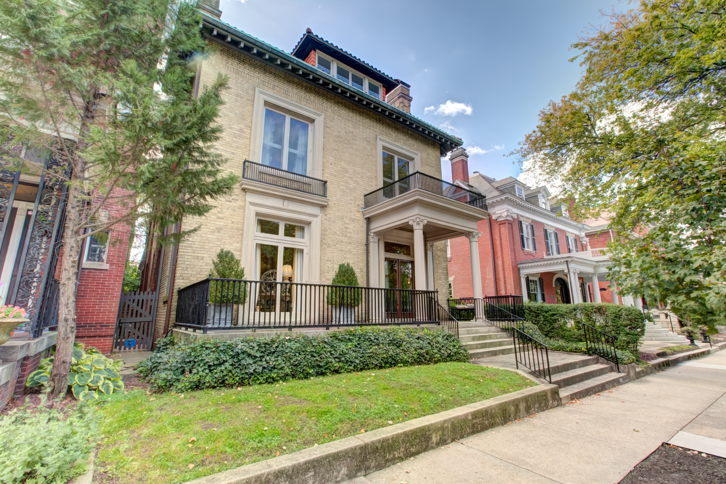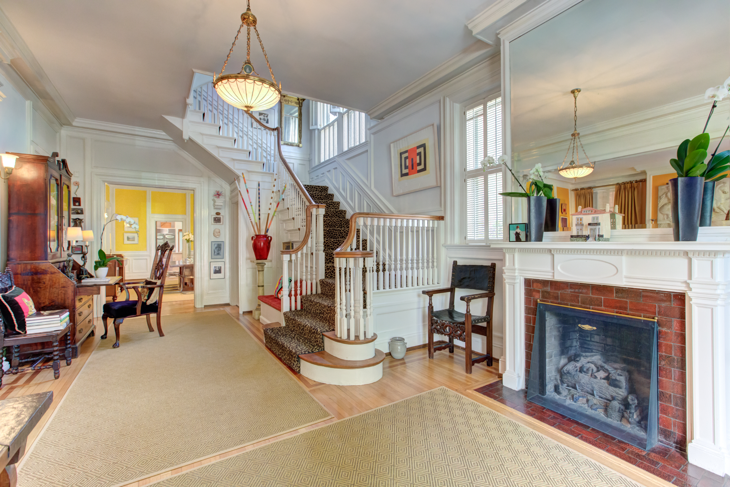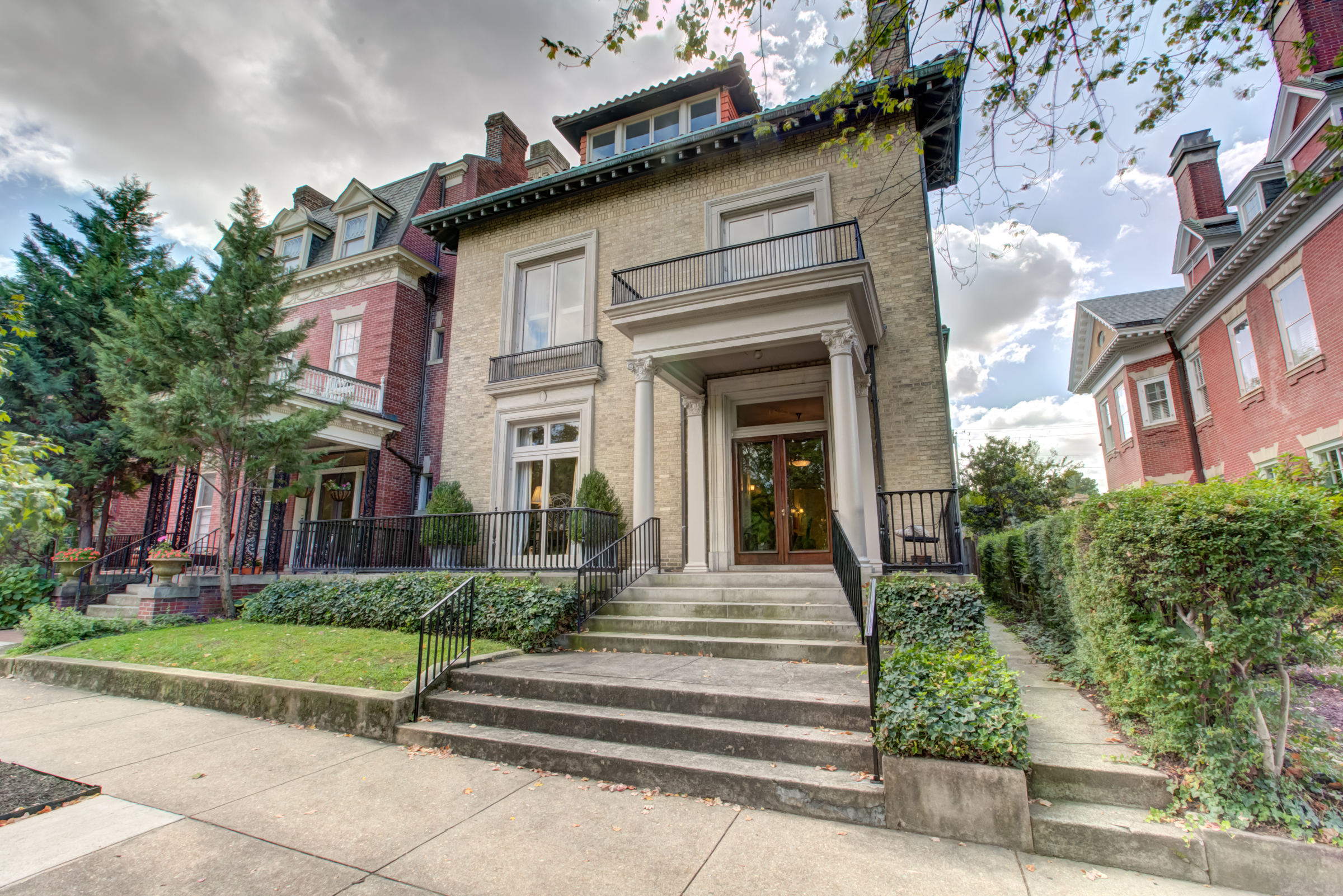 Designed by noted Richmond architect W. Duncan Lee, this crisply detailed residence was built in 1912 and is a masterful expression of the Colonial Revival style. The exterior is predominantely Italian Renaissance Revival, with it’s cubic facade, red tile roof, eave overhangs and wide windows. The interior is grand and graceful with classical detailing in the formal rooms. The large openings between the rooms, high ceilings, and large windows give the interior a sense of light, air and openenss – typical characteristics of Duncan Lee homes. The kitchen was enlarged and renovated in 2014 and is modern and efficient with historic touches. The second floor bedrooms are spacious and retain their original fireplace mantles in a variety of Colonial Revival designs. The main staircase leads to a third floor which opens onto two large rooms – a recreation room with an alcove and window seat and the other used as a bedroom. The house features an unfinished partial basement, 2-car detached garage with an unfinished carriage space above, loggia and herringhbone patterned brick garden. The garden provides a lush oasis of greenery in the heart of the city. Truly a special and beautiful property.