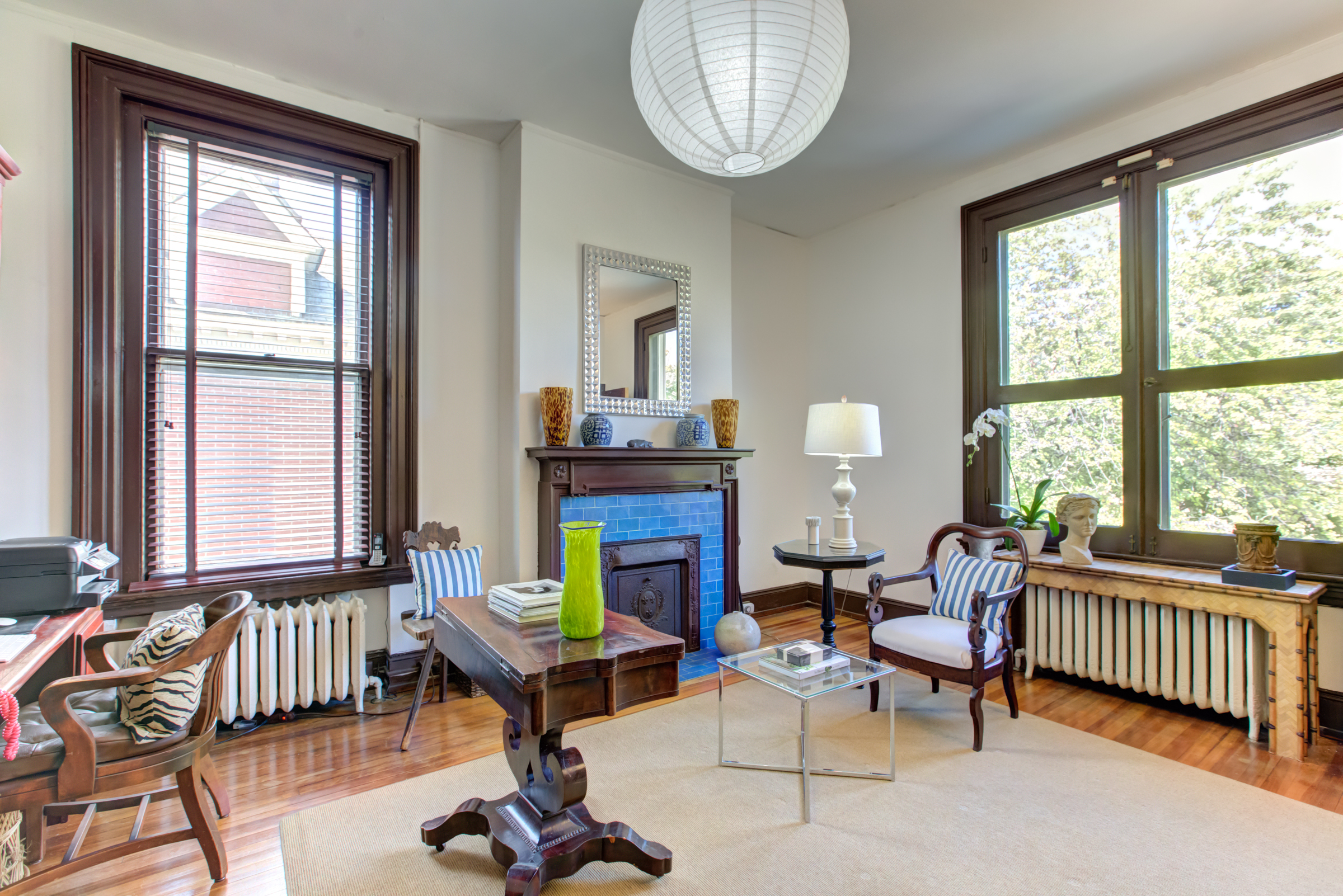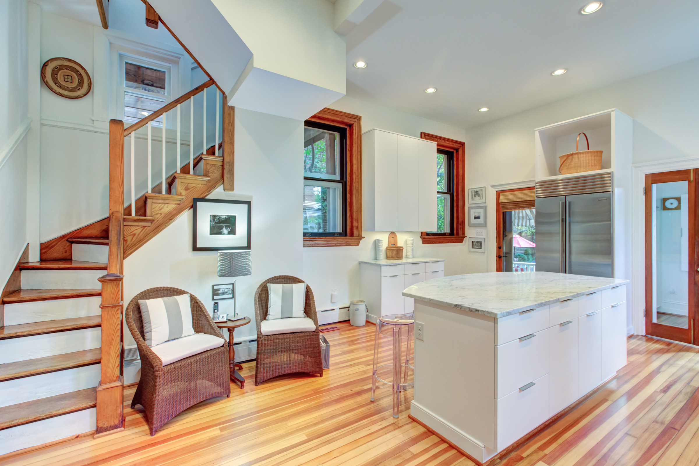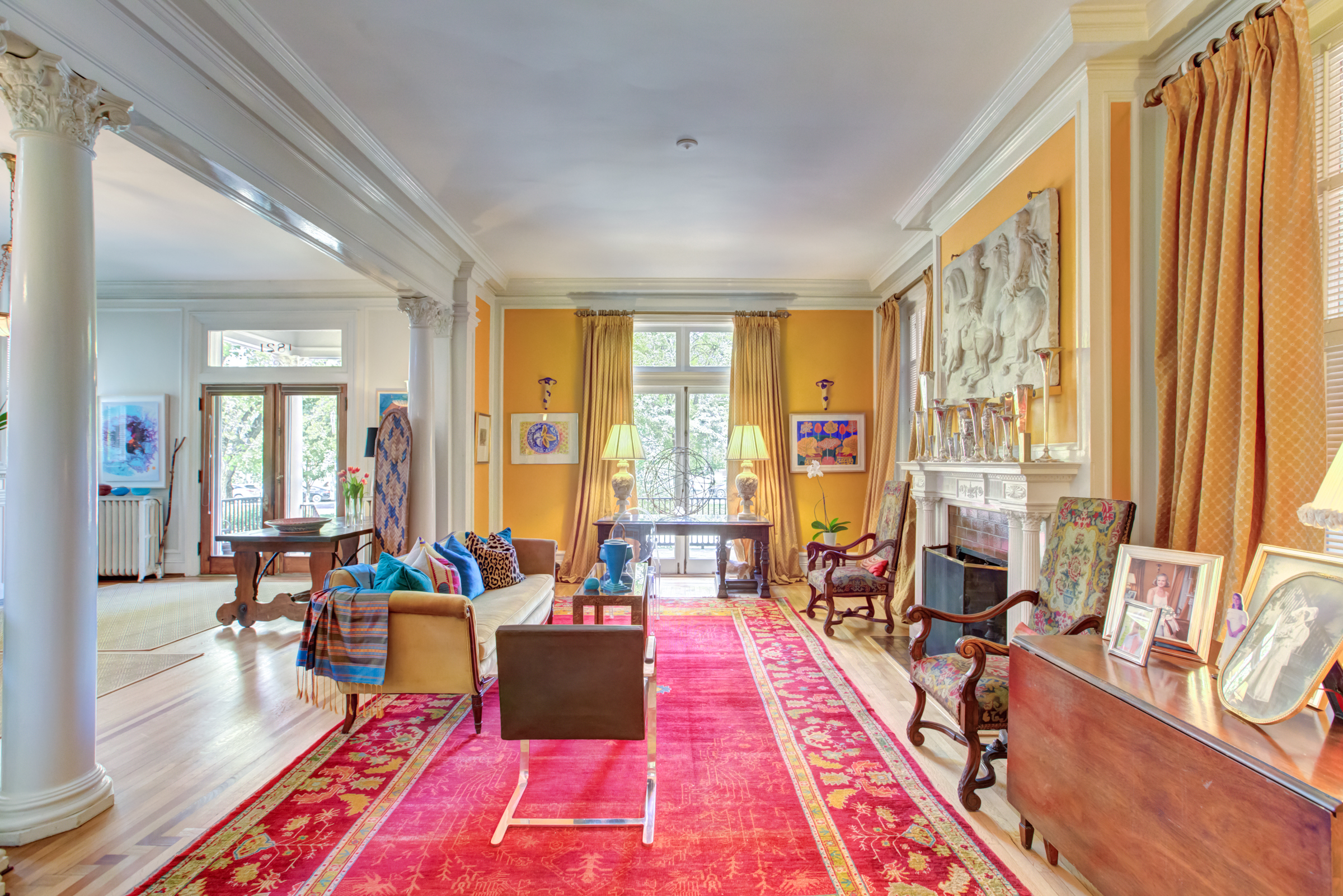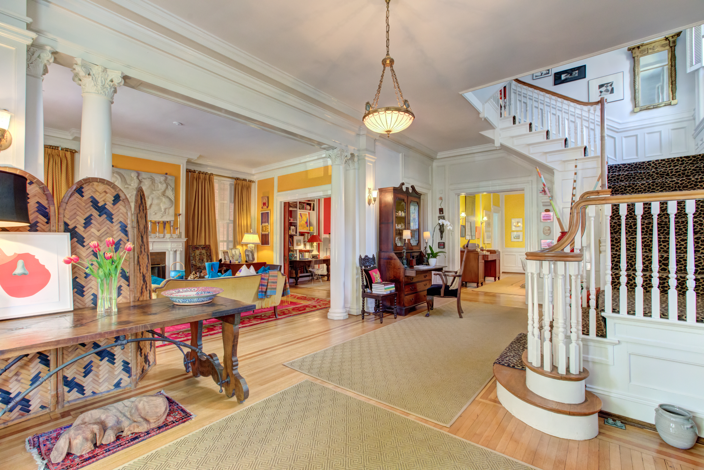 Designed by noted Richmond architect W. Duncan Lee, this crisply detailed residence was built in 1912 and is a masterful expression of the Colonial Revival style. The exterior is predominantely Italian Renaissance Revival, with it’s cubic facade, red tile roof, eave overhangs and wide windows. The interior is grand and graceful with classical detailing in the formal rooms. The large openings between the rooms, high ceilings, and large windows give the interior a sense of light, air and openenss – typical characteristics of Duncan Lee homes. The kitchen was enlarged and renovated in 2014 and is modern and efficient with historic touches. The second floor bedrooms are spacious and retain their original fireplace mantles in a variety of Colonial Revival designs. The main staircase leads to a third floor which opens onto two large rooms – a recreation room with an alcove and window seat and the other used as a bedroom. The house features an unfinished partial basement, 2-car detached garage with an unfinished carriage space above, loggia and herringhbone patterned brick garden. The garden provides a lush oasis of greenery in the heart of the city. Truly a special and beautiful property.