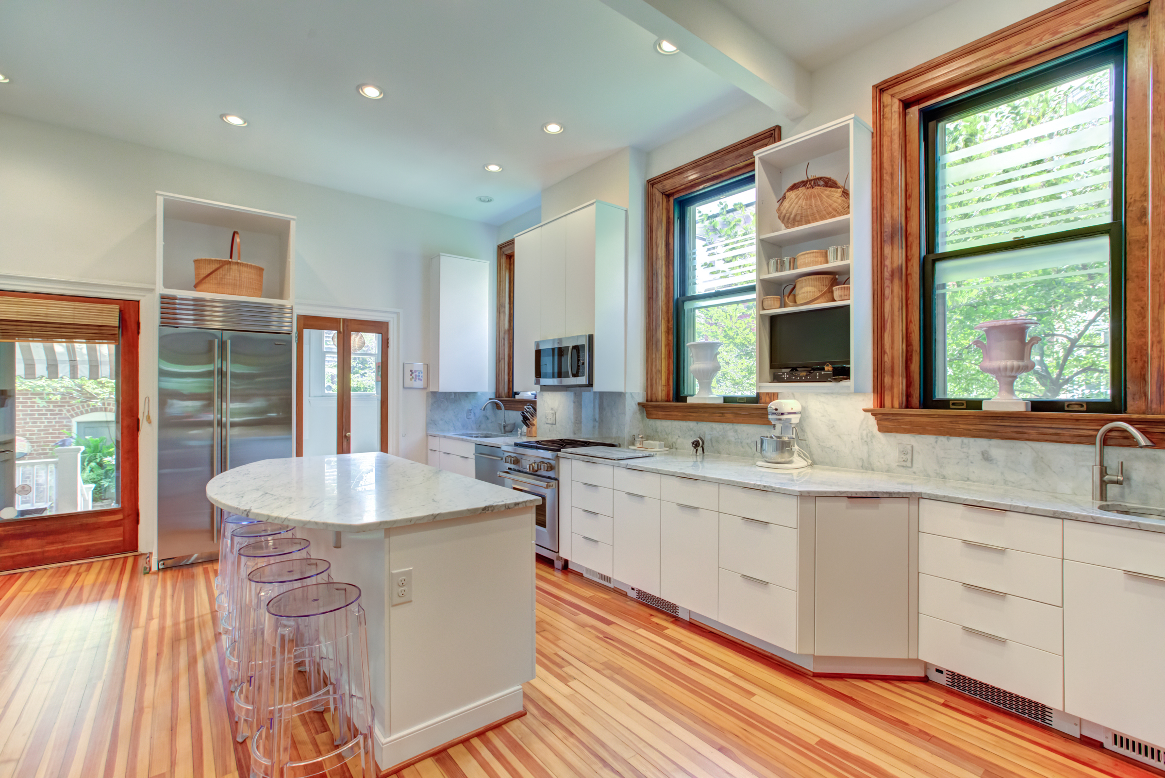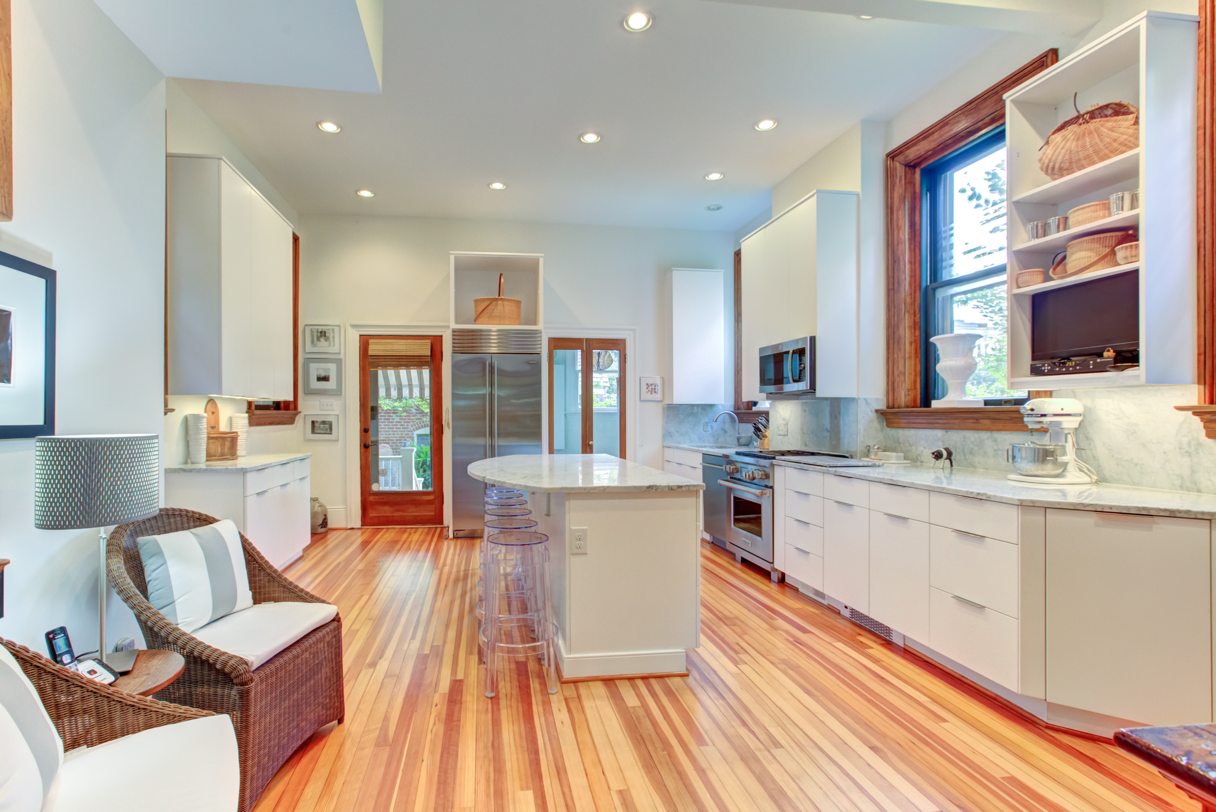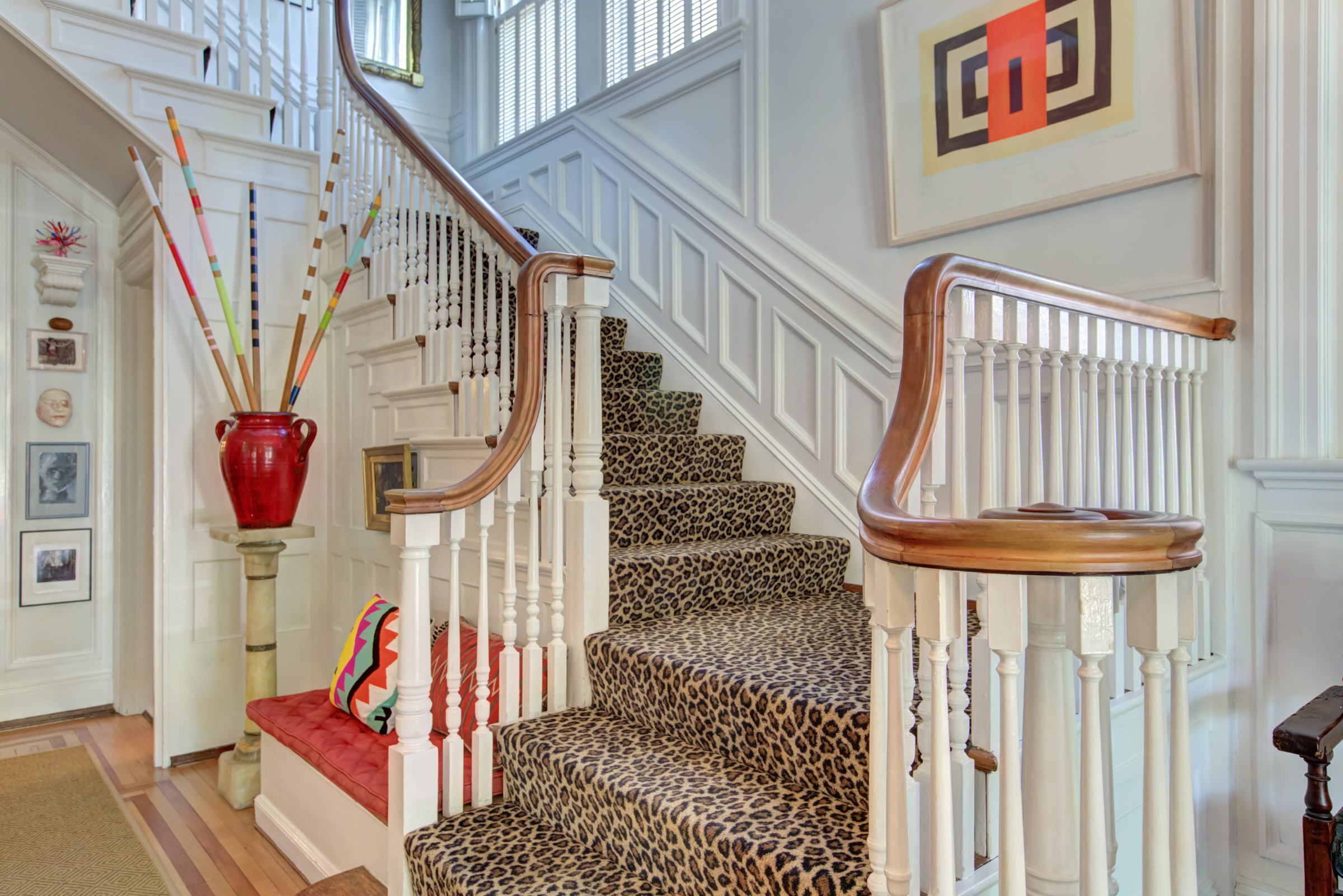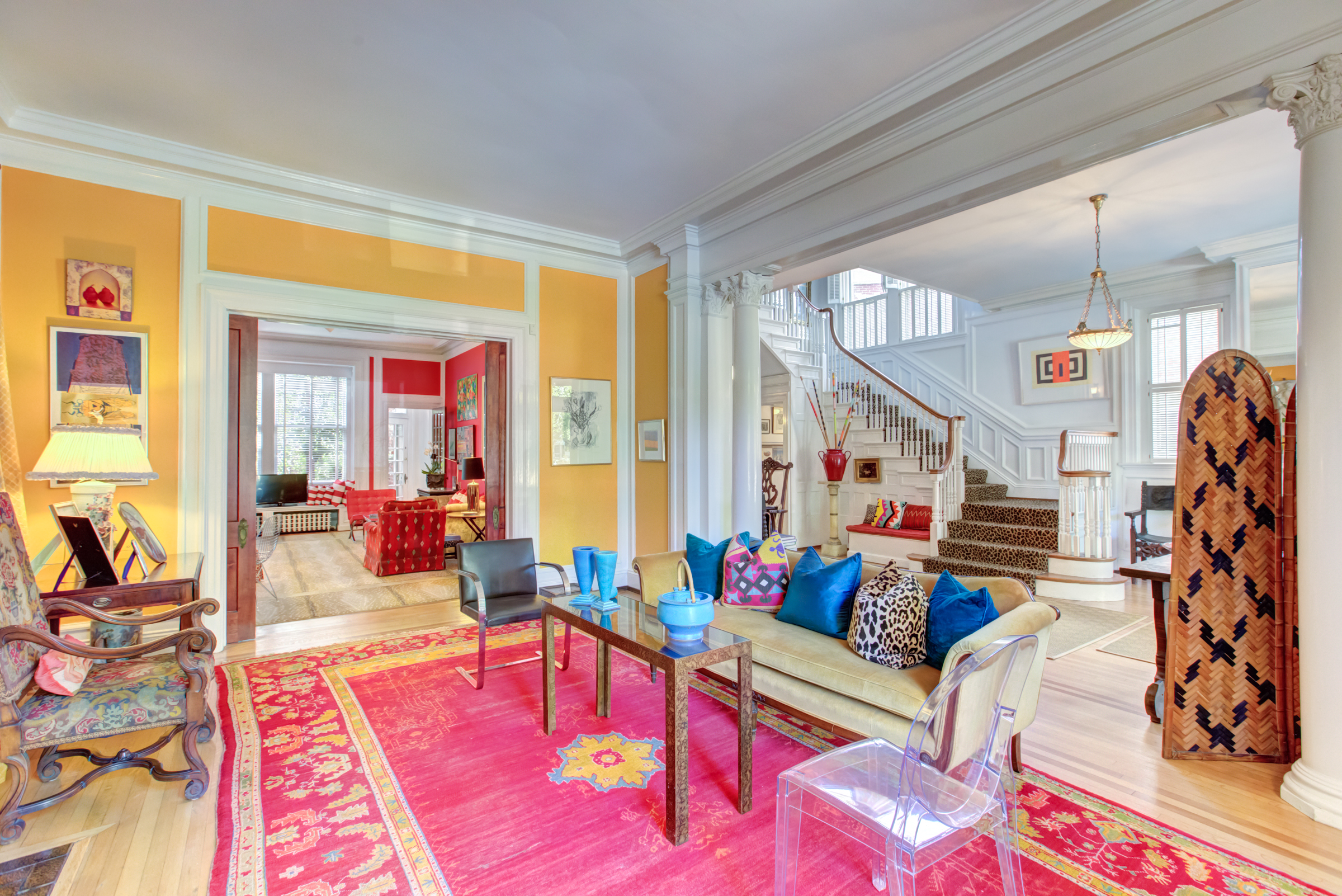 Designed by noted Richmond architect W. Duncan Lee, this crisply detailed residence was built in 1912 and is a masterful expression of the Colonial Revival style. The exterior is predominantely Italian Renaissance Revival, with it’s cubic facade, red tile roof, eave overhangs and wide windows. The interior is grand and graceful with classical detailing in the formal rooms. The large openings between the rooms, high ceilings, and large windows give the interior a sense of light, air and openenss – typical characteristics of Duncan Lee homes. The kitchen was enlarged and renovated in 2014 and is modern and efficient with historic touches. The second floor bedrooms are spacious and retain their original fireplace mantles in a variety of Colonial Revival designs. The main staircase leads to a third floor which opens onto two large rooms – a recreation room with an alcove and window seat and the other used as a bedroom. The house features an unfinished partial basement, 2-car detached garage with an unfinished carriage space above, loggia and herringhbone patterned brick garden. The garden provides a lush oasis of greenery in the heart of the city. Truly a special and beautiful property.