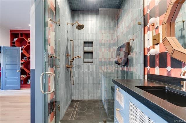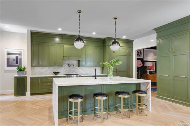 This stunning home in The Fan has been lovingly renovated from top to bottom. From the moment you step through the custom Sapele Mahogany doors you will see the high level of quality and finish work that has been applied to every surface. New white oak floors w/a rubio finish run throughout the first level w/ a herringbone pattern in the kitchen and half bath. There are 10 ft ceilings on the 1st and 2nd level, mouldings have been added in many rooms & new Marvin insulated windows have been installed. The kitchen was completely redone in 2018/2019 w/top of the line appliances and gorgeous waterfall & mitered Calcutta Gold honed marble countertops. The basement was finished in 2015 & offers 785 sq. ft. of space for an office/playroom/ 5th bedroom. Every bathroom has been renovated, almost every doorknob replaced with Emtek Hex knobs & all 1st floor fireplace mantles & surrounds have been replaced. The exterior features a par terre garden designed by Three Graces & there is a private rear patio w/ a pathway to the 2- car detached garage. All of this and so much more! Located steps from Eight and a Half Italian Restaurant and Strawberry Street Market.