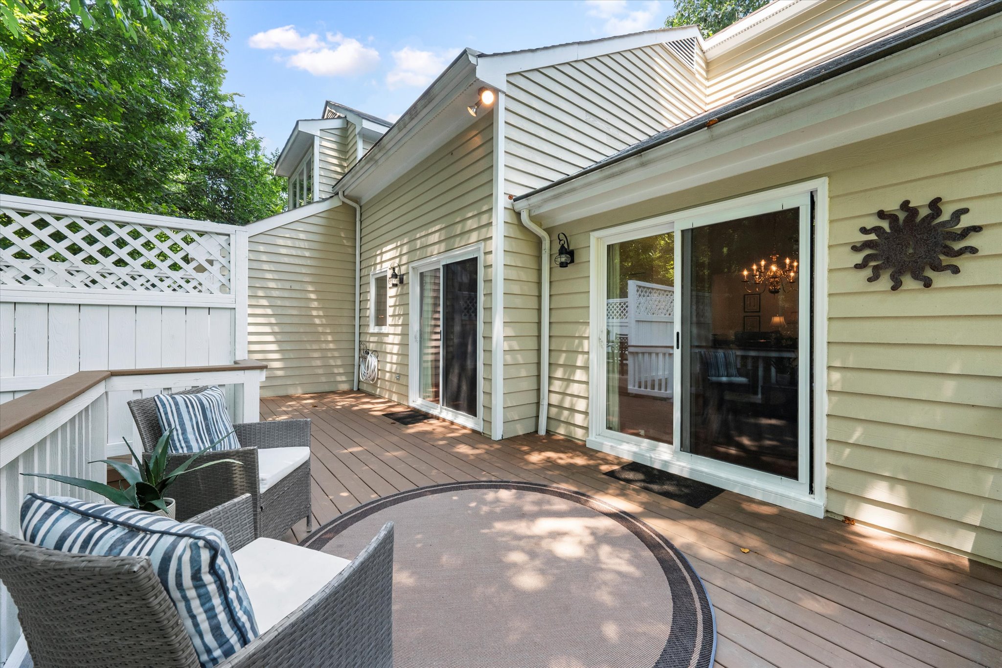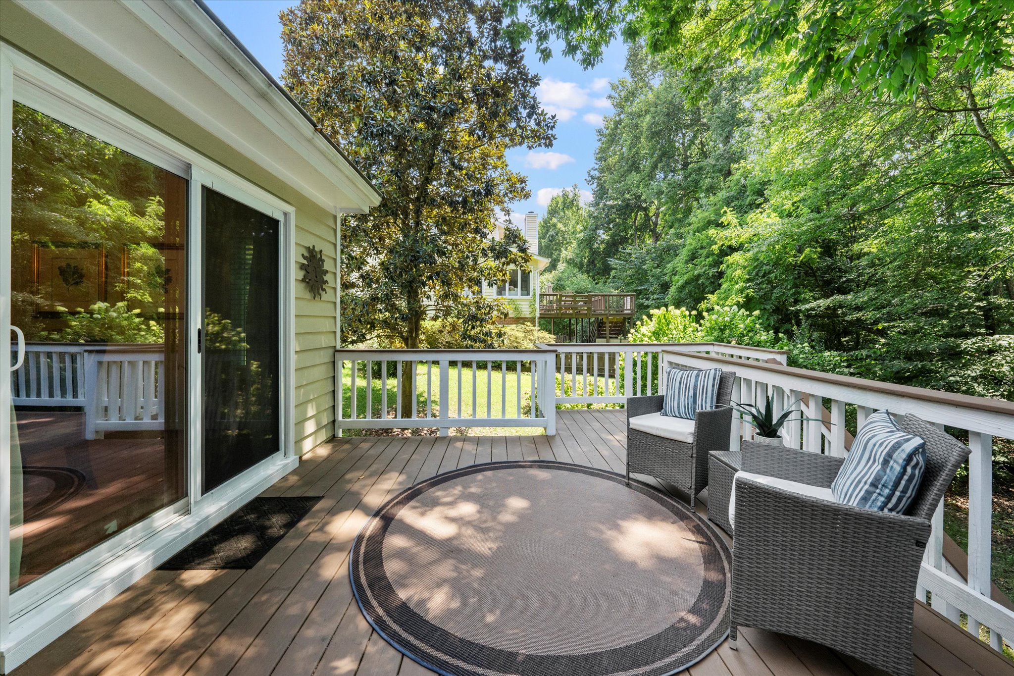 Nestled in one of Brandermill’s most coveted neighborhoods with access to walking paths, the community pools, and scenic lake, this pristine 3-bedroom, 2.5-bath transitional home offers a spacious open floor plan with vaulted ceilings, hardwood floors throughout the first floor, and a cozy gas fireplace. The kitchen features granite countertops, stainless steel appliances, and connects seamlessly to a large rear deck—accessible from both the kitchen and dining room—ideal for indoor/outdoor entertaining. The FIRST-FLOOR primary suite is a private retreat, featuring a generous walk-in closet and en-suite bath complete with a jacuzzi soaking tub and separate glass shower. Upstairs offers two more bedrooms, a full bath, and a versatile loft space perfect for a home office or recreation room. Additional highlights include a finished basement with a private Swedish sauna and attached 2-car garage. Don’t miss your chance to live in a move-in ready home with modern comforts and access to Brandermill’s unbeatable lifestyle amenities.