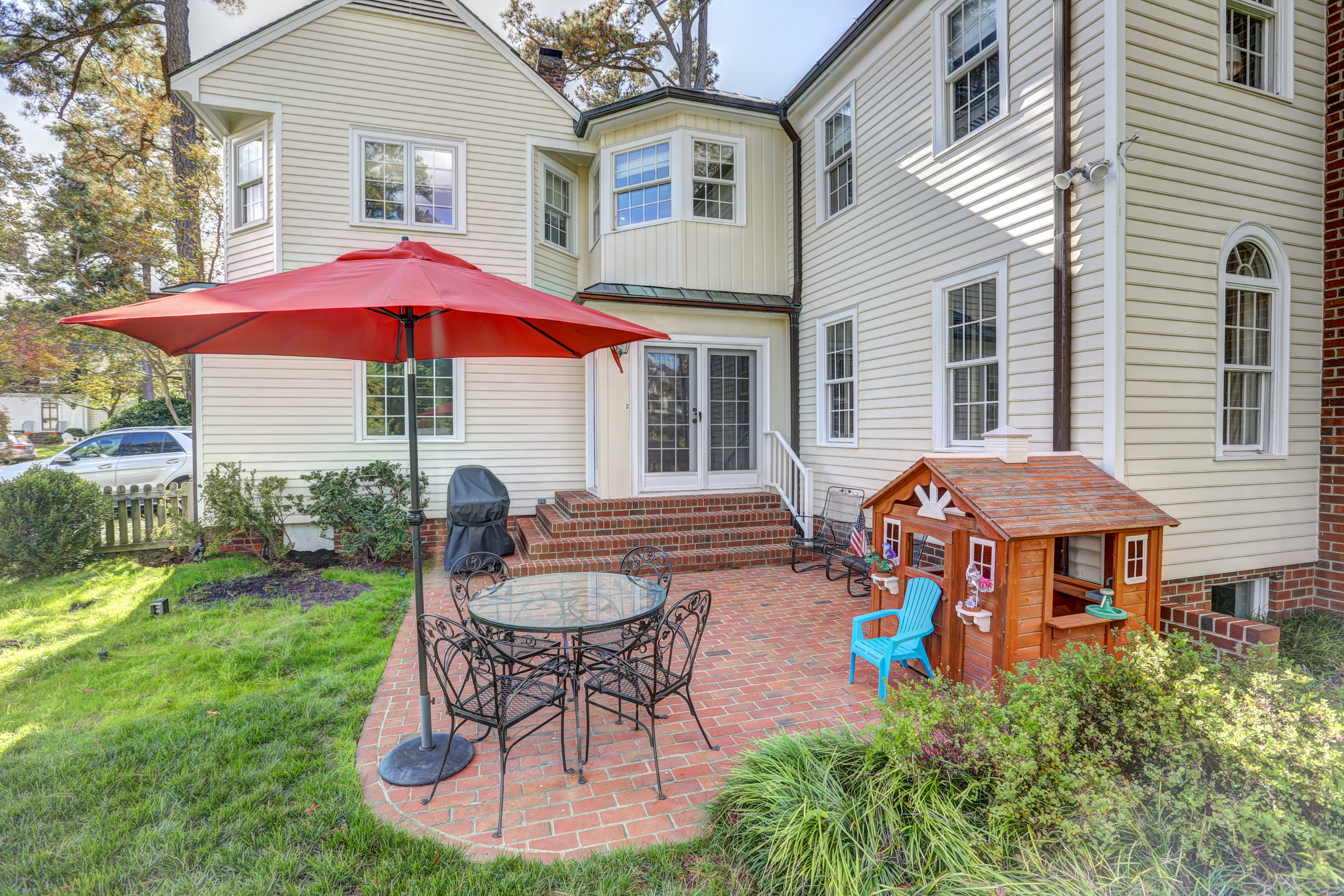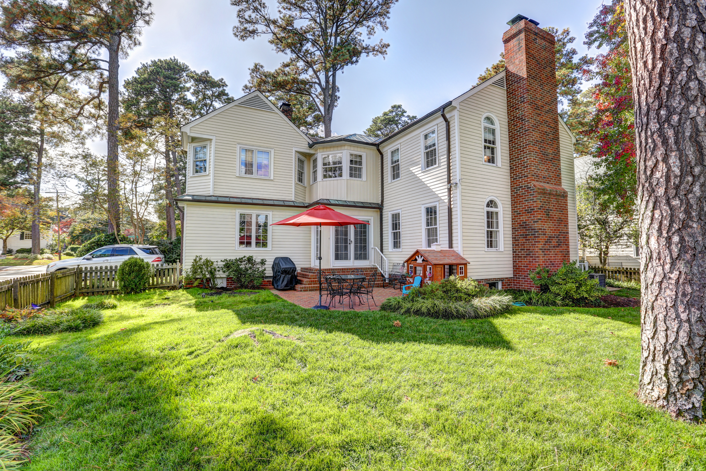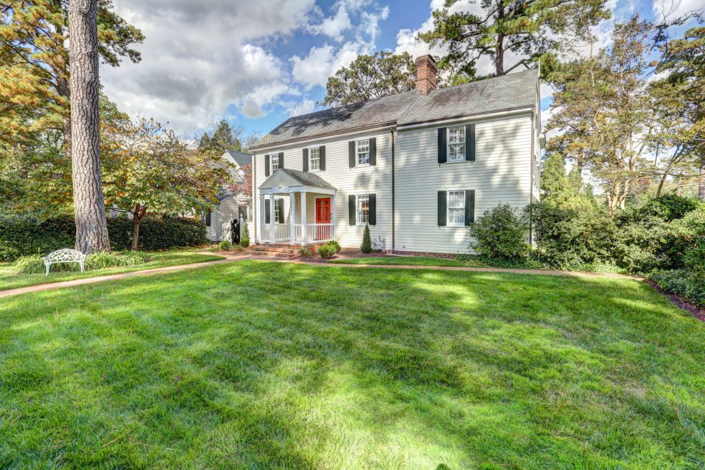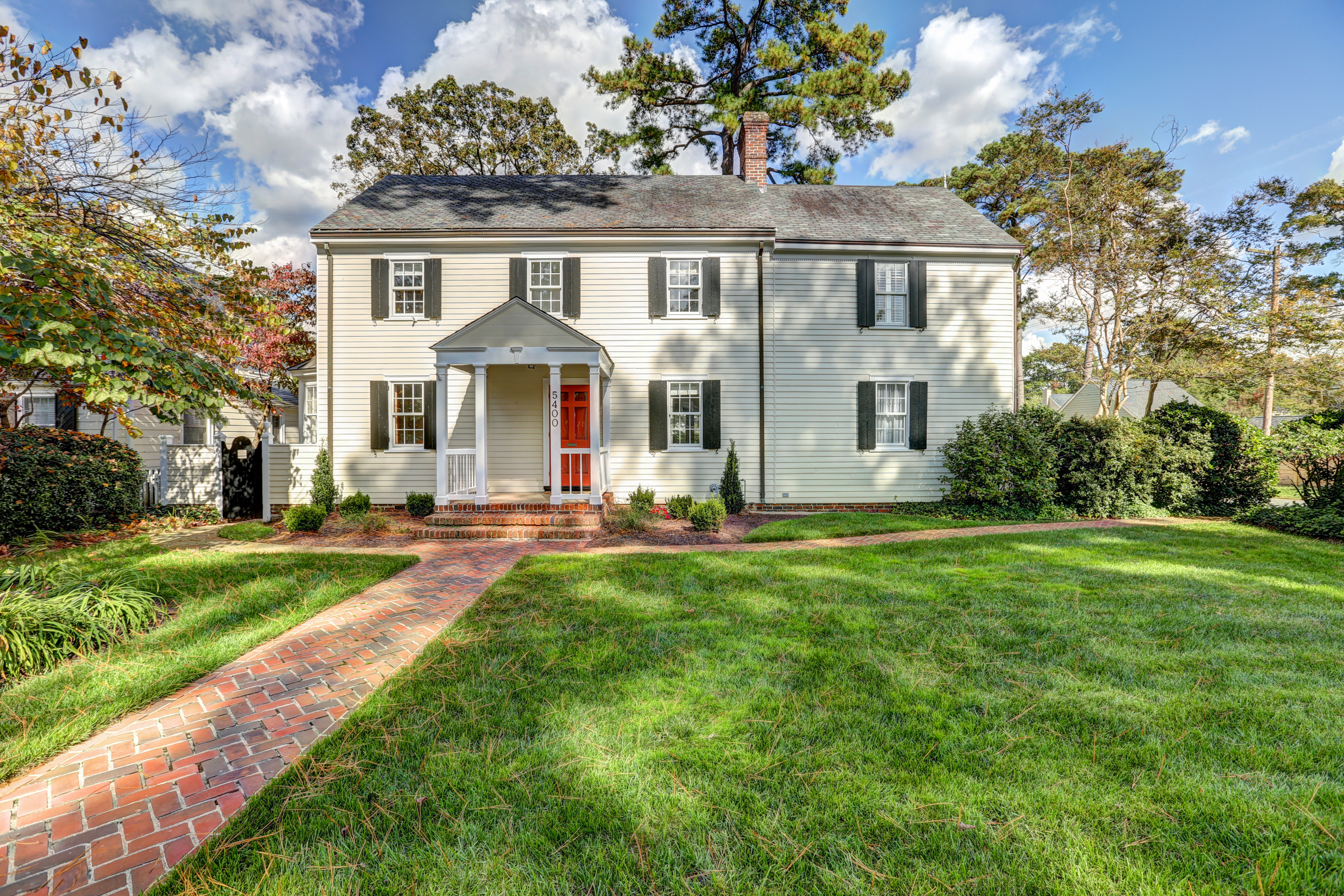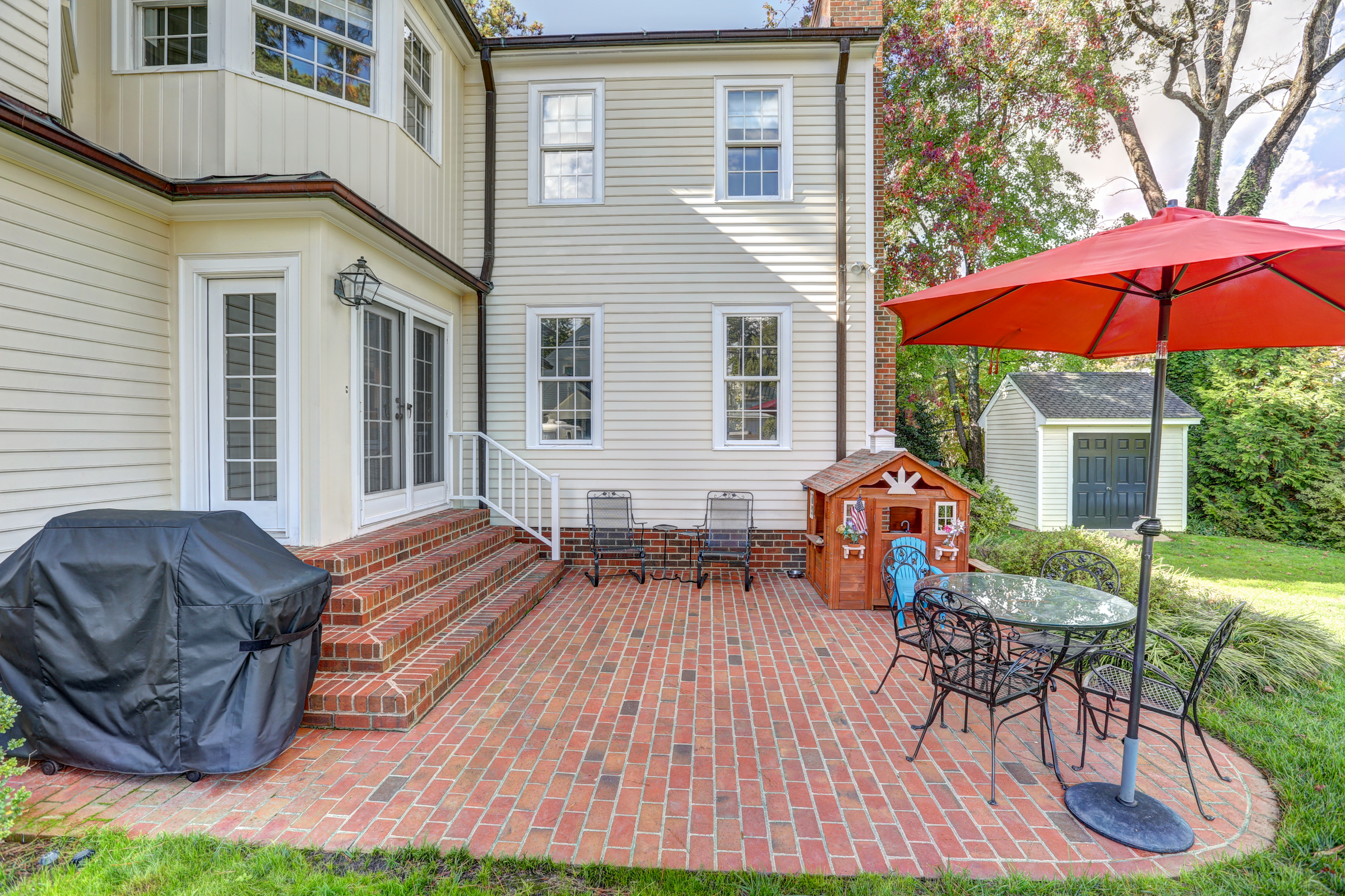Built in 1945 and renovated and expanded over the years, this 2-story Colonial offers 3600 sf of living space and exception flow on a sunny corner lot. The first floor offers gracious formal living and dining rooms, a sleek renovated eat-in kitchen with Neff custom cabinetry and Subzero/Wolf/Miele appliances, a family room with fireplace and a handsome study with built-in shelves/cabinets. Upstairs you will find a large master suite with vaulted ceiling, large bath, vanity area and closets galore plus 3 additional bedrooms – each with its own bath – and a laundry room and built-in desk area. There is added flexibility with an option for a 5th bedroom/first floor bedroom suite – complete with full bath, closet and elevator. Bonus features include the lovely brick patio/walkways and landscaped yard, excellent attic and basement storage, irrigation and security systems and an unbeatable location within walking distance of the Libbie/Grove area for nearby shopping and dining.