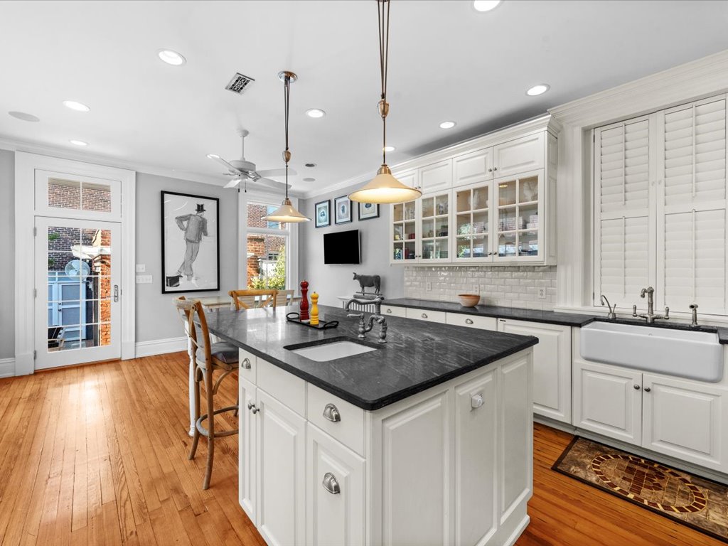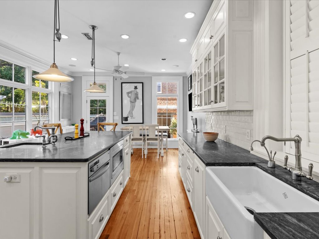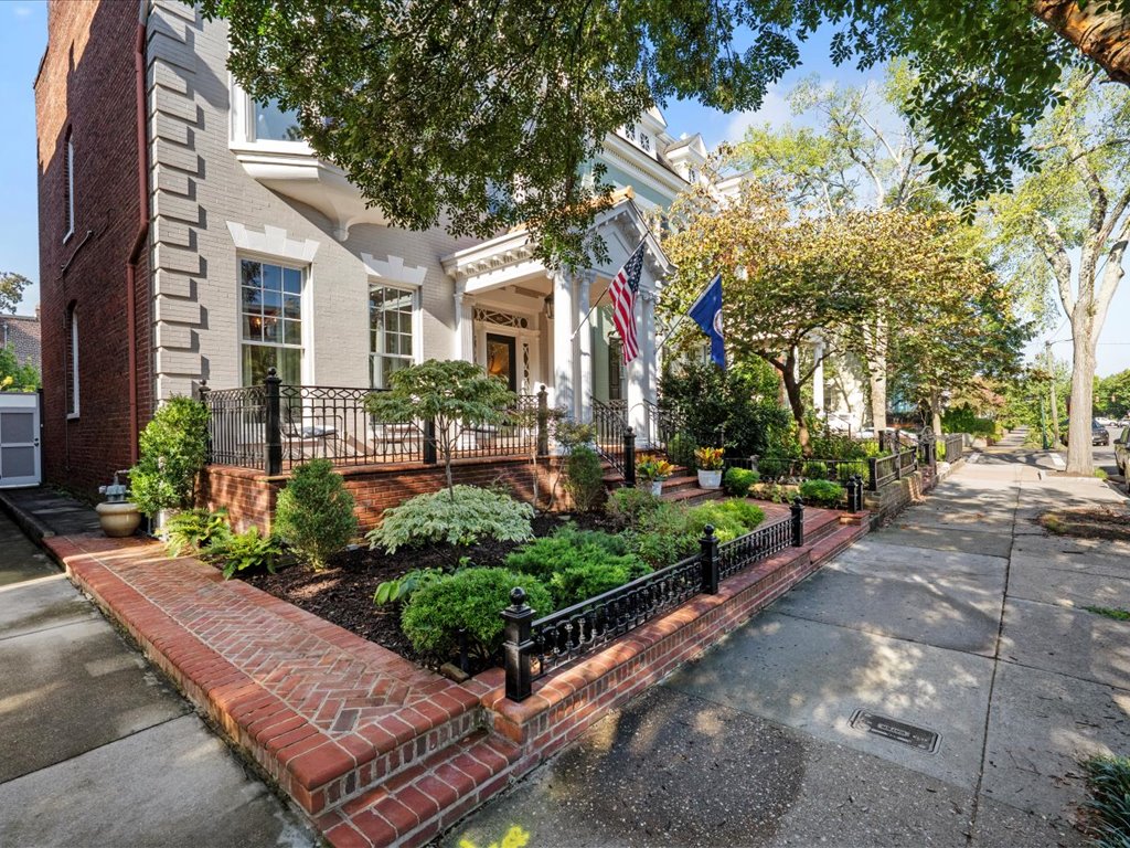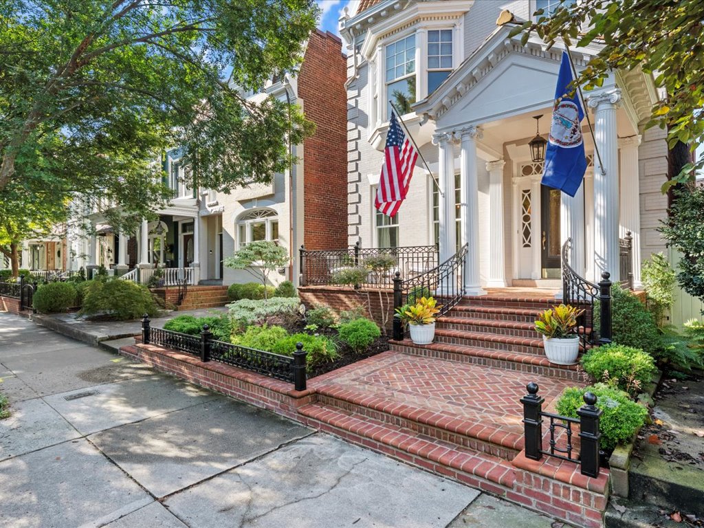 This distinguished Colonial Revival 3 bedroom, 2 1/2 bath turnkey home pairs timeless architectural elegance with inviting outdoor spaces that create an unforgettable extension of the home. Located on one of the most desirable blocks in the heart of the Historic Fan District, you are welcomed by the handsome façade with columned portico, full front porch and bay window. The interior of this home offers 10+ foot ceilings, 6 fireplaces, heartpine floors and beautiful architectural details such as wainscoting, multi-member crown moulding and diamond pane windows. The living room with pocket doors opens to the formal dining room with built-in cabinets and shelves. The spacious family room with gas fireplace and handsome wainscoting is adjacent to the gourmet eat-in kitchen with custom cabinetry, soapstone counters/island and SubZero/Wolf appliances. Upstairs you will find a sumptuous primary suite composed of a generous bedroom with adjoining room – perfect for an office, dressing room or den, and ensuite bath and walk-in closet. The second floor is completed by two more bedrooms, large jack-and-jill bath and upstairs laundry. French doors open from the kitchen to a brick-walled bluestone terrace – complete with cascading water features, an outdoor fireplace, and an open-air gazebo —perfect for al fresco evenings for gathering with family and friends. Enjoy the best of urban living offering walkability to great restaurants and the VMFA and with easy access to Scott’s Addition, Carytown, downtown and the interstate.