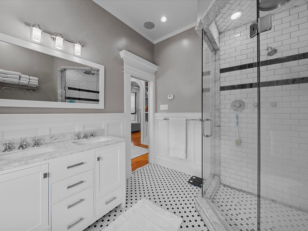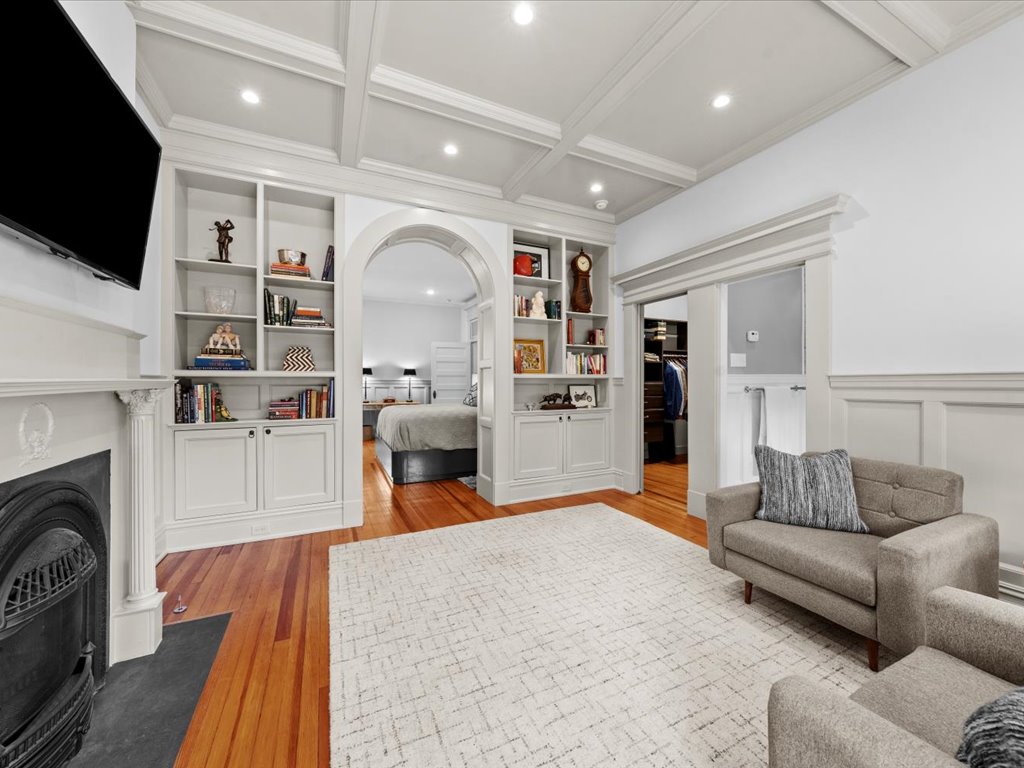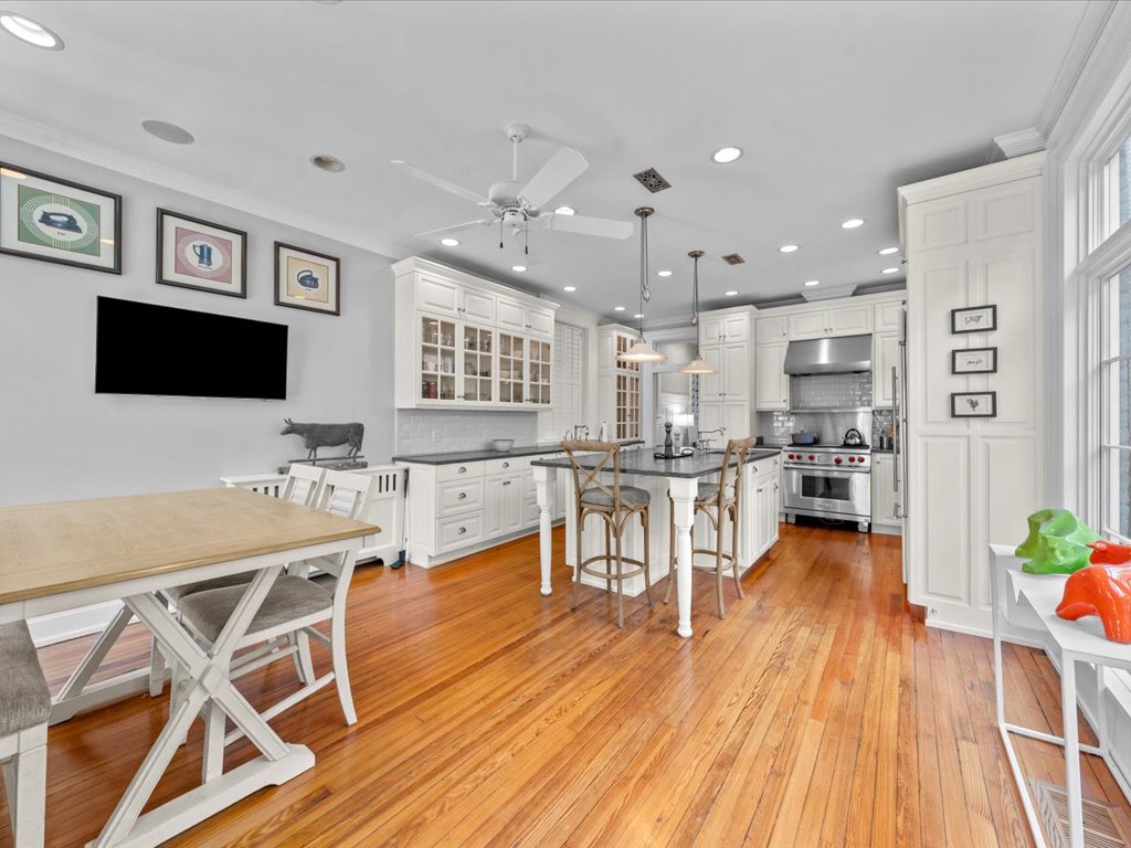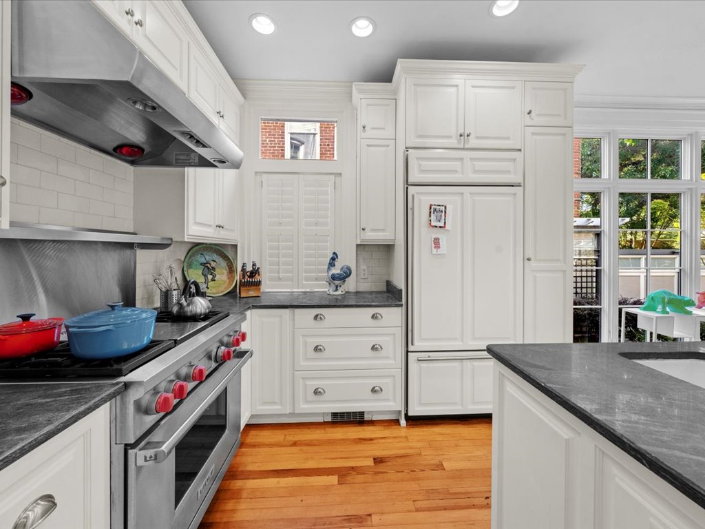 This distinguished Colonial Revival 3 bedroom, 2 1/2 bath turnkey home pairs timeless architectural elegance with inviting outdoor spaces that create an unforgettable extension of the home. Located on one of the most desirable blocks in the heart of the Historic Fan District, you are welcomed by the handsome façade with columned portico, full front porch and bay window. The interior of this home offers 10+ foot ceilings, 6 fireplaces, heartpine floors and beautiful architectural details such as wainscoting, multi-member crown moulding and diamond pane windows. The living room with pocket doors opens to the formal dining room with built-in cabinets and shelves. The spacious family room with gas fireplace and handsome wainscoting is adjacent to the gourmet eat-in kitchen with custom cabinetry, soapstone counters/island and SubZero/Wolf appliances. Upstairs you will find a sumptuous primary suite composed of a generous bedroom with adjoining room – perfect for an office, dressing room or den, and ensuite bath and walk-in closet. The second floor is completed by two more bedrooms, large jack-and-jill bath and upstairs laundry. French doors open from the kitchen to a brick-walled bluestone terrace – complete with cascading water features, an outdoor fireplace, and an open-air gazebo —perfect for al fresco evenings for gathering with family and friends. Enjoy the best of urban living offering walkability to great restaurants and the VMFA and with easy access to Scott’s Addition, Carytown, downtown and the interstate.