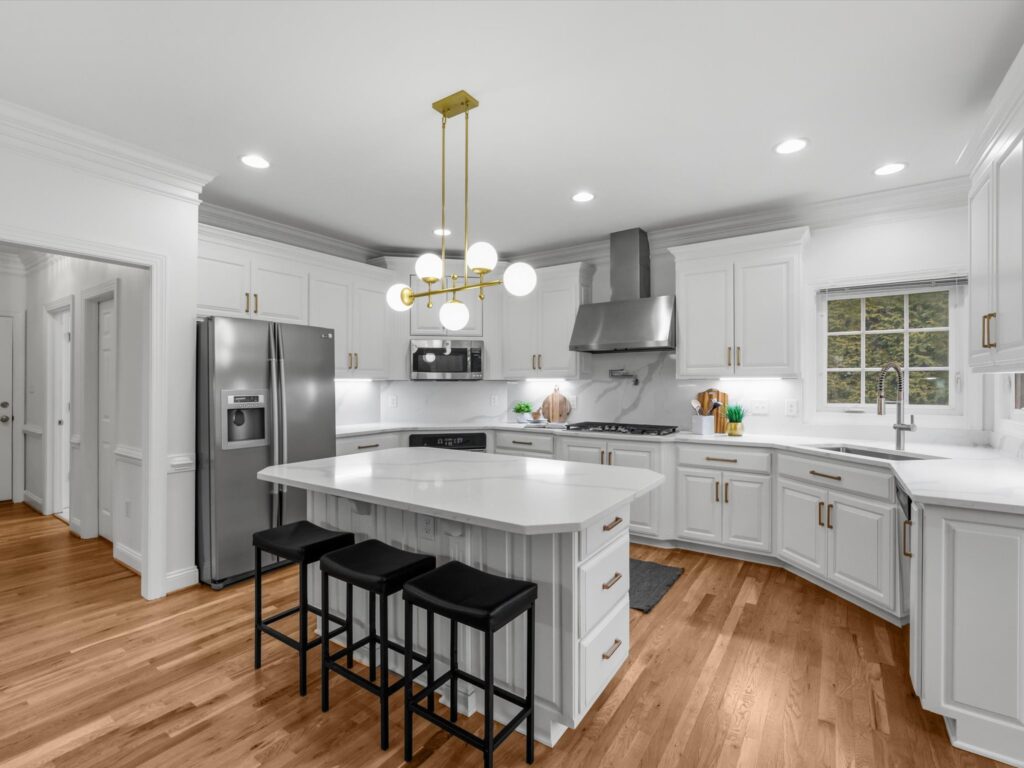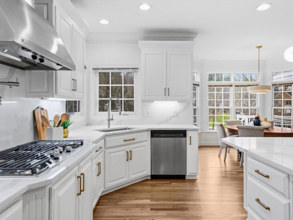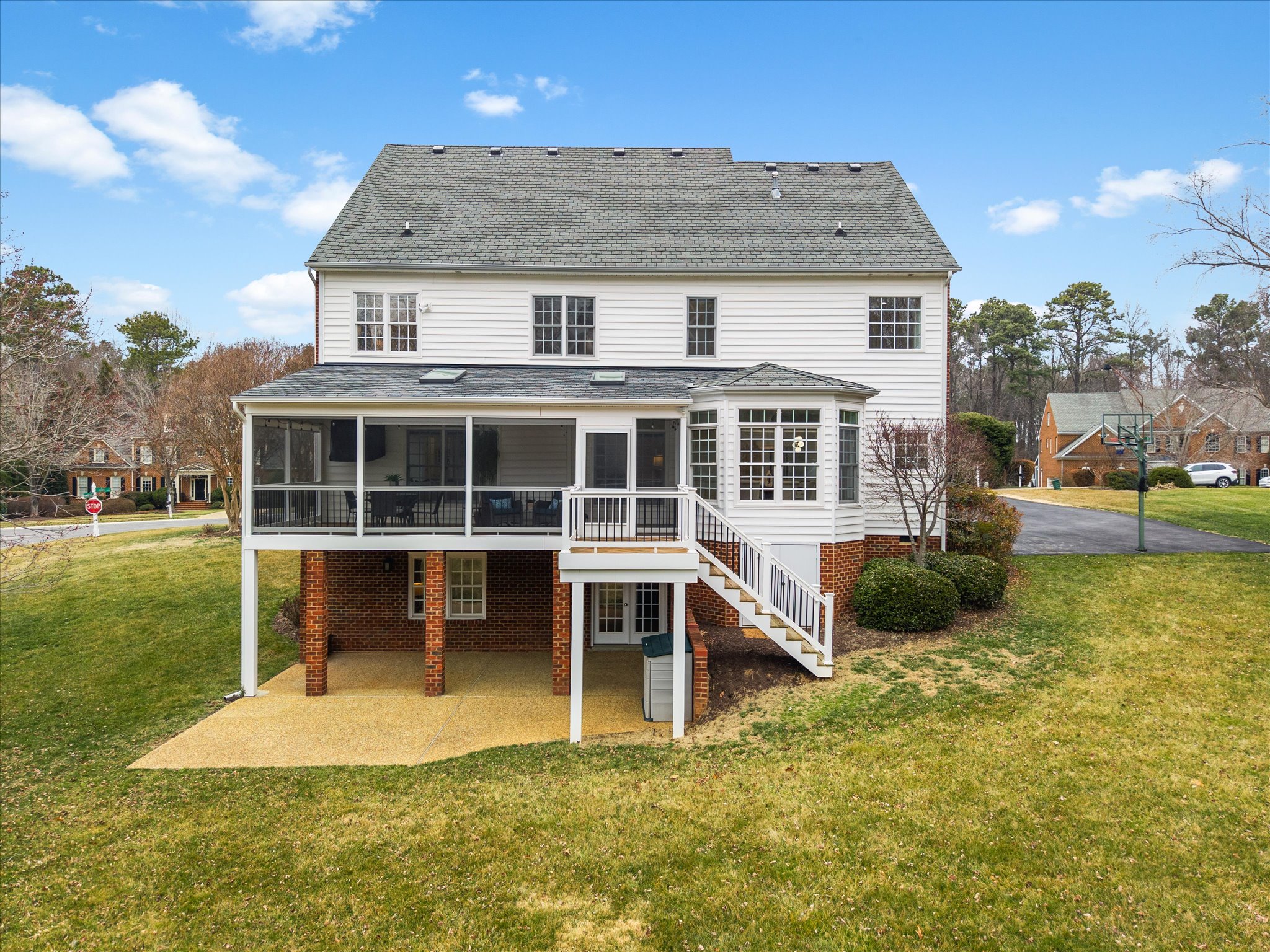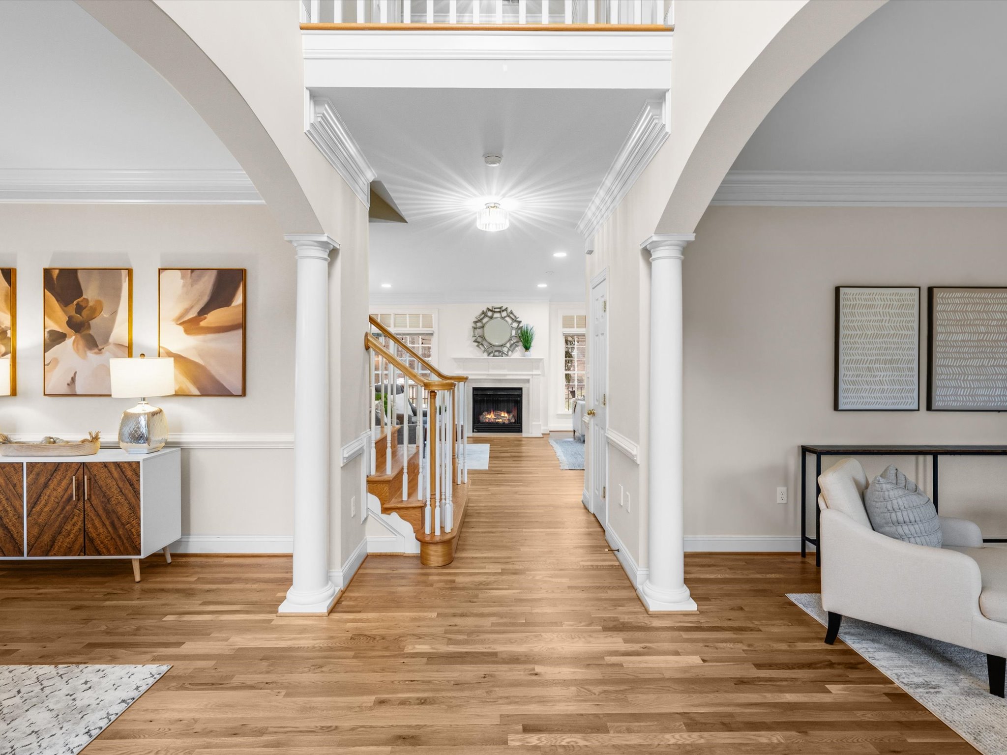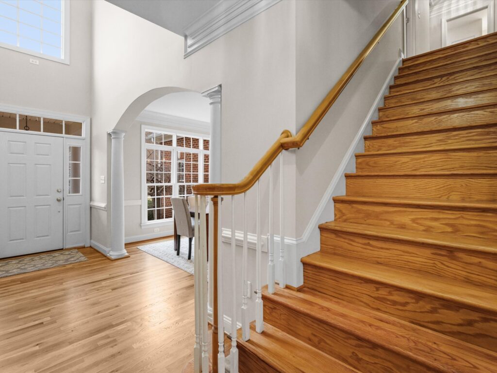 This stunning brick transitional executive home in Rosemont offers 5 bedrooms, 4 ½ baths and blends timeless architecture with a fresh, modern aesthetic and sits on a ¾-acre landscaped lot. Offering exceptional flow and highlighted by a 2-story entry foyer, 9+ foot ceilings with triple crown moldings, this home has been thoroughly refreshed in 2026 with designer-inspired upgrades throughout. The first floor offers a living room/office, formal dining room, large laundry room, spacious family room with gas fireplace and a stylish kitchen with brand-new quartz countertops and backsplash, new sink, new gas stove top with pot filler, updated lighting, expanded large island with bar seating and breakfast area, plus a sleek wine and coffee bar with wine fridge & walk-in pantry, designed for effortless entertaining. Both the kitchen and family room open to the recently-added screened porch with two skylights creating seamless flow. Upstairs you will find four bedrooms and three full baths, including the primary suite with a large walk-in closet. All bathrooms — including the primary suite, powder room, and hall baths — have been updated with new cabinetry, quartz counters, and modern plumbing and light fixtures. The walk-out basement includes a large recreation room with a gas fireplace and an additional bedroom with a full bath. Step outside through French doors to enjoy the covered patio overlooking the peaceful backyard. And if you’re looking for storage, this home has it – a full floored walk-up attic, plus an attached, oversized 2-car garage and attached storage room. Additional 2026 updates include: on the first floor – refinished hardwood floors and fresh white paint throughout create a bright and cohesive feel, grand foyer light fixture, new exterior light fixtures, new glass windows, new heat pump (2024), new upstairs hardwood flooring (2022–2023) and a MOEN Master Water Shutoff system in (2022-2023.)