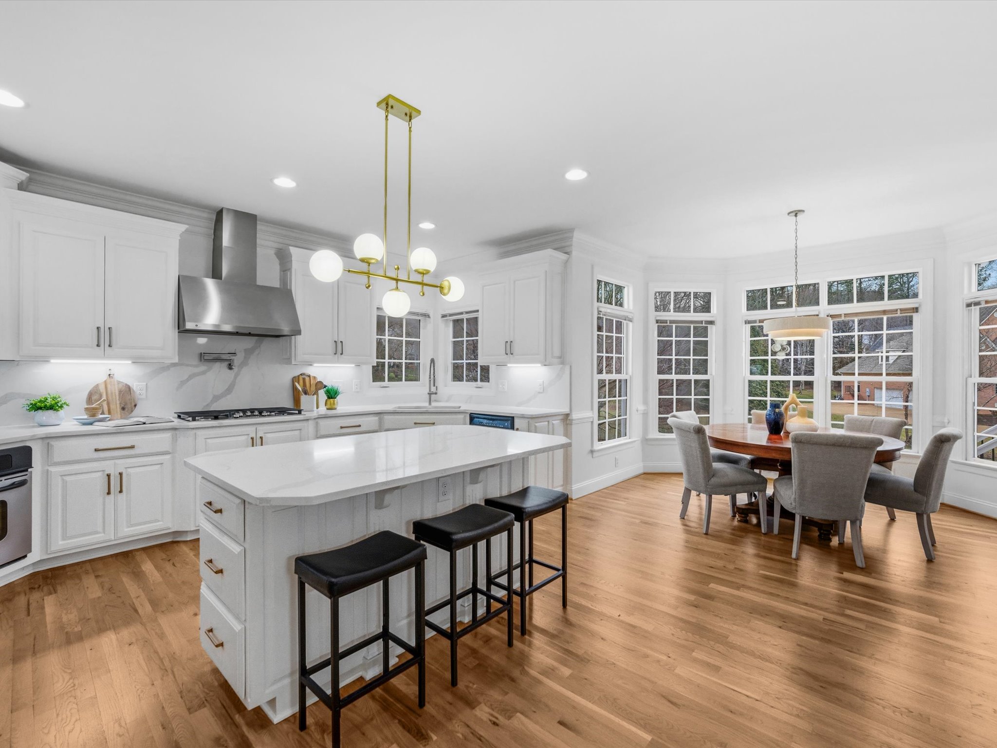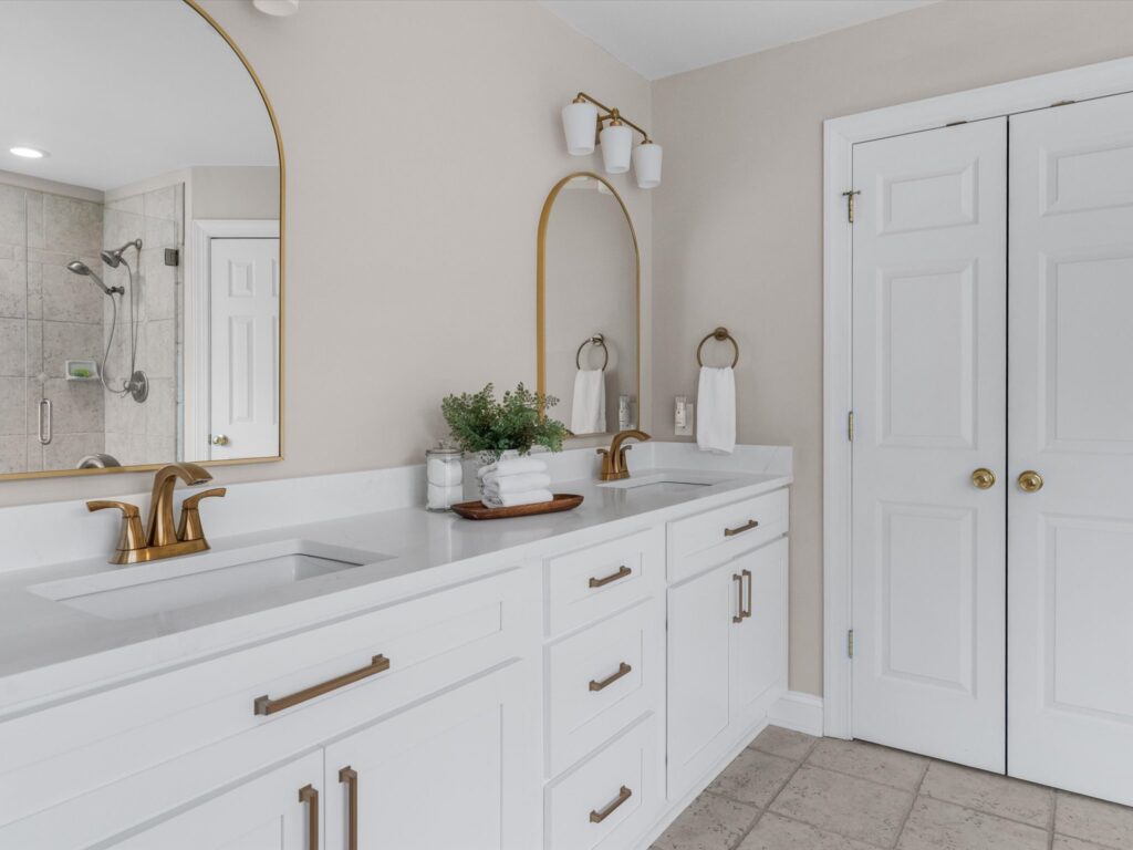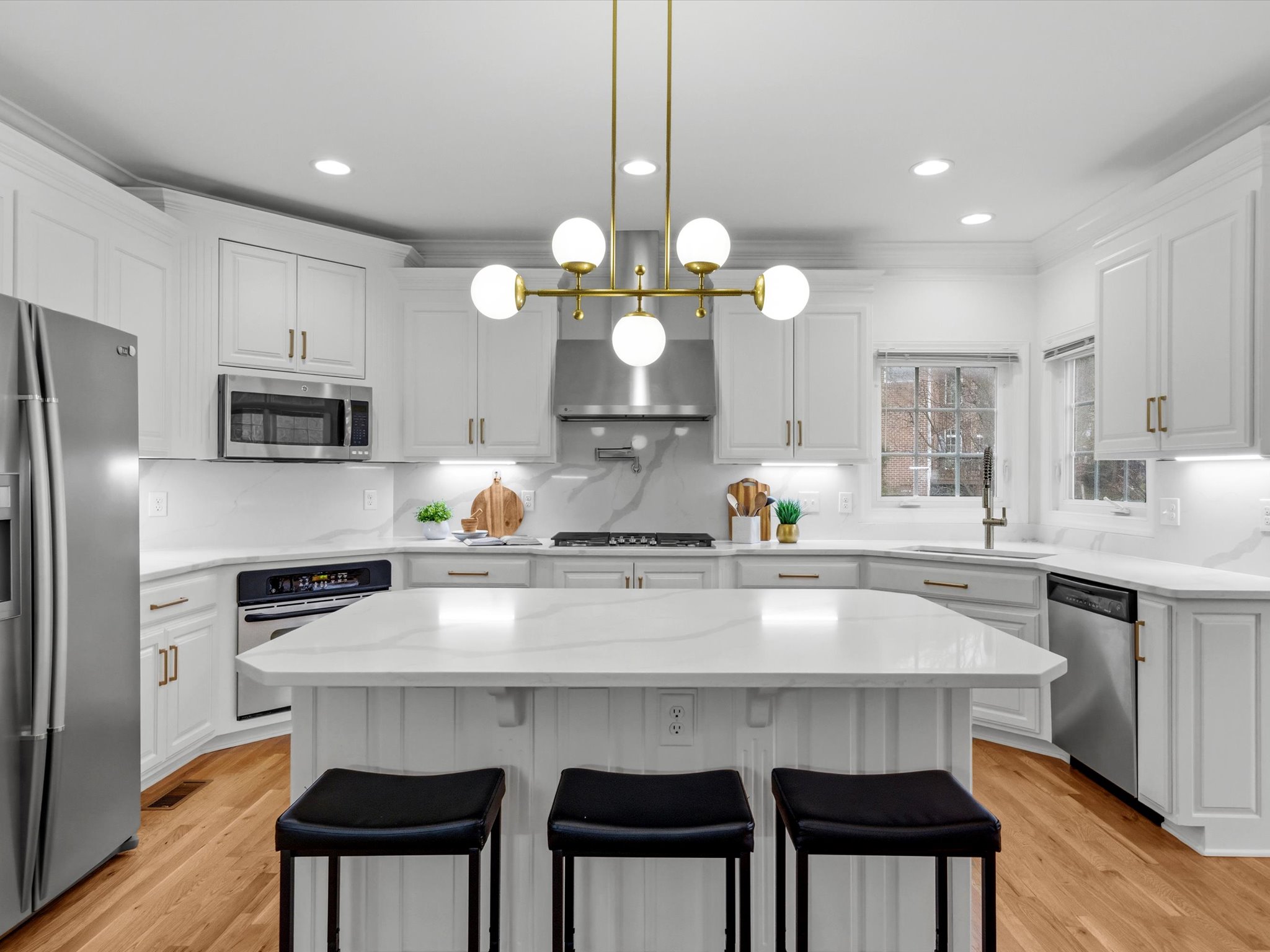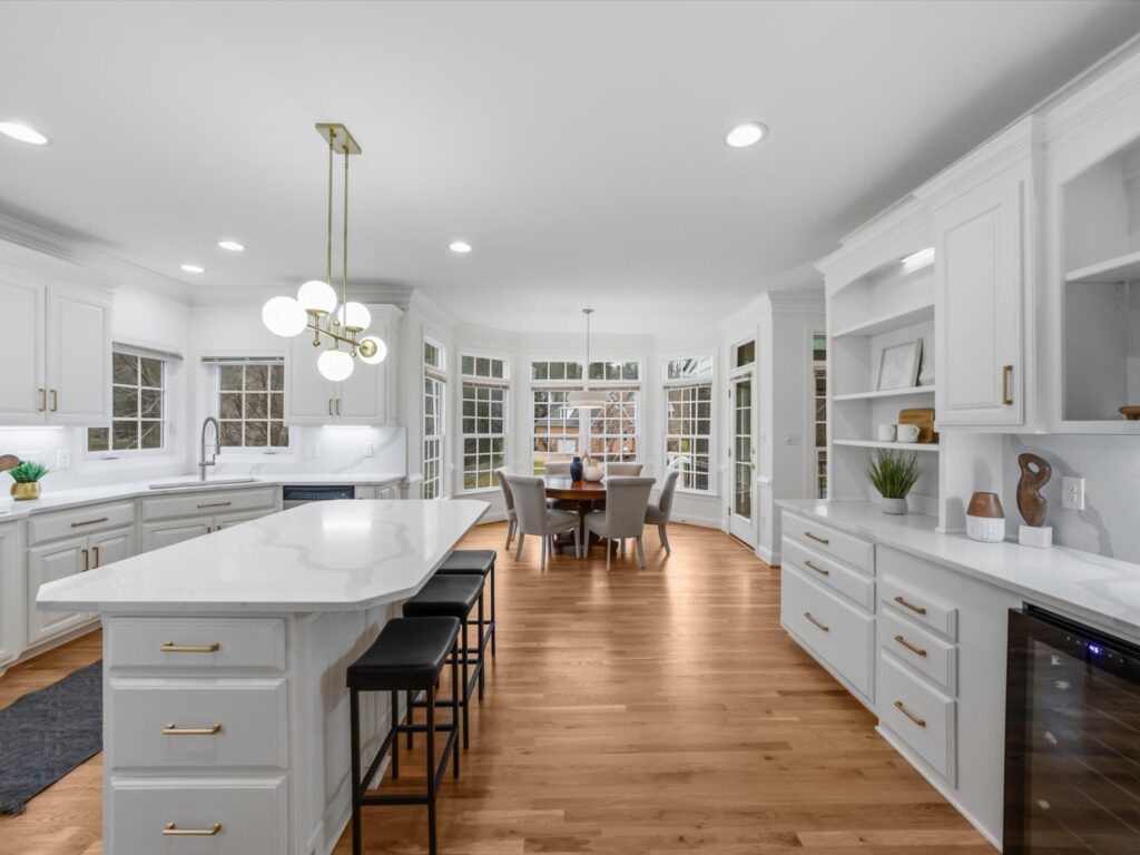 This stunning brick transitional executive home in Rosemont offers 5 bedrooms, 4 ½ baths and blends timeless architecture with a fresh, modern aesthetic and sits on a ¾-acre landscaped lot. Offering exceptional flow and highlighted by a 2-story entry foyer, 9+ foot ceilings with triple crown moldings, this home has been thoroughly refreshed in 2026 with designer-inspired upgrades throughout. The first floor offers a living room/office, formal dining room, large laundry room, spacious family room with gas fireplace and a stylish kitchen with brand-new quartz countertops and backsplash, new sink, new gas stove top with pot filler, updated lighting, expanded large island with bar seating and breakfast area, plus a sleek wine and coffee bar with wine fridge & walk-in pantry, designed for effortless entertaining. Both the kitchen and family room open to the recently-added screened porch with two skylights creating seamless flow. Upstairs you will find four bedrooms and three full baths, including the primary suite with a large walk-in closet. All bathrooms — including the primary suite, powder room, and hall baths — have been updated with new cabinetry, quartz counters, and modern plumbing and light fixtures. The walk-out basement includes a large recreation room with a gas fireplace and an additional bedroom with a full bath. Step outside through French doors to enjoy the covered patio overlooking the peaceful backyard. And if you’re looking for storage, this home has it – a full floored walk-up attic, plus an attached, oversized 2-car garage and attached storage room. Additional 2026 updates include: on the first floor – refinished hardwood floors and fresh white paint throughout create a bright and cohesive feel, grand foyer light fixture, new exterior light fixtures, new glass windows, new heat pump (2024), new upstairs hardwood flooring (2022–2023) and a MOEN Master Water Shutoff system in (2022-2023.)