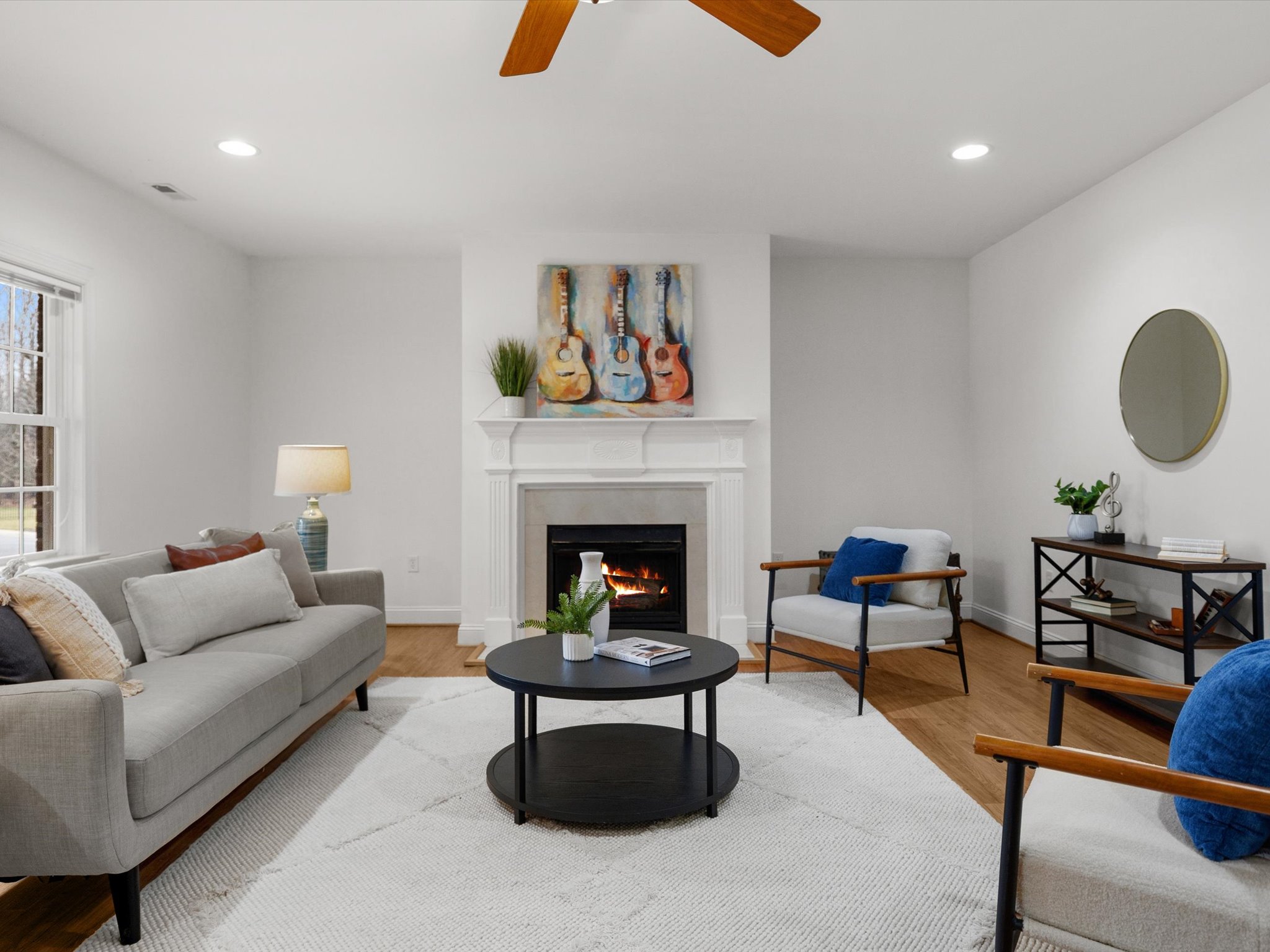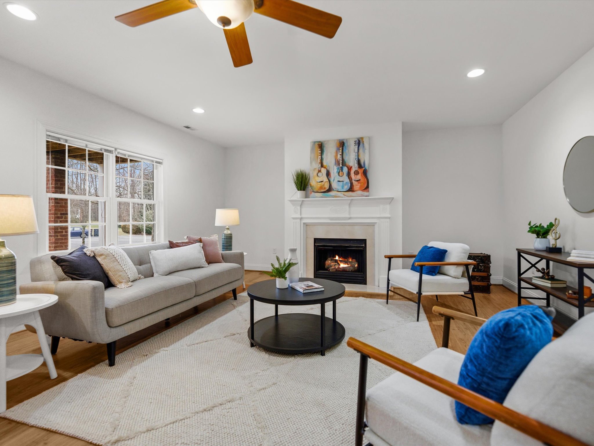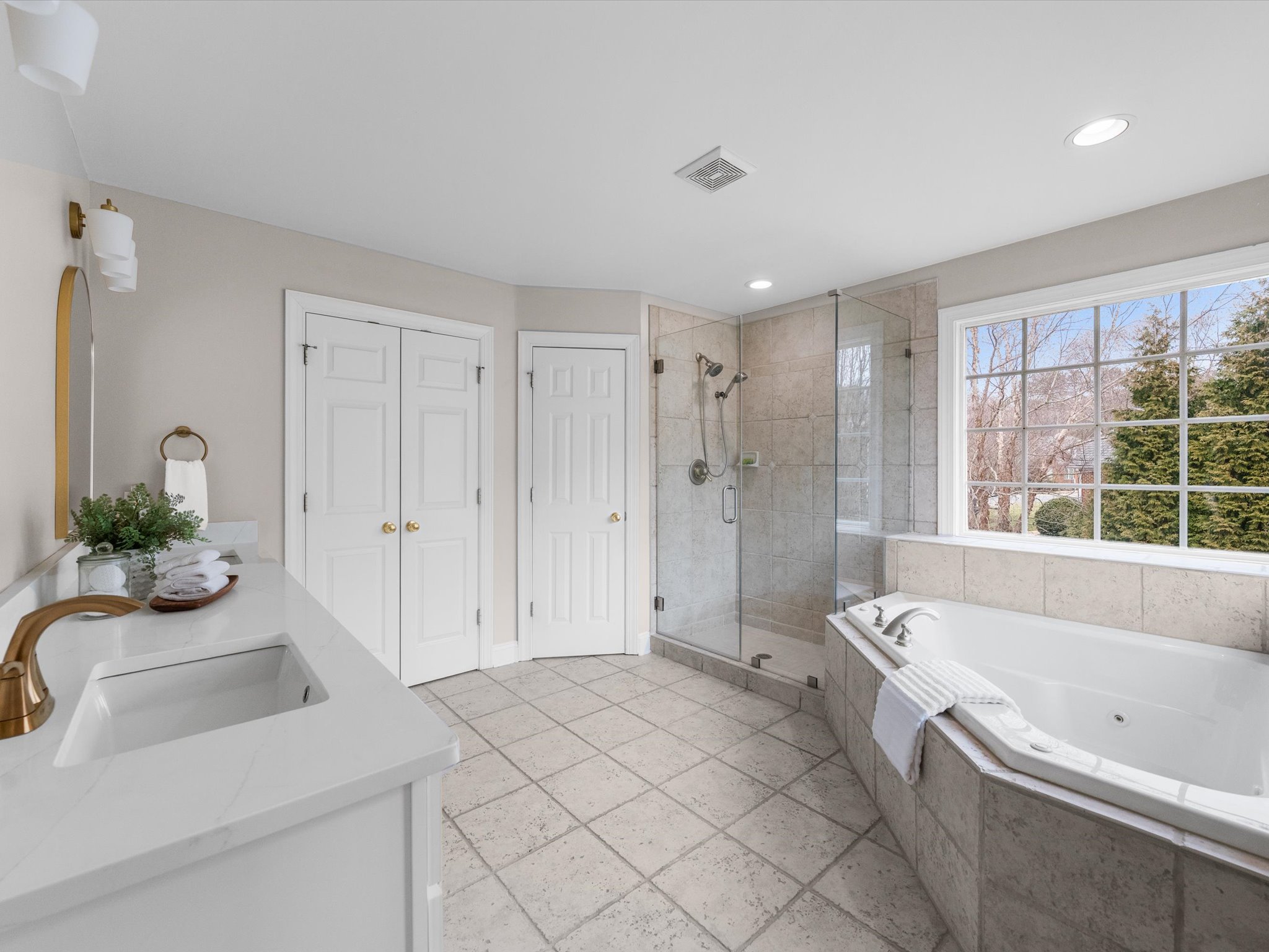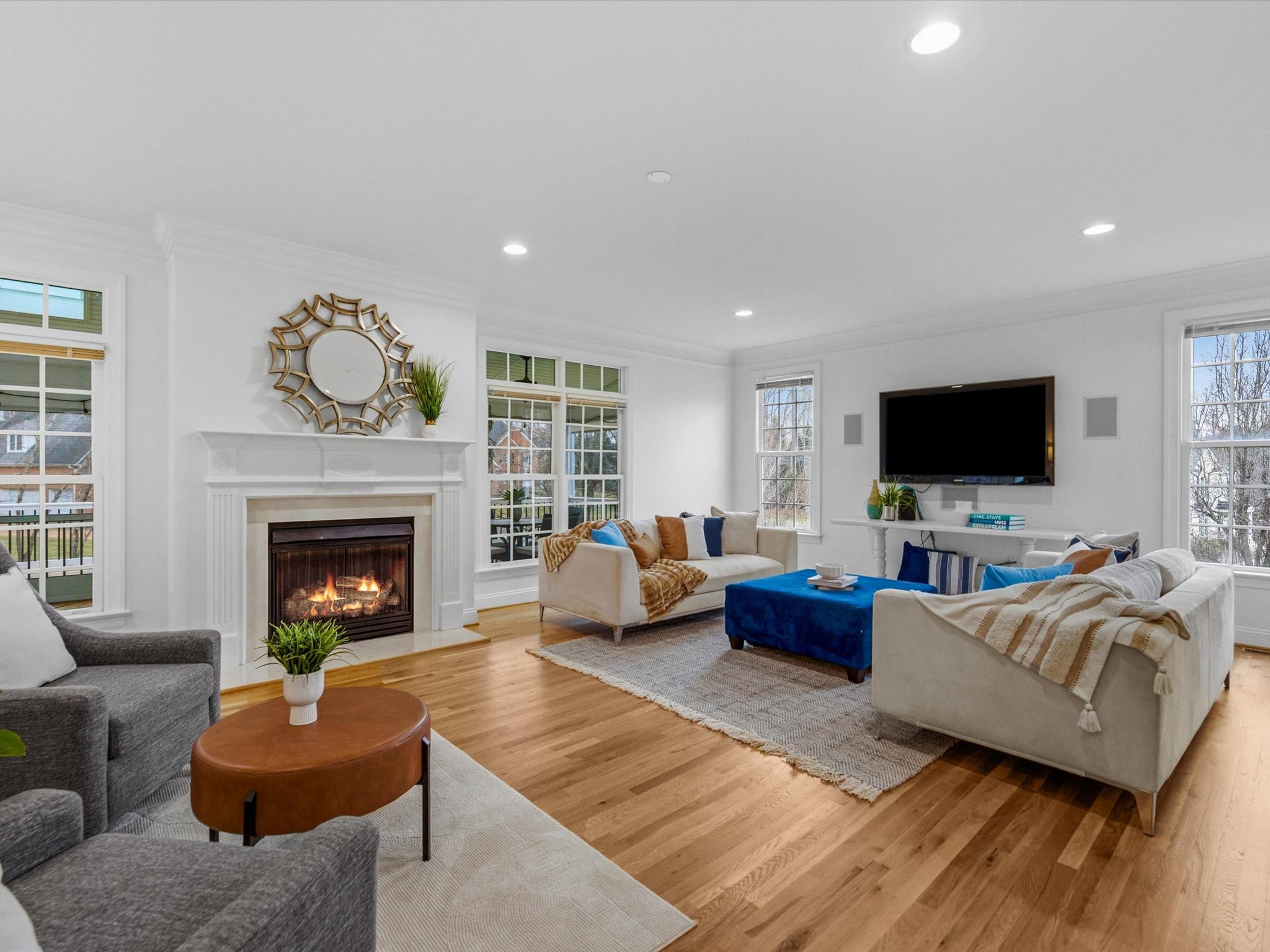 This stunning brick transitional executive home in Rosemont offers 5 bedrooms, 4 ½ baths and blends timeless architecture with a fresh, modern aesthetic and sits on a ¾-acre landscaped lot. Offering exceptional flow and highlighted by a 2-story entry foyer, 9+ foot ceilings with triple crown moldings, this home has been thoroughly refreshed in 2026 with designer-inspired upgrades throughout. The first floor offers a living room/office, formal dining room, large laundry room, spacious family room with gas fireplace and a stylish kitchen with brand-new quartz countertops and backsplash, new sink, new gas stove top with pot filler, updated lighting, expanded large island with bar seating and breakfast area, plus a sleek wine and coffee bar with wine fridge & walk-in pantry, designed for effortless entertaining. Both the kitchen and family room open to the recently-added screened porch with two skylights creating seamless flow. Upstairs you will find four bedrooms and three full baths, including the primary suite with a large walk-in closet. All bathrooms — including the primary suite, powder room, and hall baths — have been updated with new cabinetry, quartz counters, and modern plumbing and light fixtures. The walk-out basement includes a large recreation room with a gas fireplace and an additional bedroom with a full bath. Step outside through French doors to enjoy the covered patio overlooking the peaceful backyard. And if you’re looking for storage, this home has it – a full floored walk-up attic, plus an attached, oversized 2-car garage and attached storage room. Additional 2026 updates include: on the first floor – refinished hardwood floors and fresh white paint throughout create a bright and cohesive feel, grand foyer light fixture, new exterior light fixtures, new glass windows, new heat pump (2024), new upstairs hardwood flooring (2022–2023) and a MOEN Master Water Shutoff system in (2022-2023.)