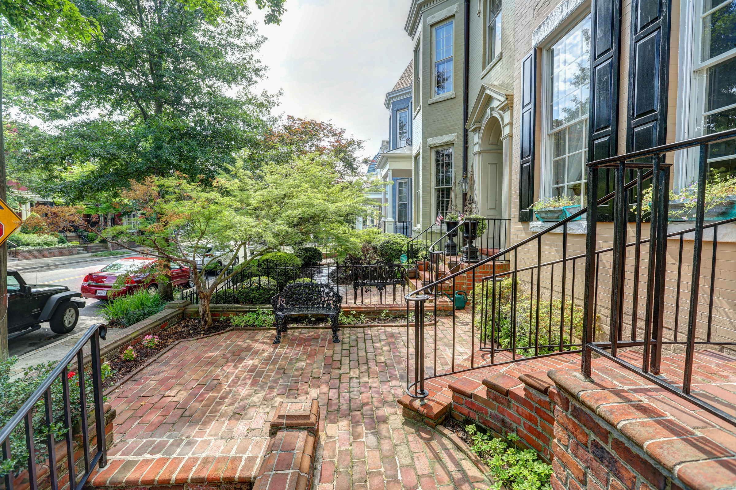 Detached, 1908 Fan townhouse located on one of the best blocks of Grove Avenue. A tailored brick walk and landscaped front garden leads into an exquisite front hall that opens to double parlors with extra tall windows, beautiful decorative fireplaces and built-in bookcases, followed by a large dining room and wet bar. The updated white kitchen with corian counters opens to a window-lined sunroom with views of the charming and private courtyard landscaped with mature plantings. Original pine floors, 10+ foot ceilings, handsome mouldings and trimwork are just a few lovely details that shine throughout this well-maintained home. Upstairs is an extra large master suite with 2 fireplaces, double closets and attached master bath. Two more bedrooms, an additional bath, laundry and a bonus room complete the second floor. Don’t miss this delightful Fan home located to several noteworthy restaurants and museums.