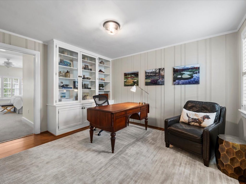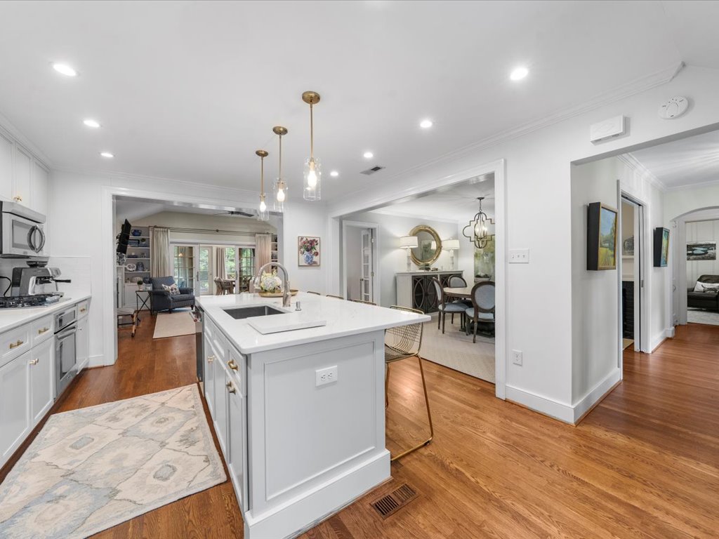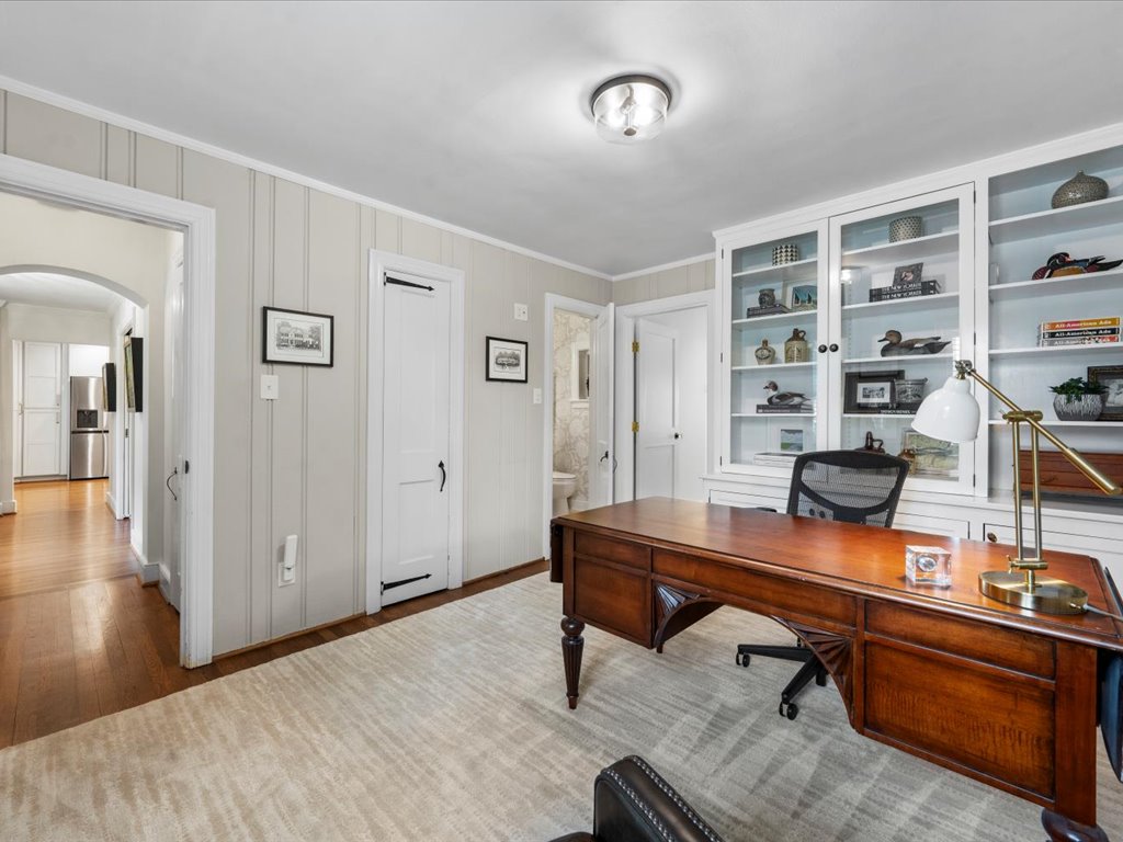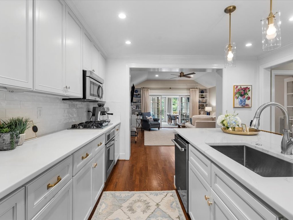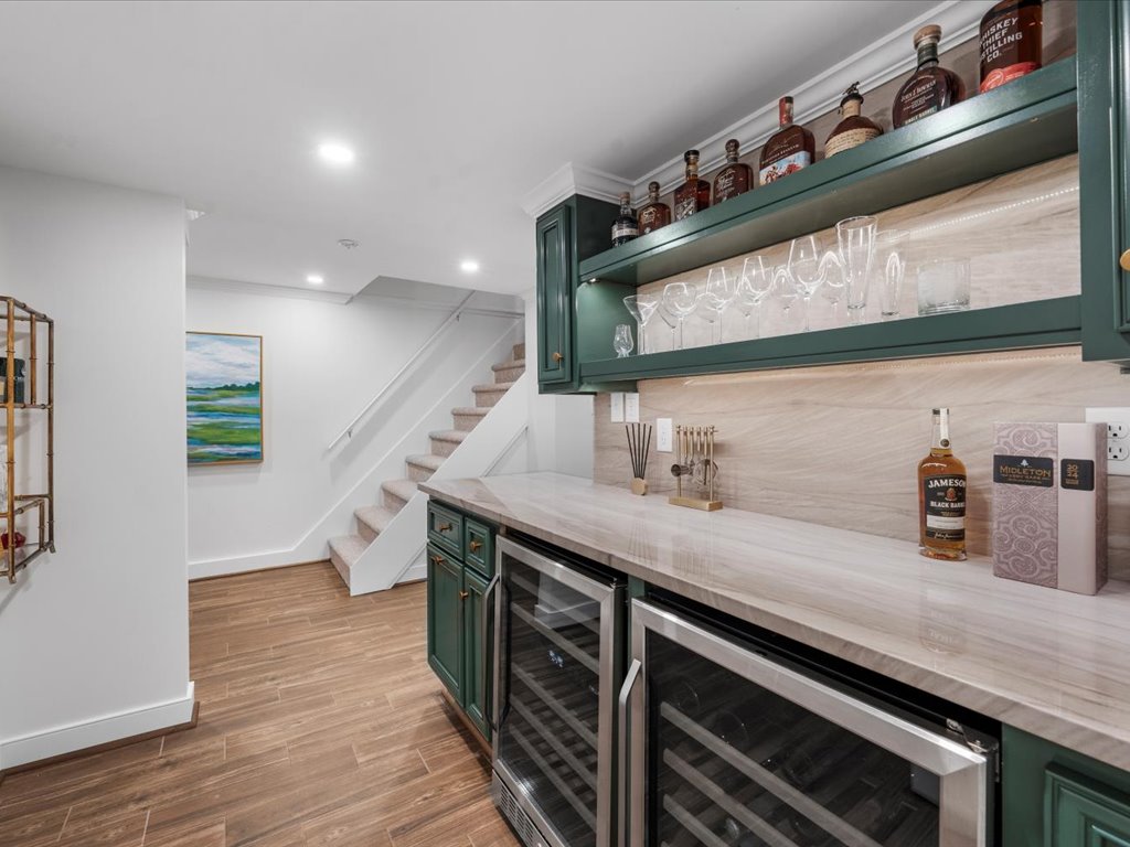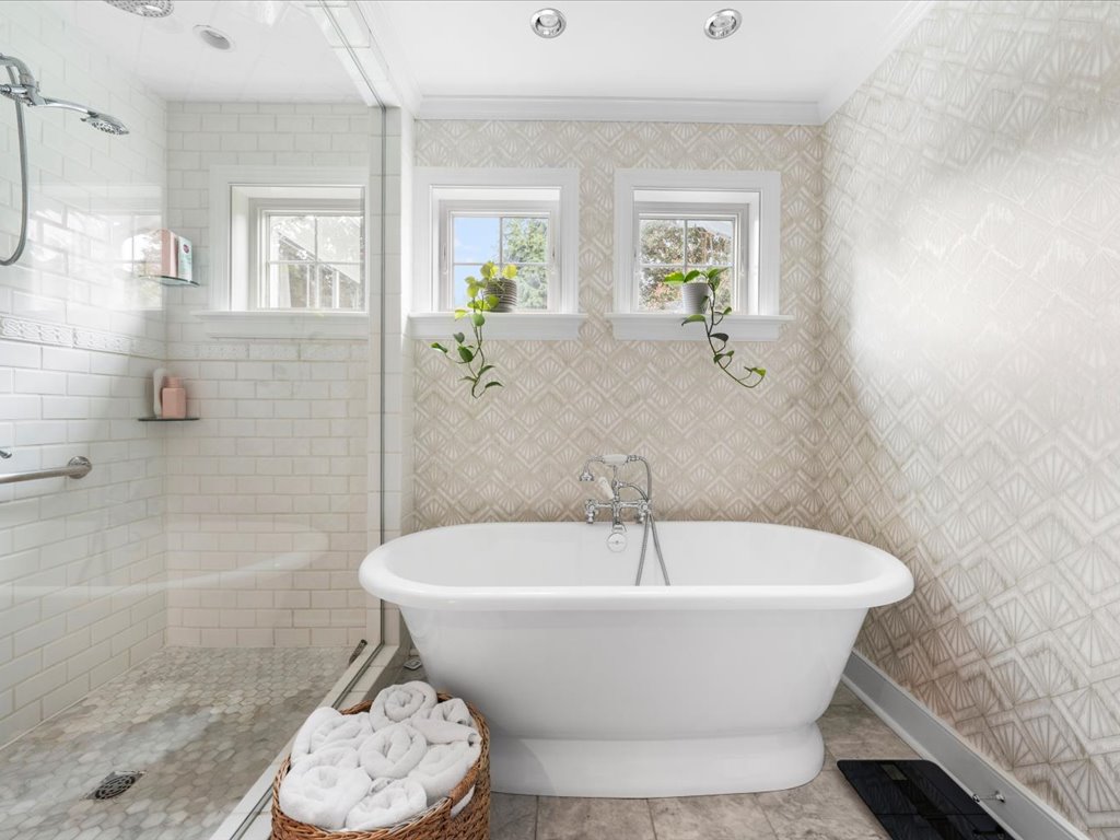 Looking for a turnkey renovated home offering a first floor primary suite with great walkability to the shops and restaurants in the Libbie Grove corridor? Well, this 3 bedroom, 4 full bath Colonial house in the desirable Glenburnie neighborhood checks all of the boxes! This beautiful home which has been thoughtfully renovated to create exceptional open-concept flow for ideal living. From the gracious foyer, step into the dining room with fireplace that opens to both the family room and eat-in kitchen. The stunning kitchen offers ample cabinetry, stainless steel appliances, subway tile backsplash and quartz counters and an island for pull-up dining. The kitchen seamlessly flows to the spacious family room with vaulted ceiling, built-in bookcases and gas fireplace which then opens to the three-season porch. Heated and cooled by a mini-split with vinyl slider windows – you will comfortably enjoy watching the seasons change from this light-filled space overlooking the private backyard. The first floor is completed be a truly luxurious owner’s suite which includes a spacious bedroom with two walk-in closets, a spa-like marble bath with large shower and soaking tub, a laundry room and an office with glass-front cabinetry and ensuite renovated full bath. The second floor features two generous bedrooms, one with separate dressing room/office, and a full bath. The lower level has just undergone an extensive renovation with large recreation room, stunning bar with two wine refrigerators, glass-front cabinetry and quartz counters plus a renovated full bath, cedar closet and built-in storage cabinets. As the weather cools, you will love spending the mornings on your front porch or the evenings on the bluestone patio surrounded by a meticulously landscaped and irrigated yard. With newer HVAC systems, a neutral color palette, recently maintained roof, whole house generator and new security system, all you need to do is move right in!