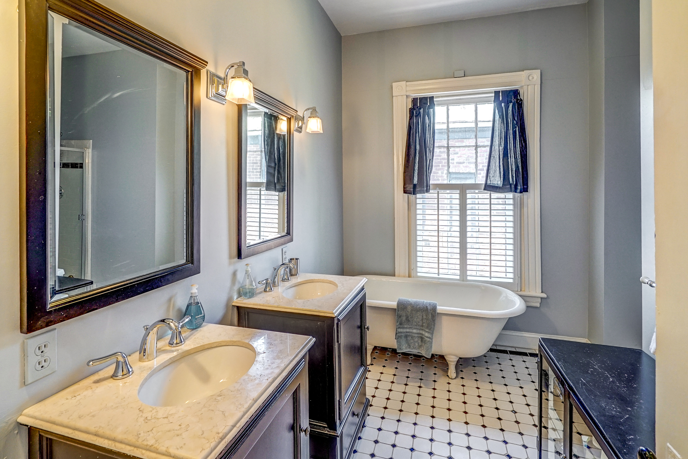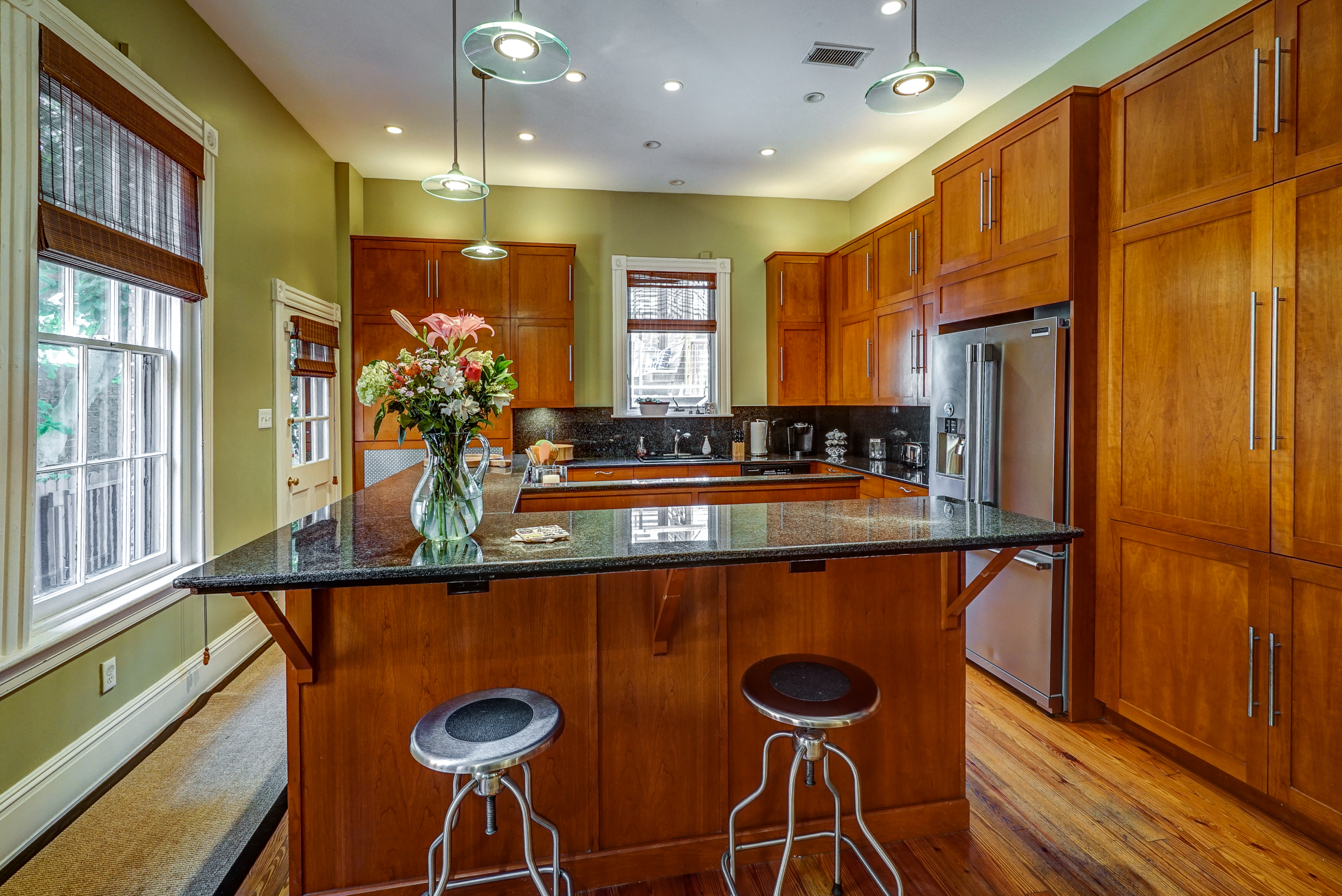 Located on the desirable West Avenue and within walking distance to many wonderful restaurants and art galleries, this property features a 1.5 car garage and roof deck! Circa 1904, this Victorian home offers stylish double parlors with built-in bookshelves, decorative fireplaces and pocket doors, a family room and a renovated eat-in kitchen complete with black granite countertops, abundant maple cabinetry, wet bar area, stainless steel appliances and bar seating. Upstairs are three bedrooms plus an office or nursery and two renovated full baths. The wonderful master suite includes a sitting area, fireplace and adjoining master bath completed with double vanities, luxury shower and huge walk-in closet! Additional features include; partial basement finished as playroom, rear deck, upstairs laundry, heart pine floors and 10+ ceilings. Don’t miss this gem – loaded with character and original trim details.