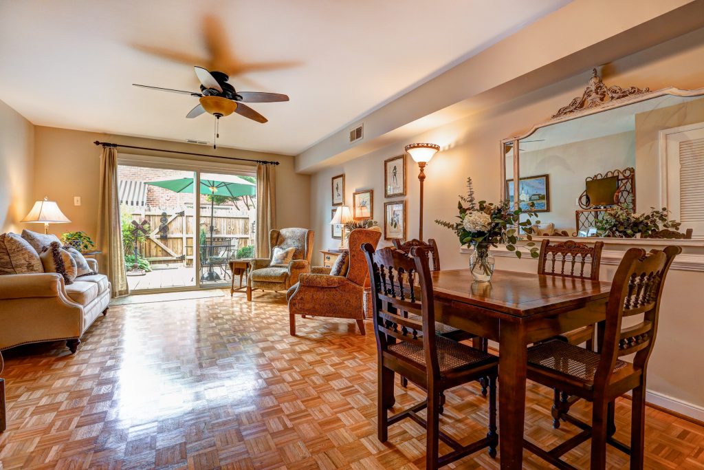 This fabulous condominium offers 2 bedrooms and 1.5 baths located just minutes away from Carytown and the Libbie/Grove area. The foyer opens to the renovated kitchen with maple cabinets, granite counters and Whirlpool appliances. The living room features parquet hardwood flooring, a dry bar area with built-ins and cabinetry, a dining area and sliding glass doors that lead to the fenced in brick patio. Upstairs are two spacious bedrooms and a renovated full bath. A stack washer/dryer completes this maintenance free condo in the heart of the Westend. Pool membership plus a deeded parking spot right in front of your unit are included.