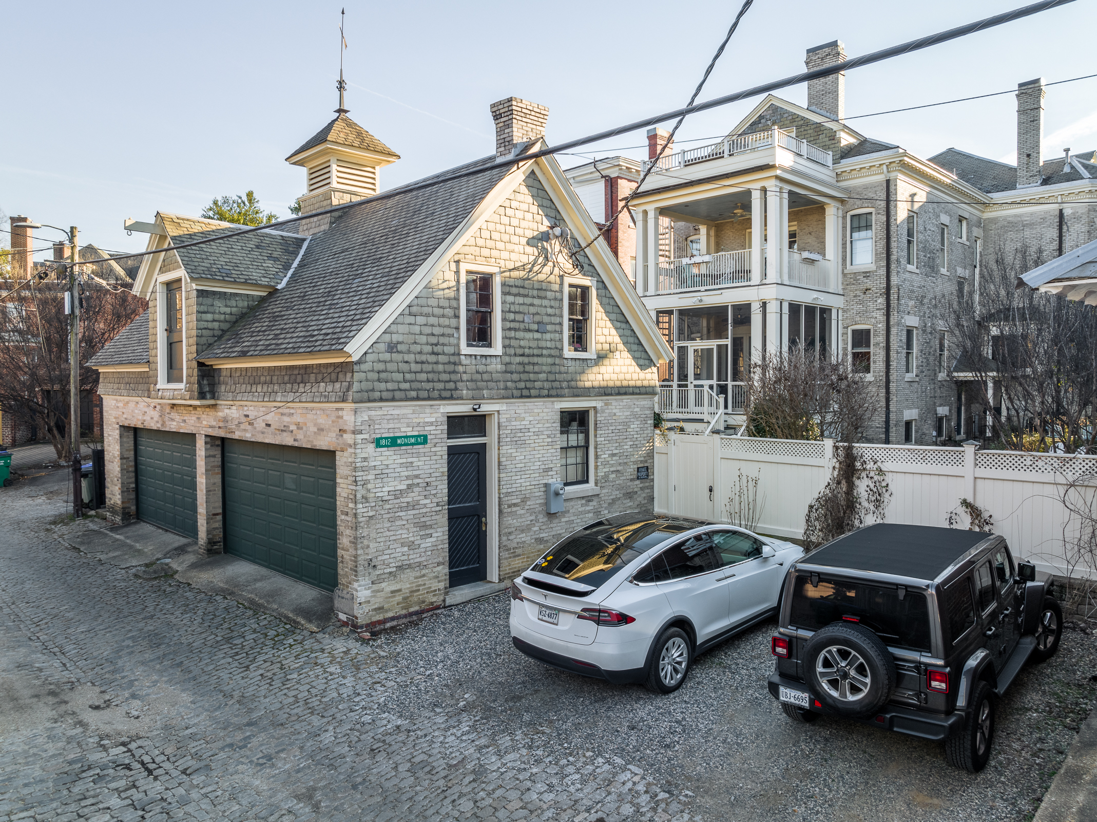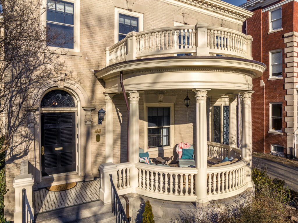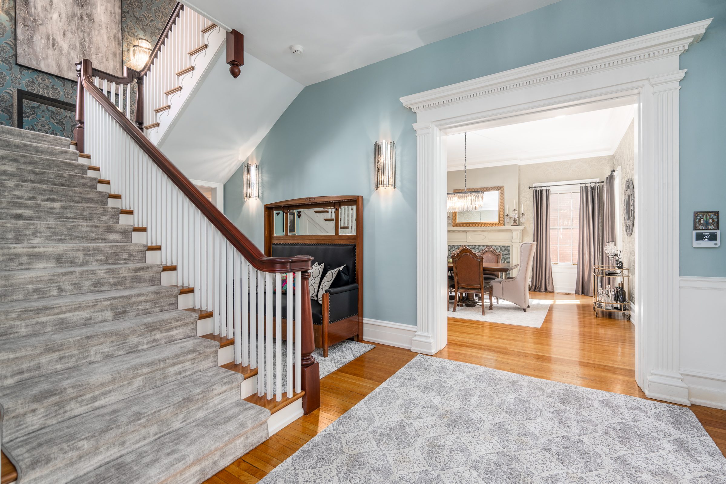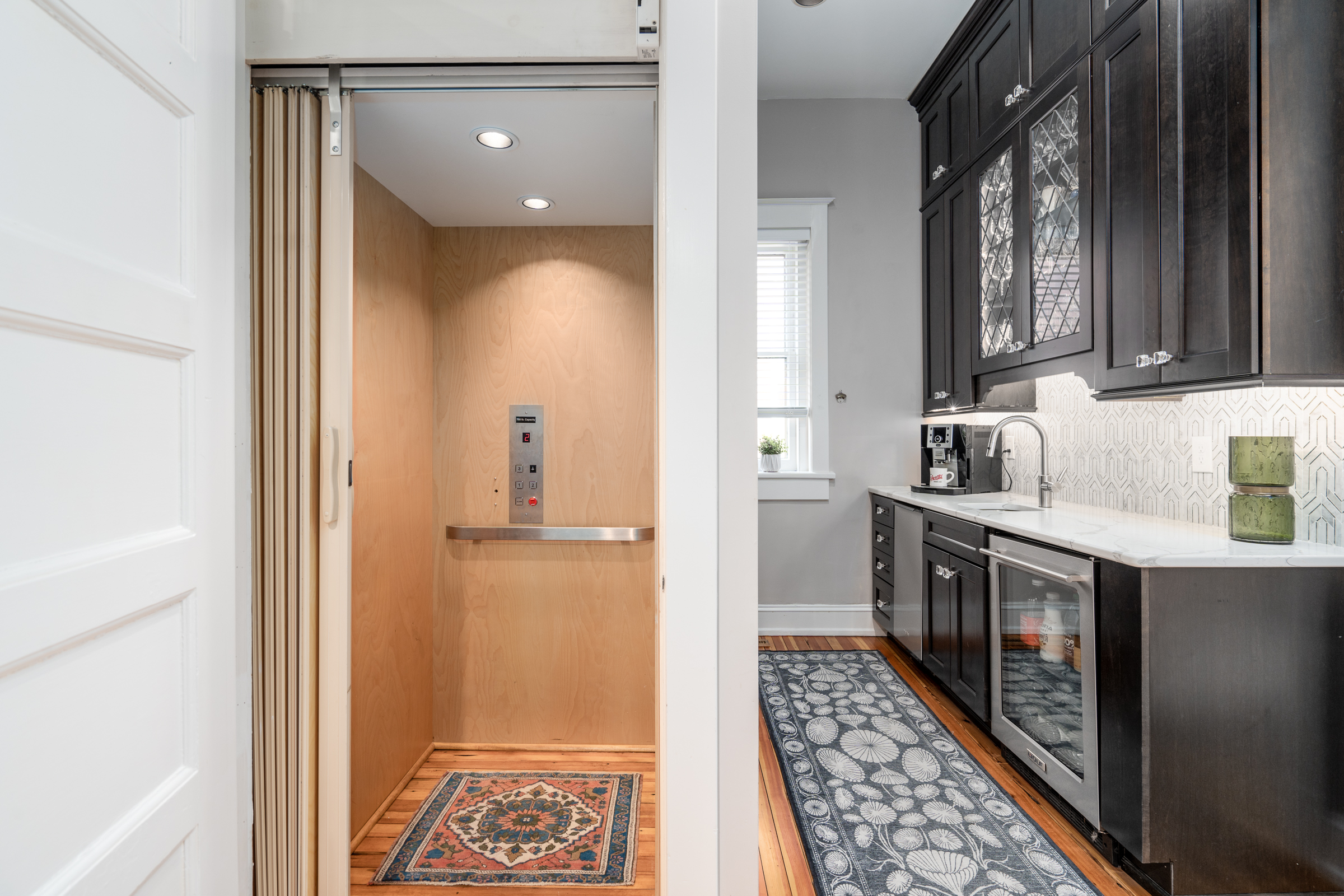 Ready for the easy life? This impeccable renovation leaves nothing to do but enjoy this gracious and fun home. In 1905, architect Claude Howell used golden brick and diamond-paned bay windows to create this bright and livable Monument Avenue mansion. Formal rooms are large and airy with original wood floors, mouldings and columns. The new eat-in kitchen has gorgeous and plentiful stained cherry cabinetry, marble counters, Jenn-Aire and Subzero appliances and a convenient wet-bar. Relax in your award-winning primary suite with bath by Lane Construction recognized as the best remodel in Richmond in 2022! The bedroom has a cozy sitting area centered on one of 4 gas fireplaces in the home. 3 additional bedrooms each with a dedicated bath are on the 2nd and 3rd floors. A 3rd floor recreation room has a Murphy bed & kitchenette for guests. Take the elevator to your basement getaway with a temp-controlled wine cellar, craft room, exercise room and media room with a fireplace. The rare double lot & 3 story back porch lets you enjoy outdoor living and rooftop views with friends and family. The most delightful carriage house has a 4 bay garage. 5 off-street parking spaces add to easy city living!