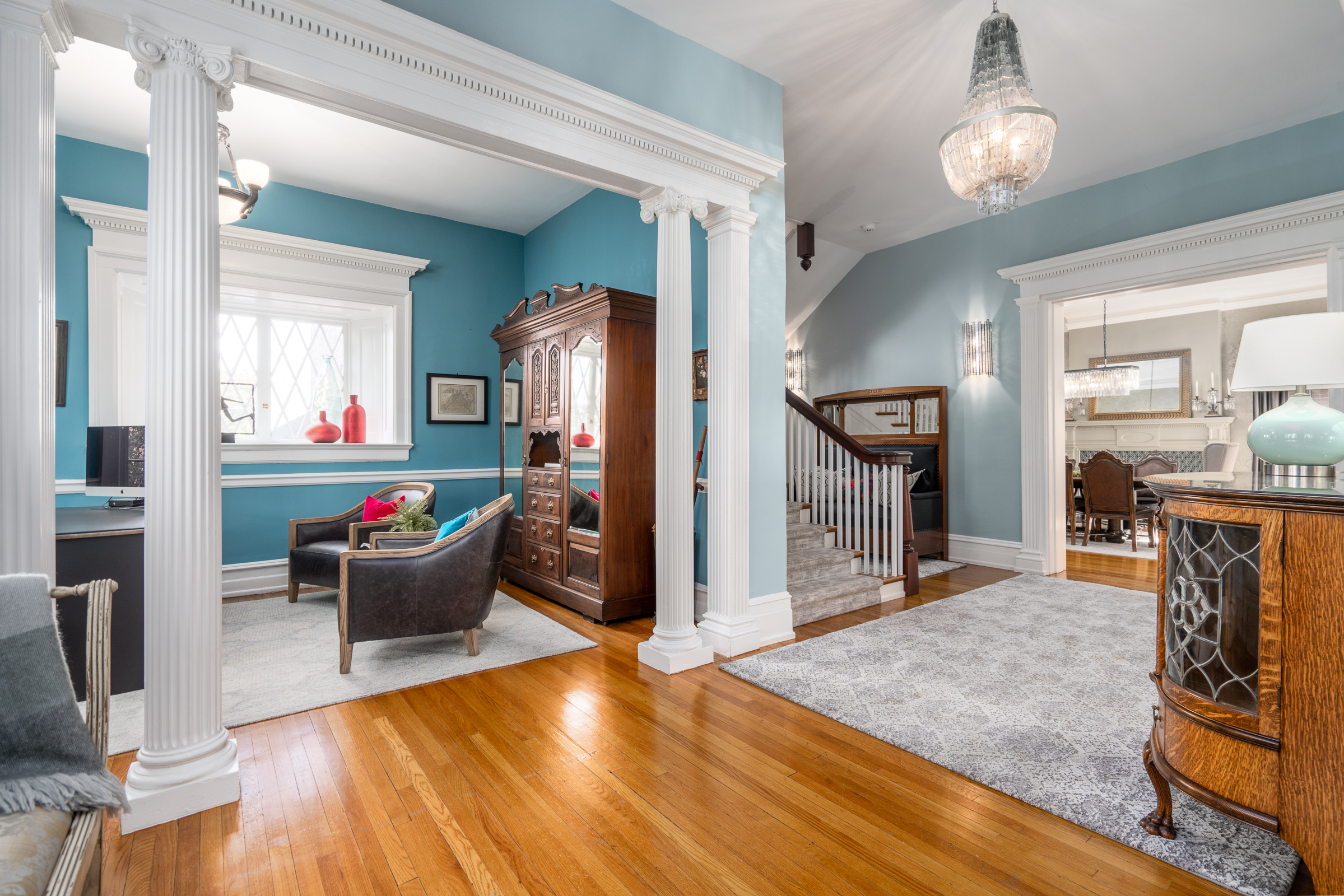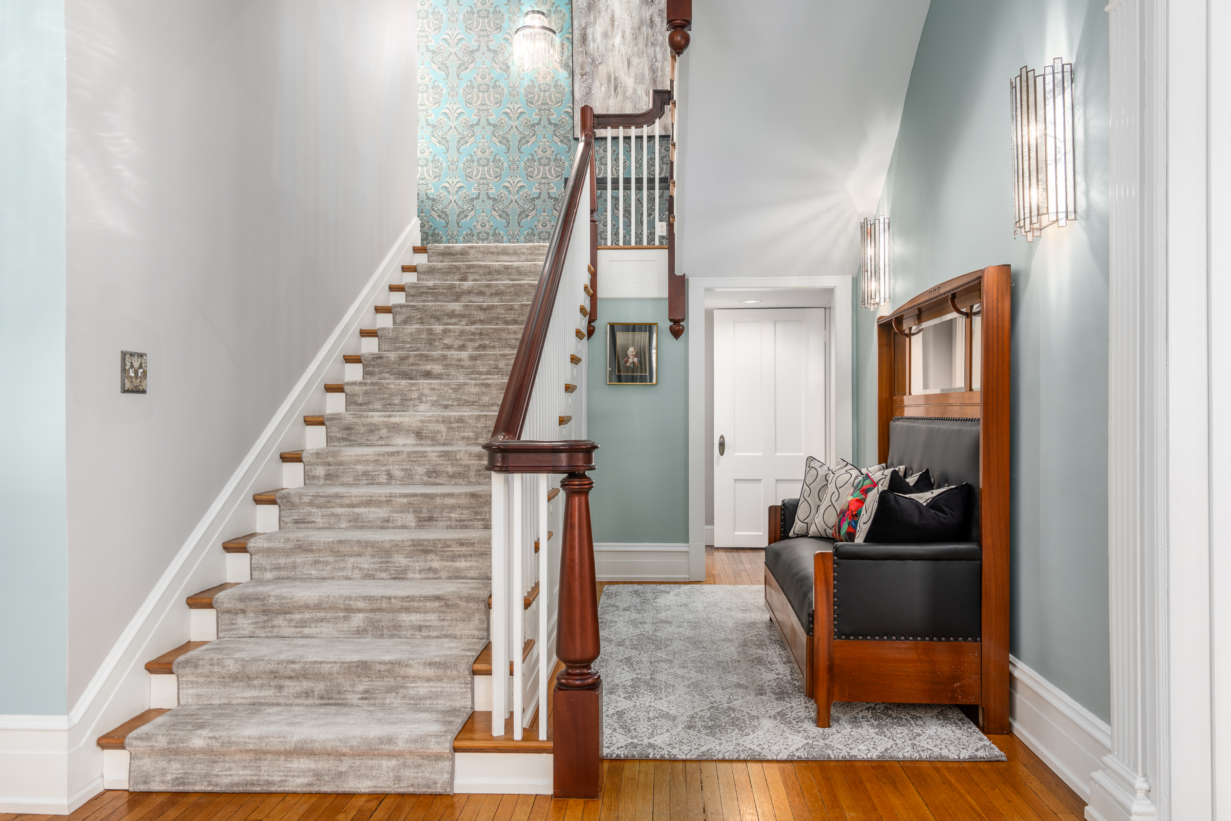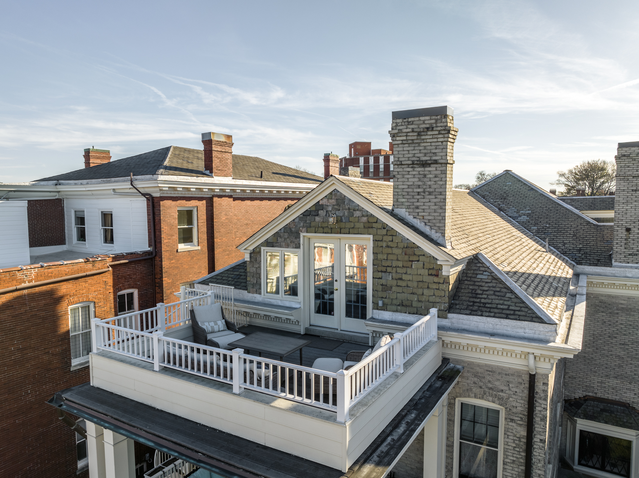Ready for the easy life? This impeccable renovation leaves nothing to do but enjoy this gracious and fun home. In 1905, architect Claude Howell used golden brick and diamond-paned bay windows to create this bright and livable Monument Avenue mansion. Formal rooms are large and airy with original wood floors, mouldings and columns. The new eat-in kitchen has gorgeous and plentiful stained cherry cabinetry, marble counters, Jenn-Aire and Subzero appliances and a convenient wet-bar. Relax in your award-winning primary suite with bath by Lane Construction recognized as the best remodel in Richmond in 2022! The bedroom has a cozy sitting area centered on one of 4 gas fireplaces in the home. 3 additional bedrooms each with a dedicated bath are on the 2nd and 3rd floors. A 3rd floor recreation room has a Murphy bed & kitchenette for guests. Take the elevator to your basement getaway with a temp-controlled wine cellar, craft room, exercise room and media room with a fireplace. The rare double lot & 3 story back porch lets you enjoy outdoor living and rooftop views with friends and family. The most delightful carriage house has a 4 bay garage. 5 off-street parking spaces add to easy city living!