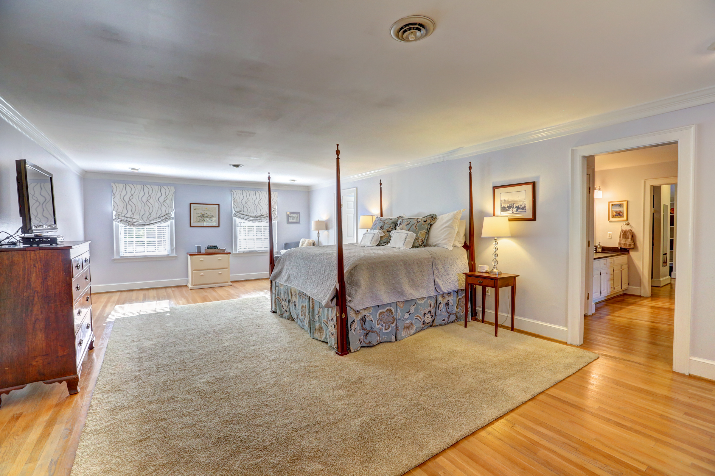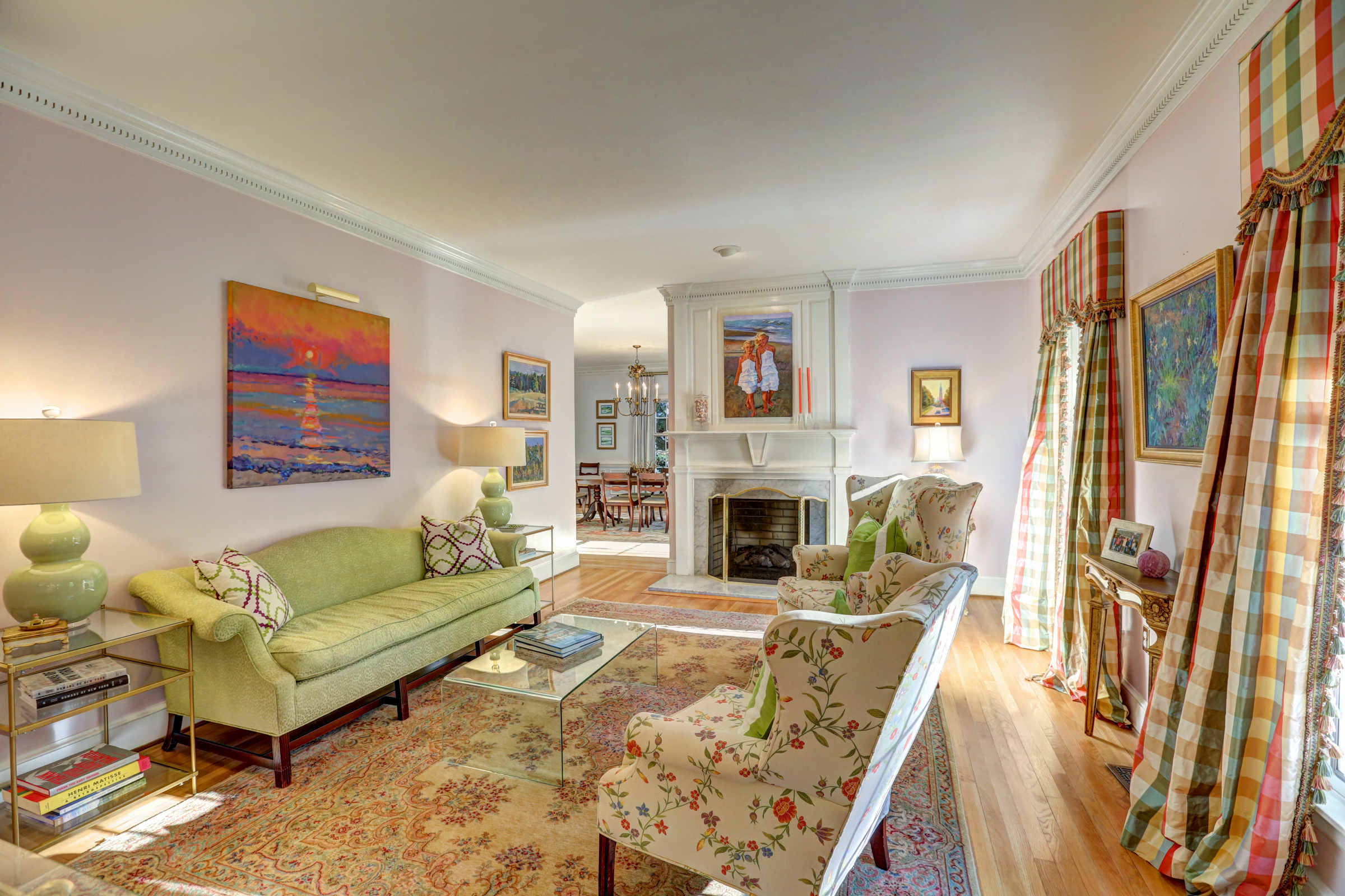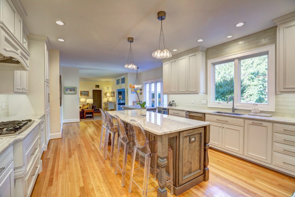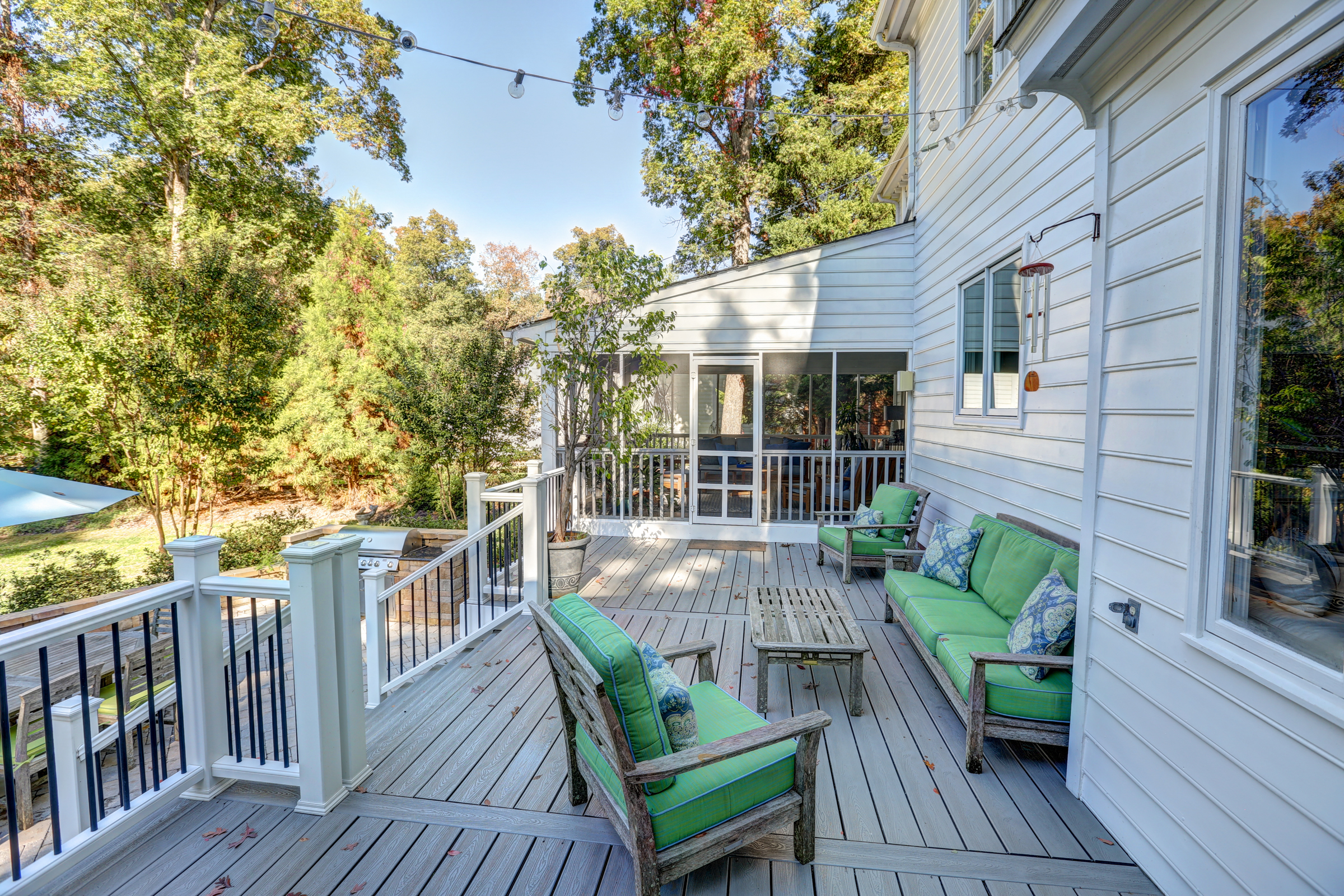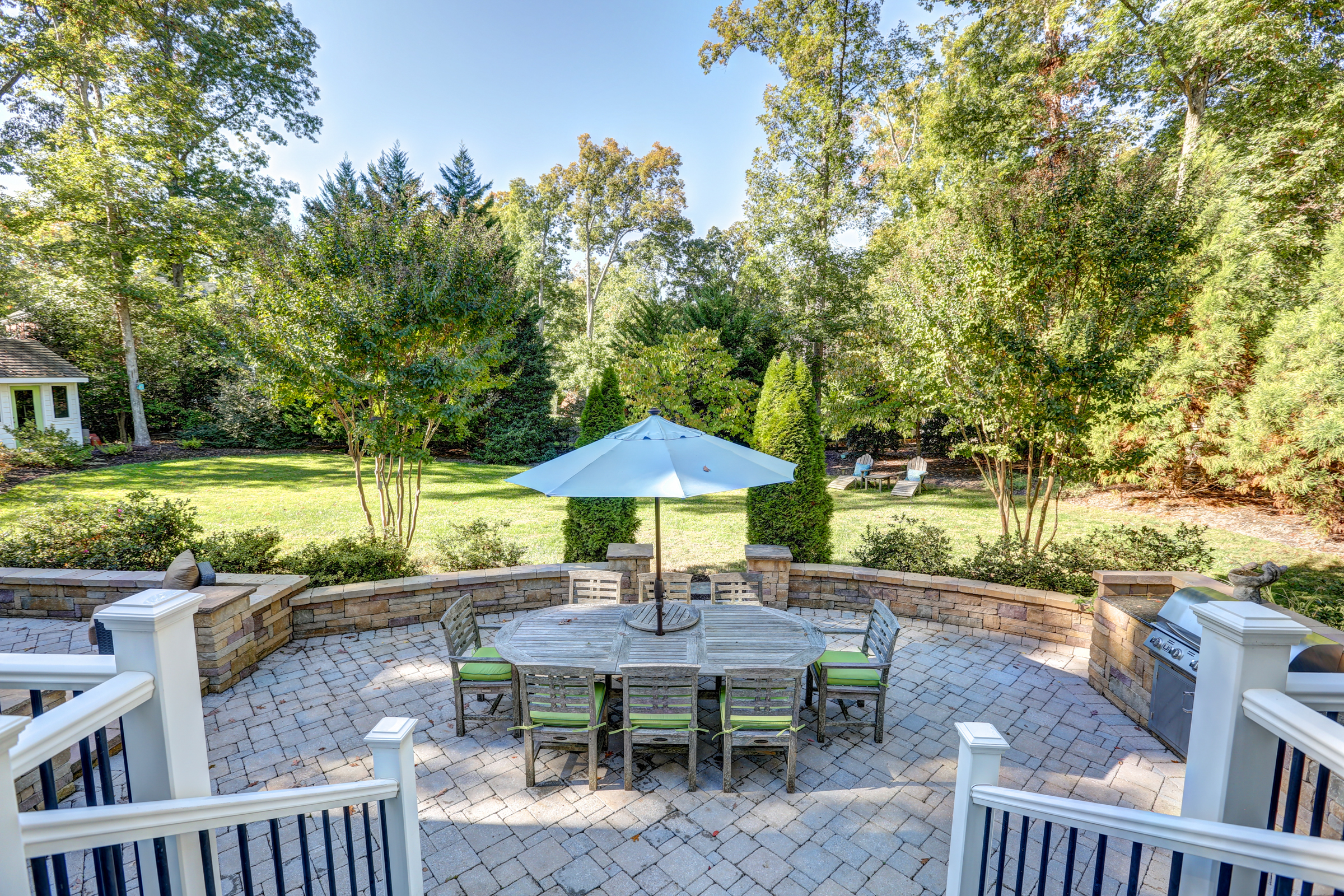 This 5 bedroom, 5 1/2 bath 2-story Colonial with full front country porch exudes charm and gracious living both inside and out! The first floor features a grand foyer, formal living room with fireplace, banquet-sized dining room and a NEW kitchen with custom white cabinetry, granite counters and GE Monogram stainless appliances that opens to a sunken family room with woodburning fireplace and a sunroom that overlooks the park-like landscaped yard. Upstairs you will find 5 bedrooms -each with their own private bath – a RARE FIND! THE spacious master suite features an adjoining office, HUGE walk -in closet, cedar closet and renovated master bath with separate granite vanities and 6 x 6 marble shower. This house is completed by multiple outdoor spaces – a new screened porch, the maintenance-free composite deck and a custom tiered stone terrace with built-in grill. Bonuses include the 2-car attached garage, irrigation and security systems. Walking distance to The Collegiate School and convenient access to interstates.