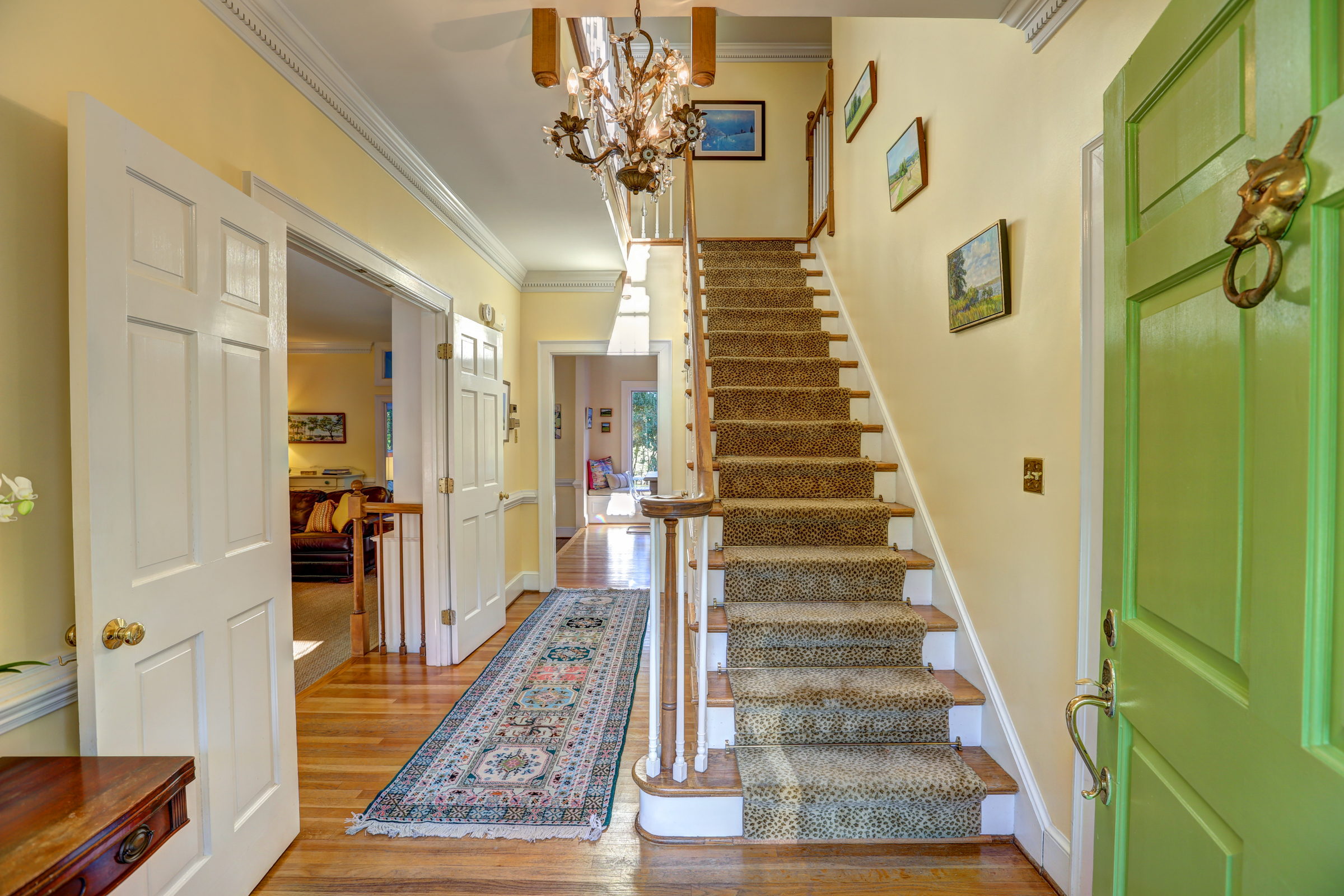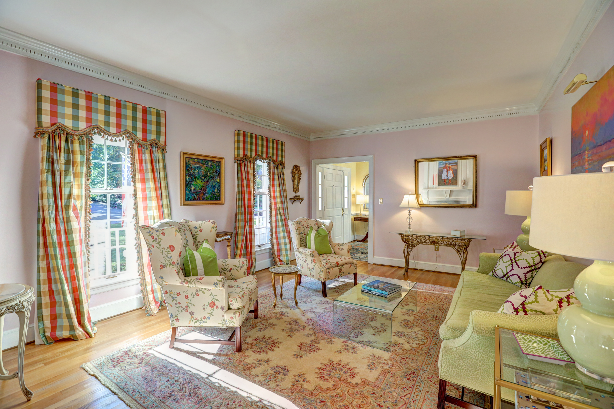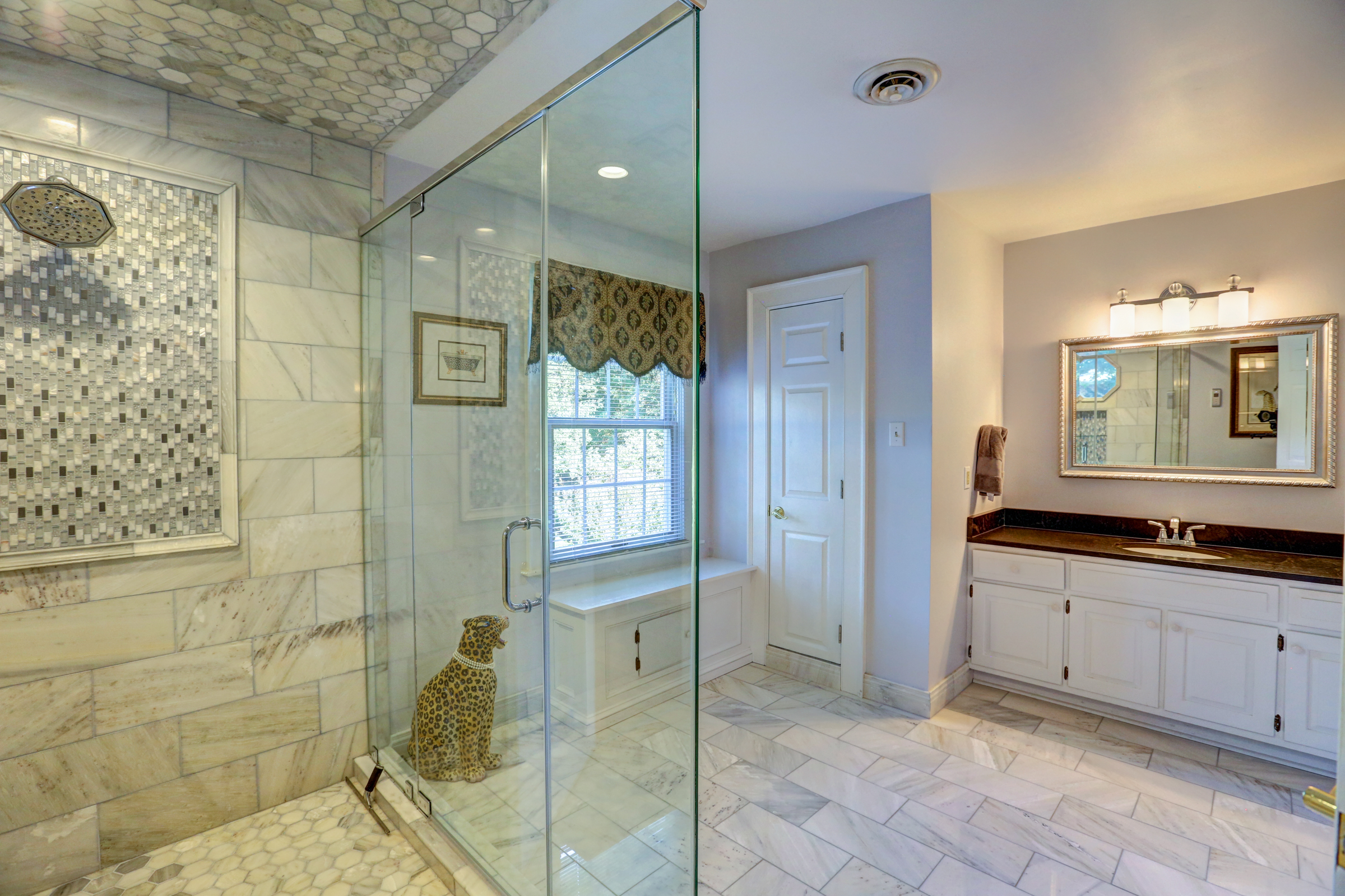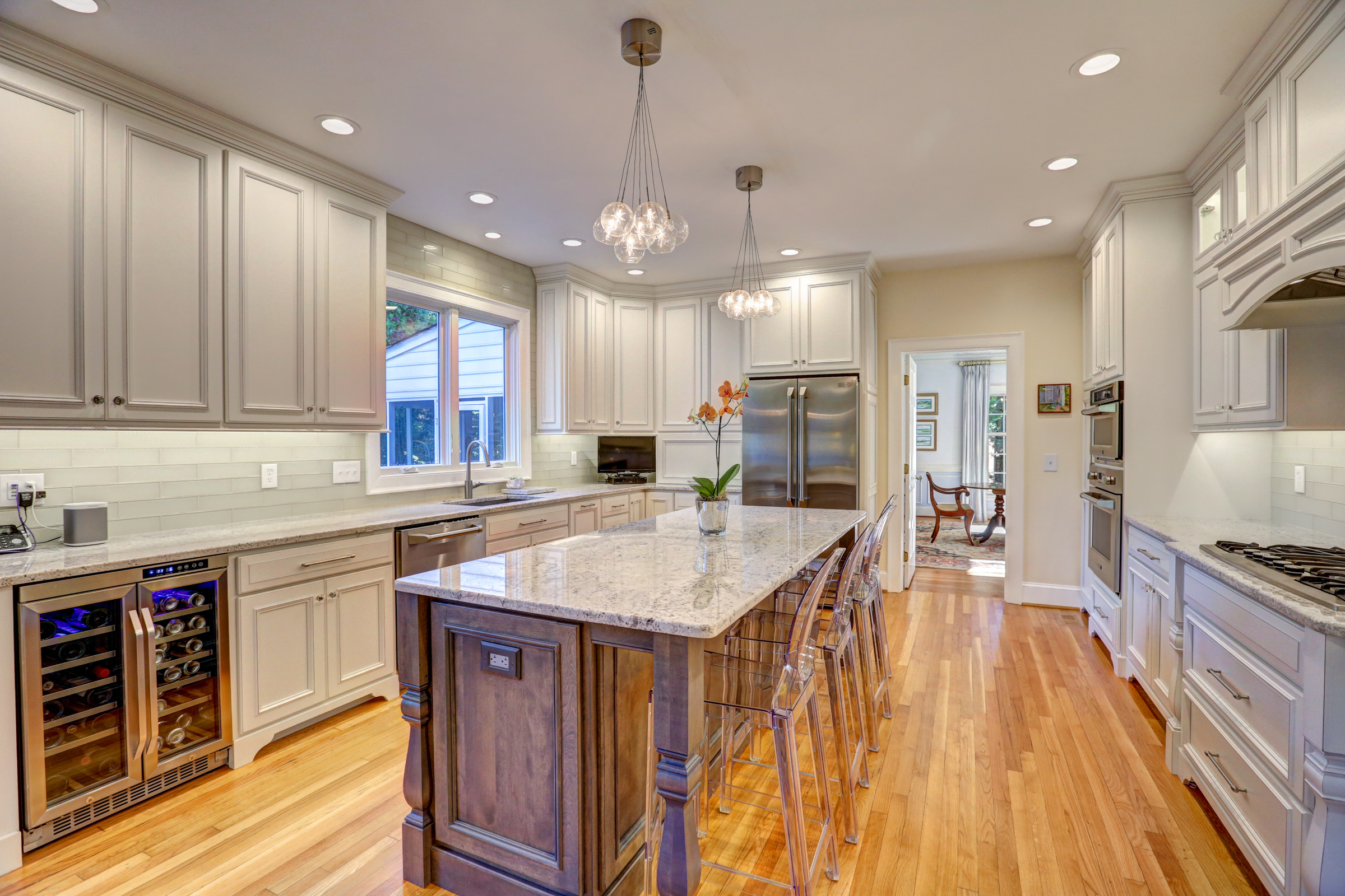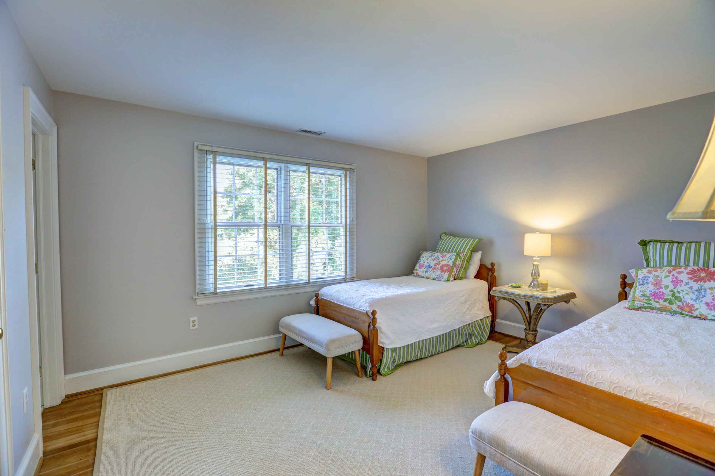 This 5 bedroom, 5 1/2 bath 2-story Colonial with full front country porch exudes charm and gracious living both inside and out! The first floor features a grand foyer, formal living room with fireplace, banquet-sized dining room and a NEW kitchen with custom white cabinetry, granite counters and GE Monogram stainless appliances that opens to a sunken family room with woodburning fireplace and a sunroom that overlooks the park-like landscaped yard. Upstairs you will find 5 bedrooms -each with their own private bath – a RARE FIND! THE spacious master suite features an adjoining office, HUGE walk -in closet, cedar closet and renovated master bath with separate granite vanities and 6 x 6 marble shower. This house is completed by multiple outdoor spaces – a new screened porch, the maintenance-free composite deck and a custom tiered stone terrace with built-in grill. Bonuses include the 2-car attached garage, irrigation and security systems. Walking distance to The Collegiate School and convenient access to interstates.