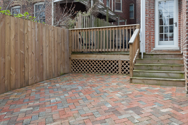 - Deck and brick courtyard