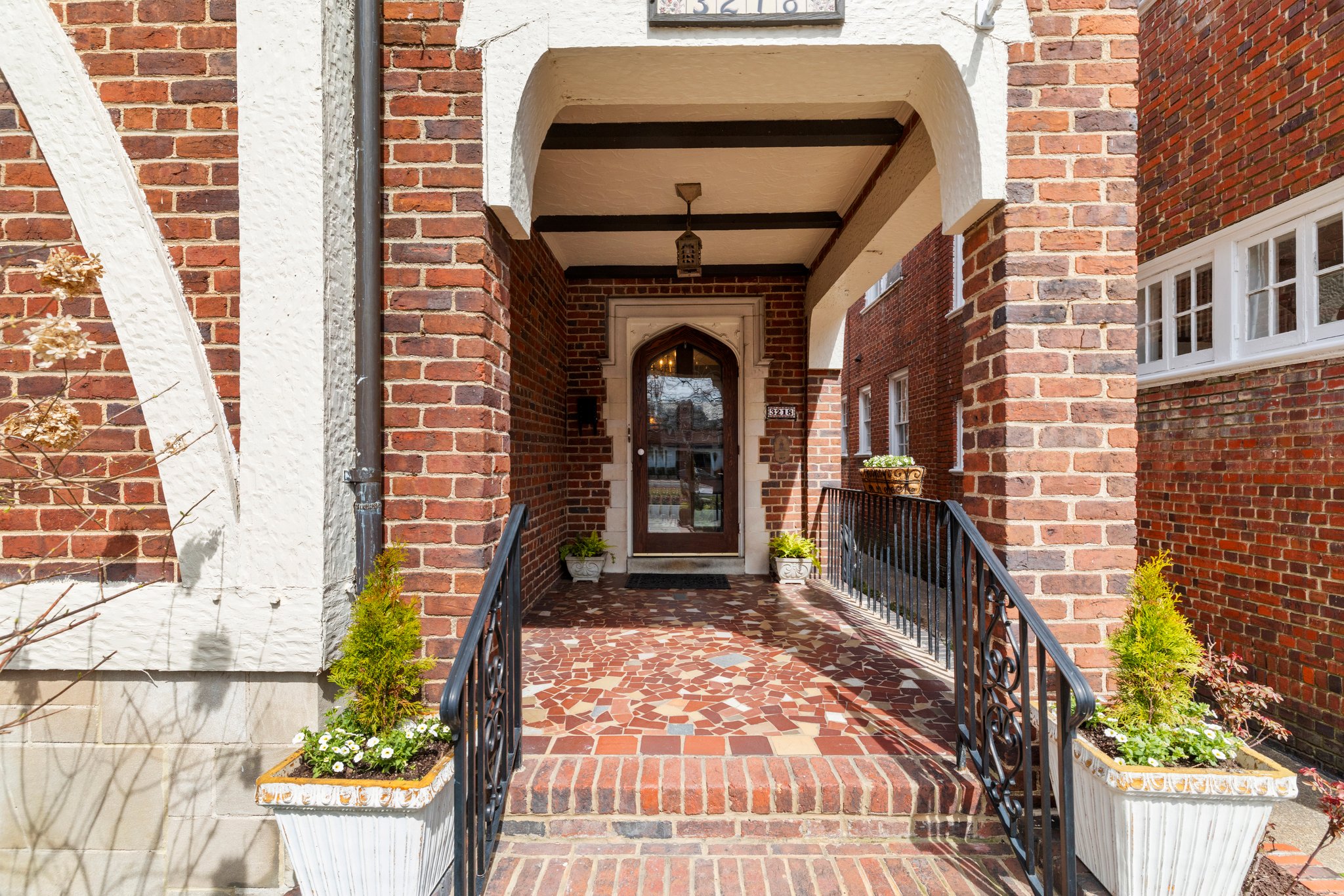 This 1926 Tudor Revival was built by developer Charles Phillips with a design created by his architect cousin Carl Lindner. With over 3700 sf of living space, this beautiful home with two-car garage showcases exquisite historic details and a plan that works exceptionally well for today’s living. As you approach the home, you are drawn in by its quality construction with prominent front gable, half-timbered and stucco facade with decorative brickwork and unique slate roof. The recessed entrance and arched door open to a gracious foyer and turned staircase. The first floor features a light-filled living room with a limestone fireplace flanked by bookcases. The family room features original arched niches and seamlessly flows to both the formal dining room and kitchen. The kitchen features granite counters and stainless steel appliances and has an adjoining mud room. The outdoors is brought inside via glass doors in the dining room that open to the raised terrace and walled courtyard. Upstairs there are 3 bedrooms all with ensuite baths – including the primary suite with Carrara marble double vanity, marble shower and walk-in closet. An added bonus -the loft space over the primary suite – perfect for an office with a bird-eye view of the avenue. The lower level offers 900+ square feet of versatile living space with a recreation room, kitchenette and adjoining room with full bath. With a separate entrance from the exterior, this space offers many possibilities. Enjoy right-sized living in this well-maintained home in the heart of the Museum District just steps from the VMFA, shopping and dining in Scott’s Addition or Carytown and easy access to downtown and the interstate. The 3200 block of Monument Avenue is one of the most significant blocks in the Museum District where noted architects and builders created a cohesive design filled with delightful single family homes. The area is enhanced by a strong social neighborhood association and many interest groups in which the current owners have happily participated.