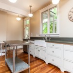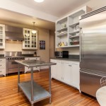 - Chef’s kitchen with custom cabinets and stainless appliances.