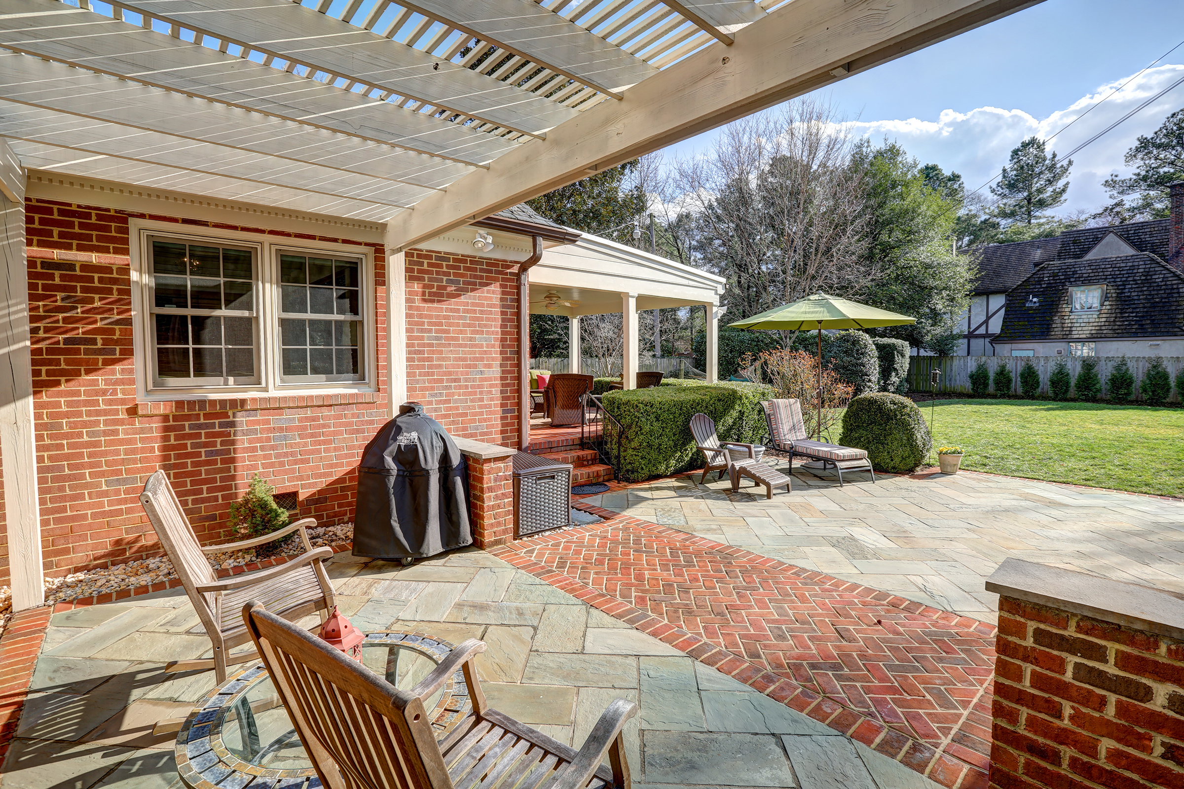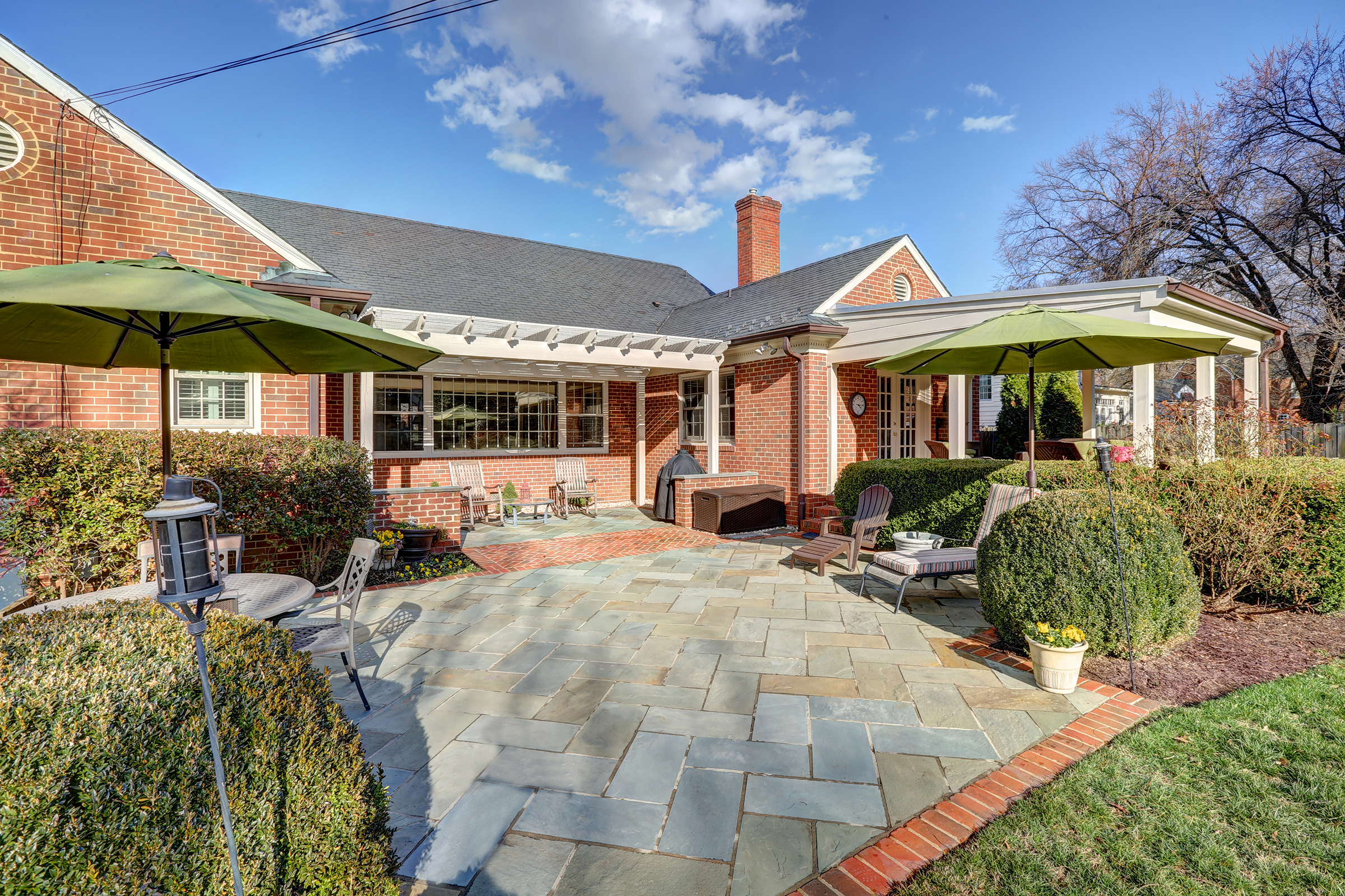 Sited on a .6 acre flat lot in the desirable Windsor Farms neighborhood, sits this deceiving brick and slate Colonial Revival Cape that features 5 bedrooms and 3.5 baths. With over 4,000 sq. ft. of flexible living space, the first and second floors exude warmth and light. Enter the first floor to find a 16’ center hall that opens to lovely formal rooms, an eat-in kitchen, a spacious family room with gas fireplace and built-ins that connects to the covered terrace, a first or second floor master suite with renovated baths, and three additional bedrooms. Upstairs you will find a gracious landing leading to an additional bedroom and renovated bath plus a possible 6th bedroom, office or playroom. The brick walled rear yard has plenty of outdoor seating with a covered loggia area, a bluestone and brick lined terrace that overlooks the yard and includes the detached shed. Don’t miss this true gem that has been meticulously maintained and updated.