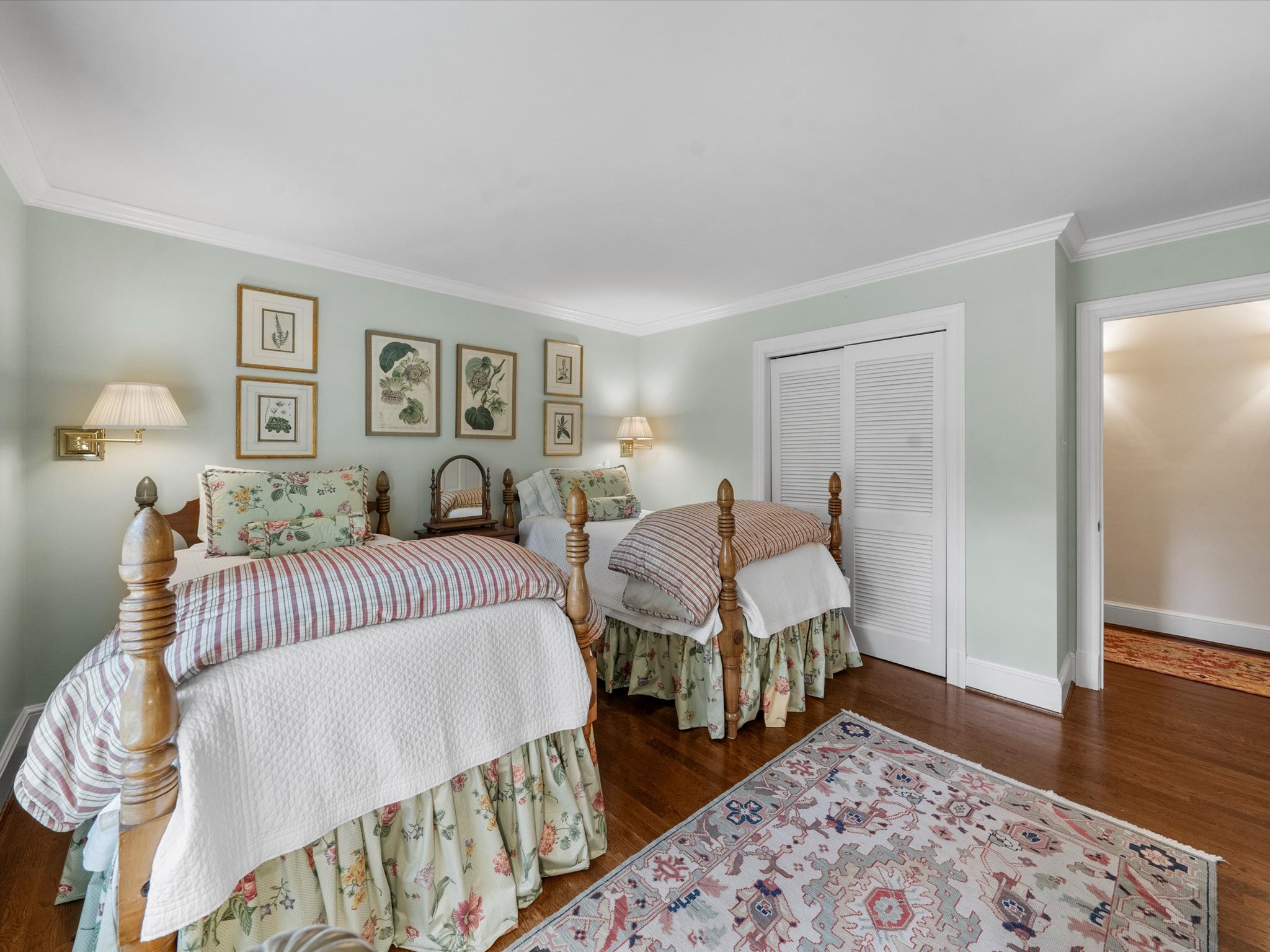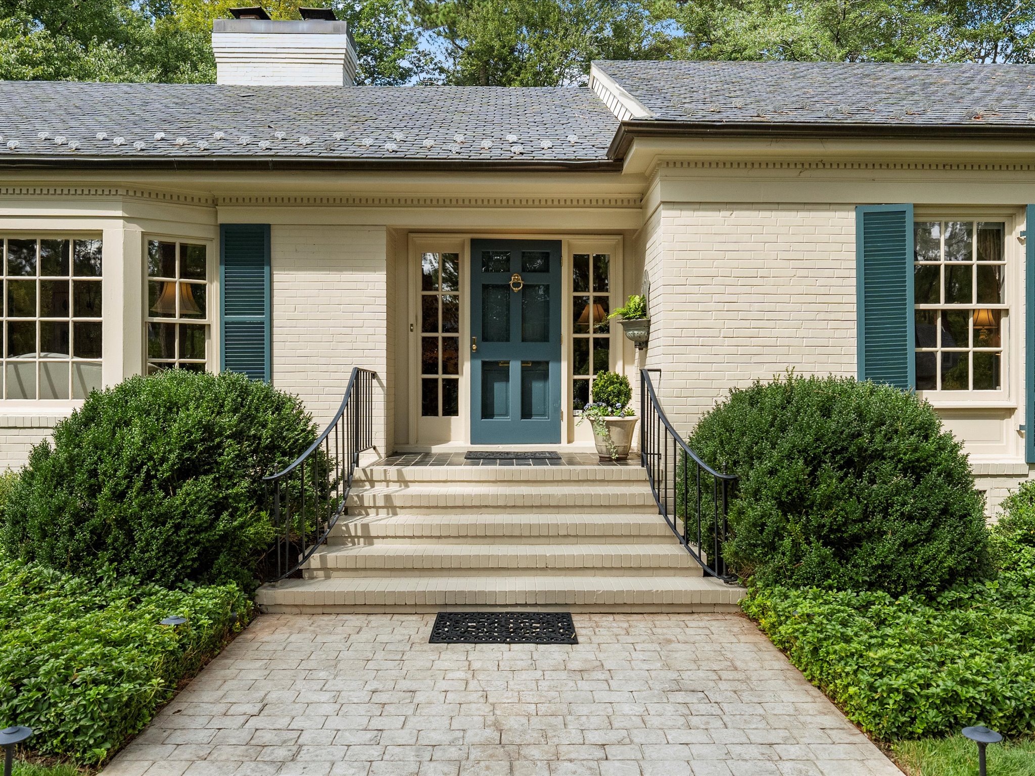 Located in the sought-after Saint Christopher neighborhood, sits this charming one-level brick and slate home that has been lovingly cared for and beautifully updated. Blending timeless charm with modern ease the sunlight streams through a graceful bay window, filling the home with warmth and highlighting elegant hardwood floors and crown moldings throughout. Large formal rooms create a gracious tone, while a cozy den with fireplace and built-in bookcases flows seamlessly into a window-wrapped sunroom where serene views of the lush yard and stone patio await. An updated and eat-in kitchen blends style and function, and a versatile family recreation room with built-in desk area and private side entry adds convenience. The spacious primary suite offers abundant closet space and a private retreat, complemented by two additional bedrooms and updated baths. Offering the ease of one-level living, refined architectural details and an unbeatable location, this home is a rare jewel in the Westend area.