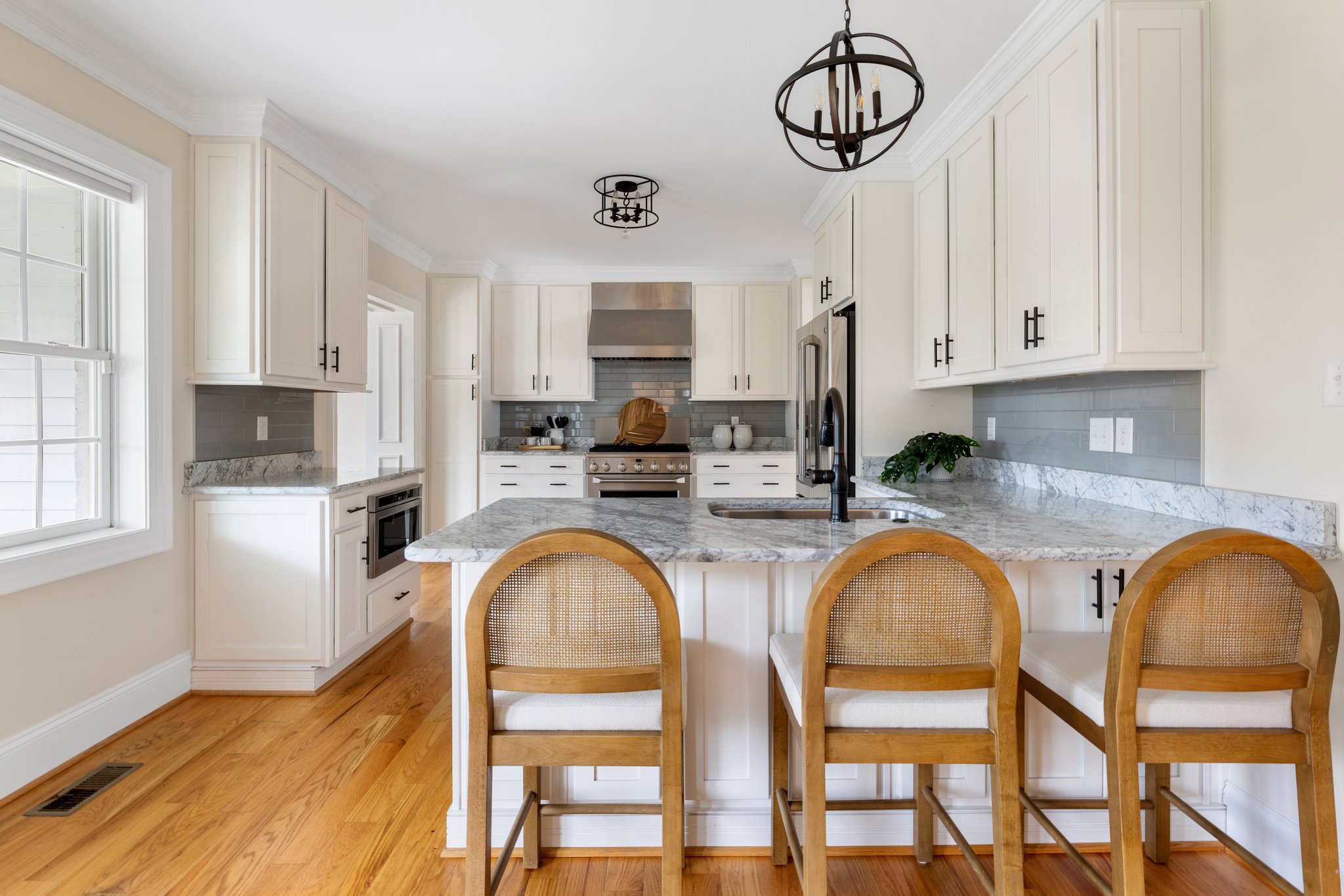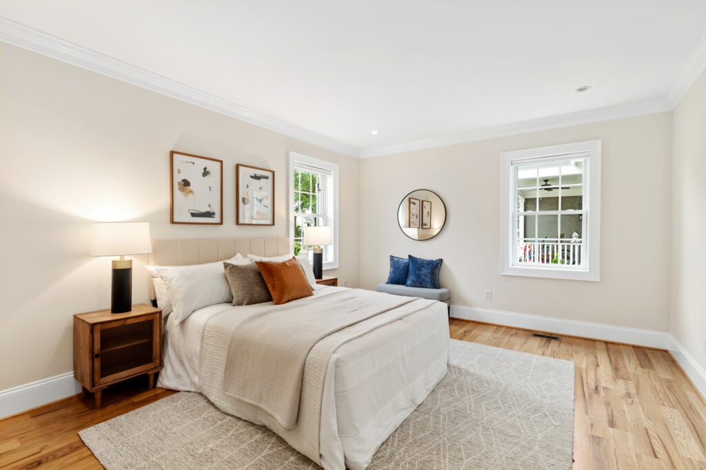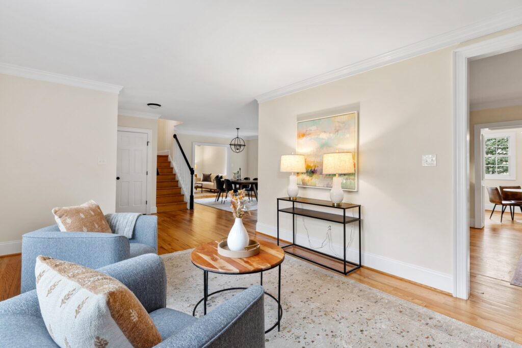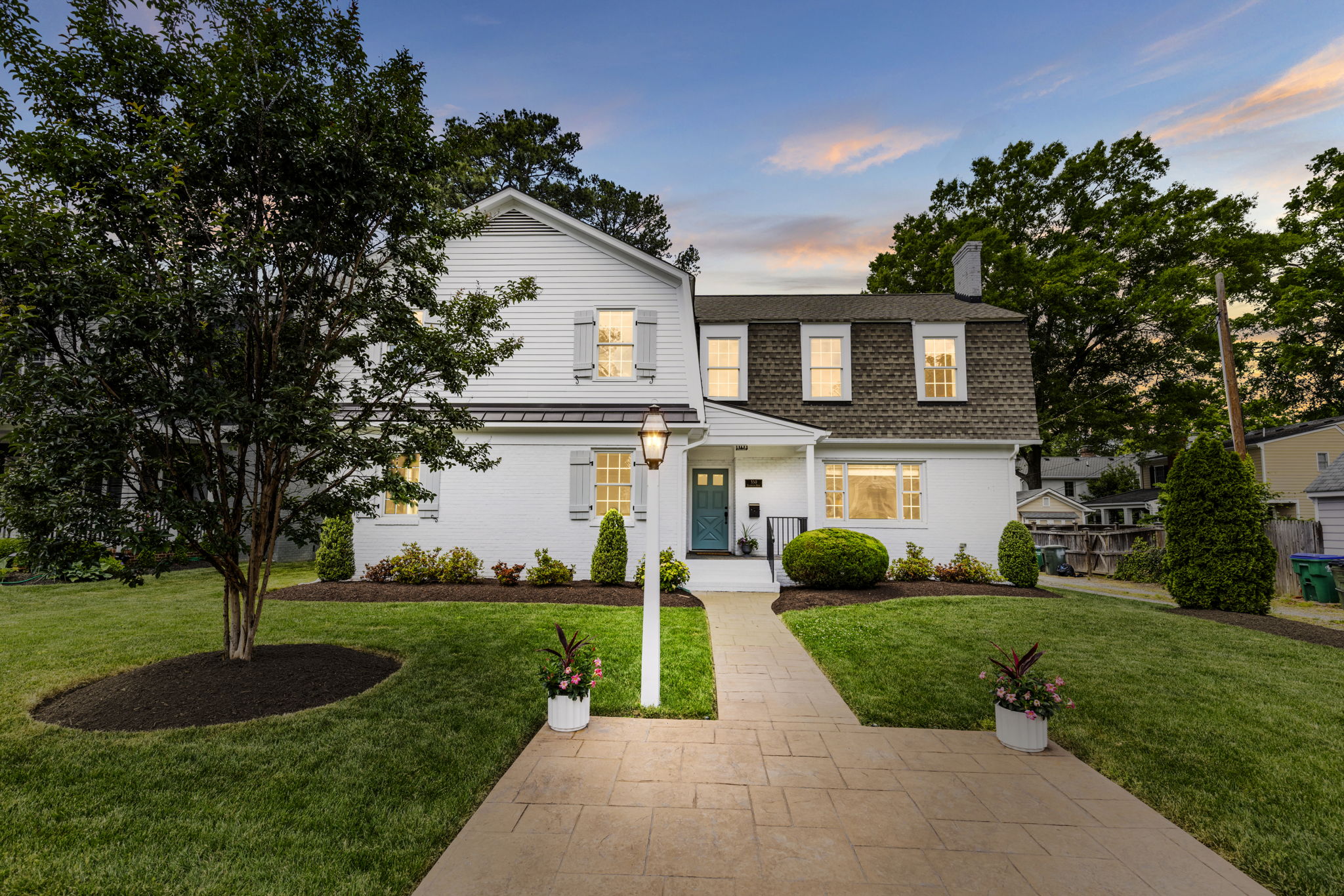 Completely reimagined in 2017, 350 Lexington Road is a showstopping Dutch Colonial with all the benefits of newer construction—inside Stonewall Court – a classic Richmond neighborhood. This 4-bedroom, 4-bath home offers an open-concept floor plan and generous light-filled rooms for today’s modern lifestyle. The welcoming covered front entry opens to a spacious living room with gas fireplace and flanking built-in bookcases and seamlessly flows into the dining area and a gourmet kitchen. The kitchen is a chef’s dream with abundant cabinetry, Carrara marble counters and GE Monogram appliances including a 6-burner gas range with hood, microwave, dishwasher and refrigerator that even has a built-in hot water dispenser. The kitchen connects to a sunny breakfast room/morning room that overlooks the rear yard. The first floor is completed by a cozy family room off of the dining area and a first floor bedroom suite with walk-in closet and tiled bath with tub/shower. The first floor bedroom also has flexibility to be an office. The covered back porch is accessible from both the dining area and the morning room – offering easy access to the outdoors for that morning cup of coffee or alfresco dining. Upstairs, the spacious primary suite offers a walk-in closet, spa-like bath with oversized dual vanities, large marble shower with bench and built-in niches, private water closet, and a linen closet. Two additional upstairs bedrooms each have walk-in closets and private baths. A large laundry room with storage completes the second floor. The landscaped backyard offers a stamped concrete patio and is irrigated and fully fenced – a true private oasis. Paved curb parking and two additional parking spaces behind the fence make this home truly turnkey, in one of Westhampton’s most desirable locations.