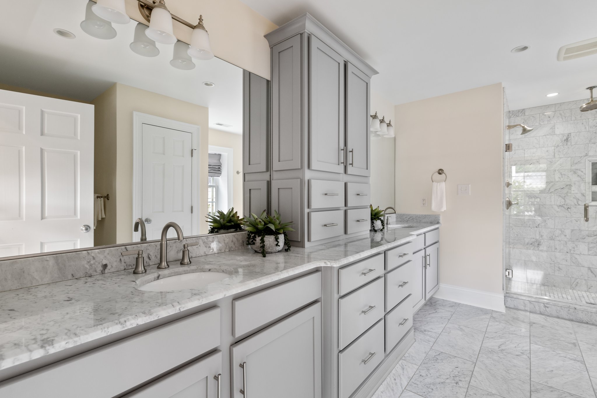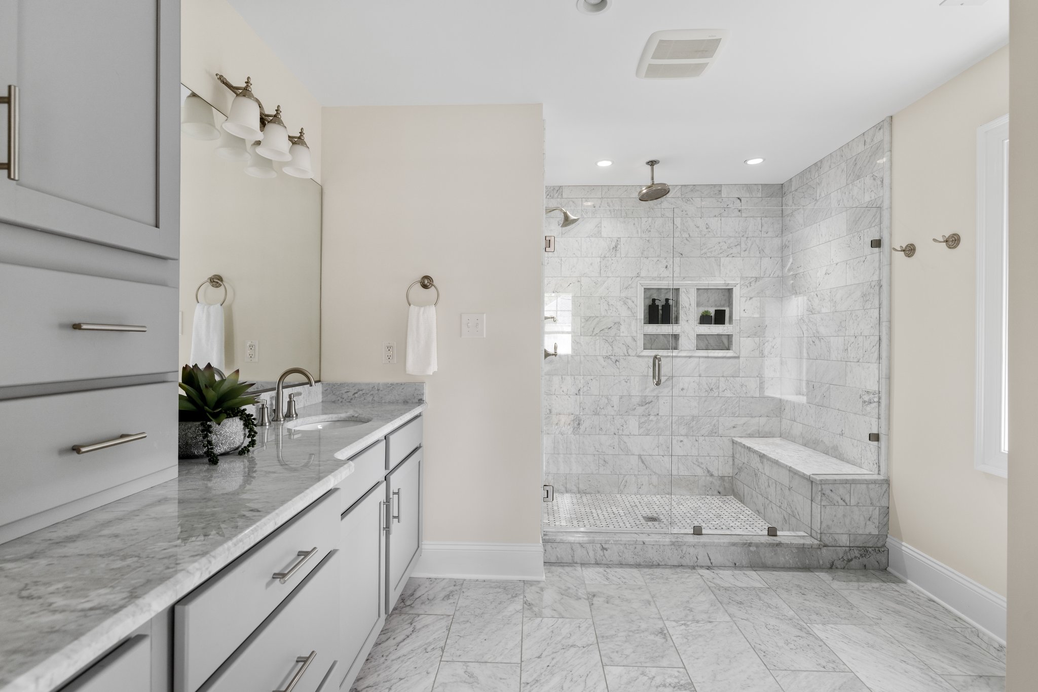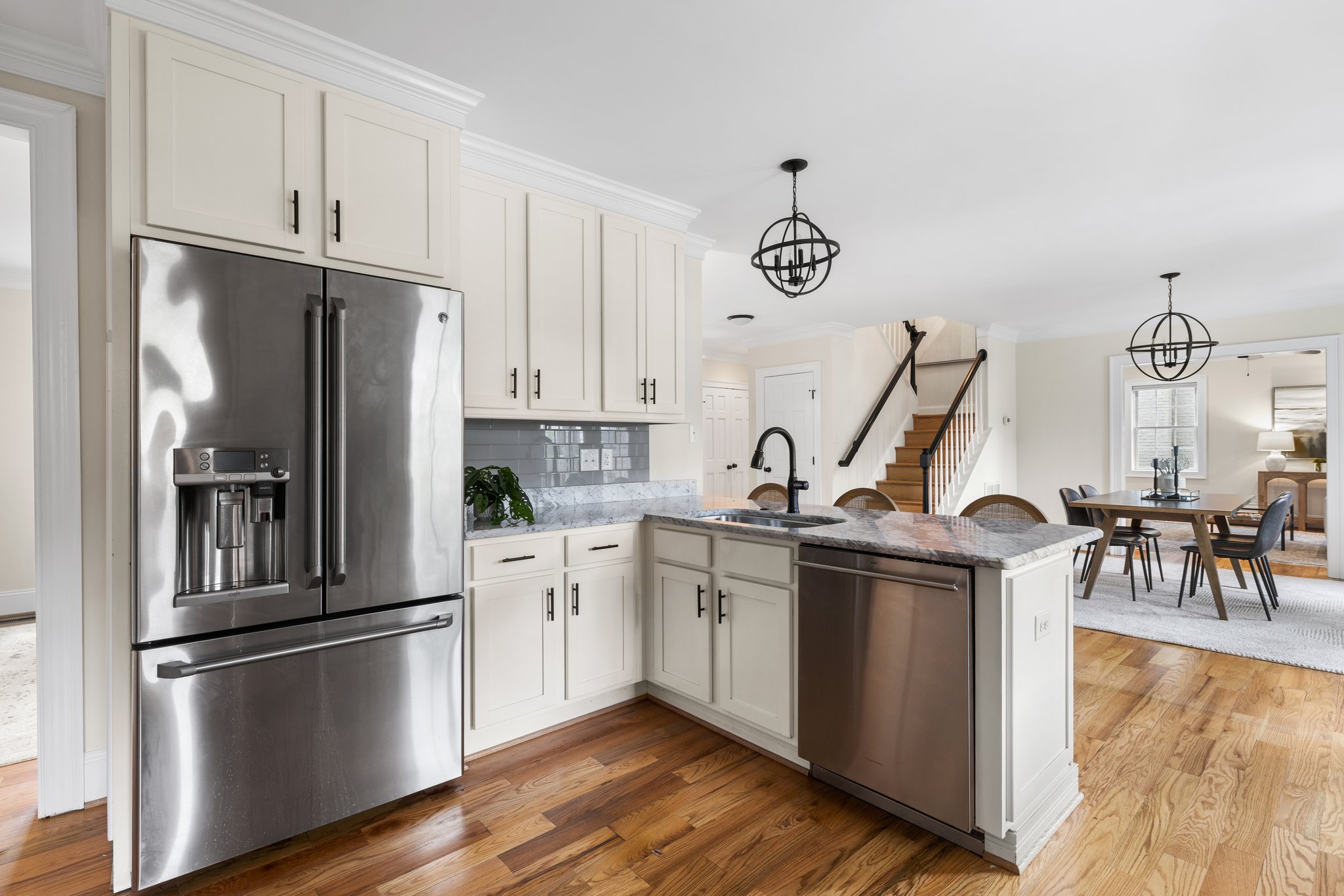 Completely reimagined in 2017, 350 Lexington Road is a showstopping Dutch Colonial with all the benefits of newer construction—inside Stonewall Court – a classic Richmond neighborhood. This 4-bedroom, 4-bath home offers an open-concept floor plan and generous light-filled rooms for today’s modern lifestyle. The welcoming covered front entry opens to a spacious living room with gas fireplace and flanking built-in bookcases and seamlessly flows into the dining area and a gourmet kitchen. The kitchen is a chef’s dream with abundant cabinetry, Carrara marble counters and GE Monogram appliances including a 6-burner gas range with hood, microwave, dishwasher and refrigerator that even has a built-in hot water dispenser. The kitchen connects to a sunny breakfast room/morning room that overlooks the rear yard. The first floor is completed by a cozy family room off of the dining area and a first floor bedroom suite with walk-in closet and tiled bath with tub/shower. The first floor bedroom also has flexibility to be an office. The covered back porch is accessible from both the dining area and the morning room – offering easy access to the outdoors for that morning cup of coffee or alfresco dining. Upstairs, the spacious primary suite offers a walk-in closet, spa-like bath with oversized dual vanities, large marble shower with bench and built-in niches, private water closet, and a linen closet. Two additional upstairs bedrooms each have walk-in closets and private baths. A large laundry room with storage completes the second floor. The landscaped backyard offers a stamped concrete patio and is irrigated and fully fenced – a true private oasis. Paved curb parking and two additional parking spaces behind the fence make this home truly turnkey, in one of Westhampton’s most desirable locations.