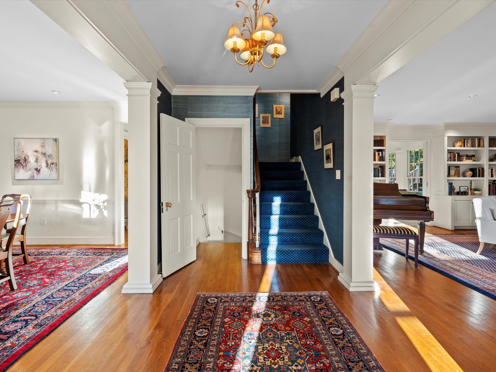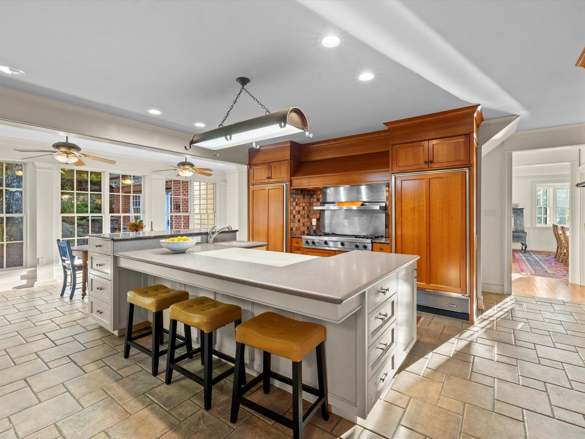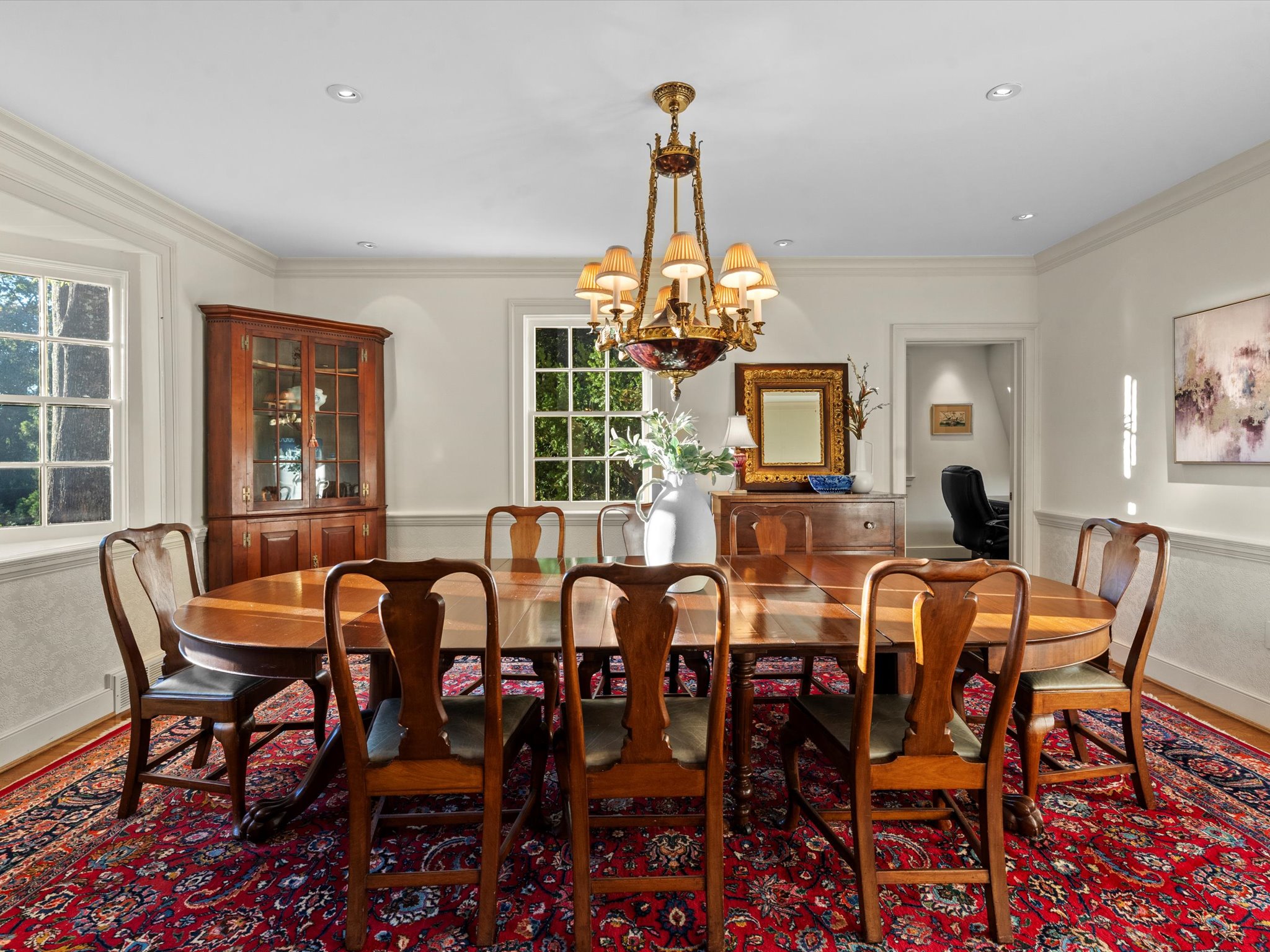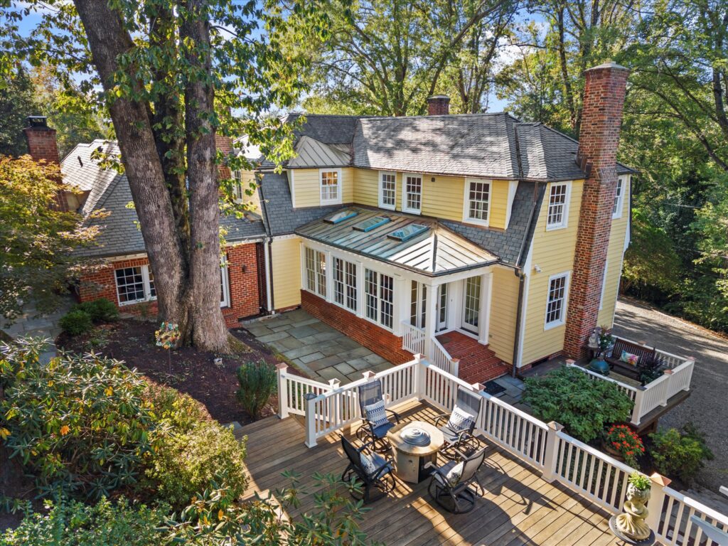 Just steps from the Country Club of Virginia, this tasteful 6 bedroom, 4 full and 2 half bath Colonial exudes storybook charm and timeless elegance with nearly 6,000 square feet of beautifully balanced living space. Originally built in 1934, this home blends classic architecture with modern comfort and was thoughtfully expanded in 2001 with a stunning addition designed by architect, Charles Aquino. The addition encompasses a spacious family room with 13’ ceilings, gas fireplace and custom built-ins plus a private first-floor primary suite, complete with a six-sided bedroom with ten windows, ensuite bath and multiple closets.