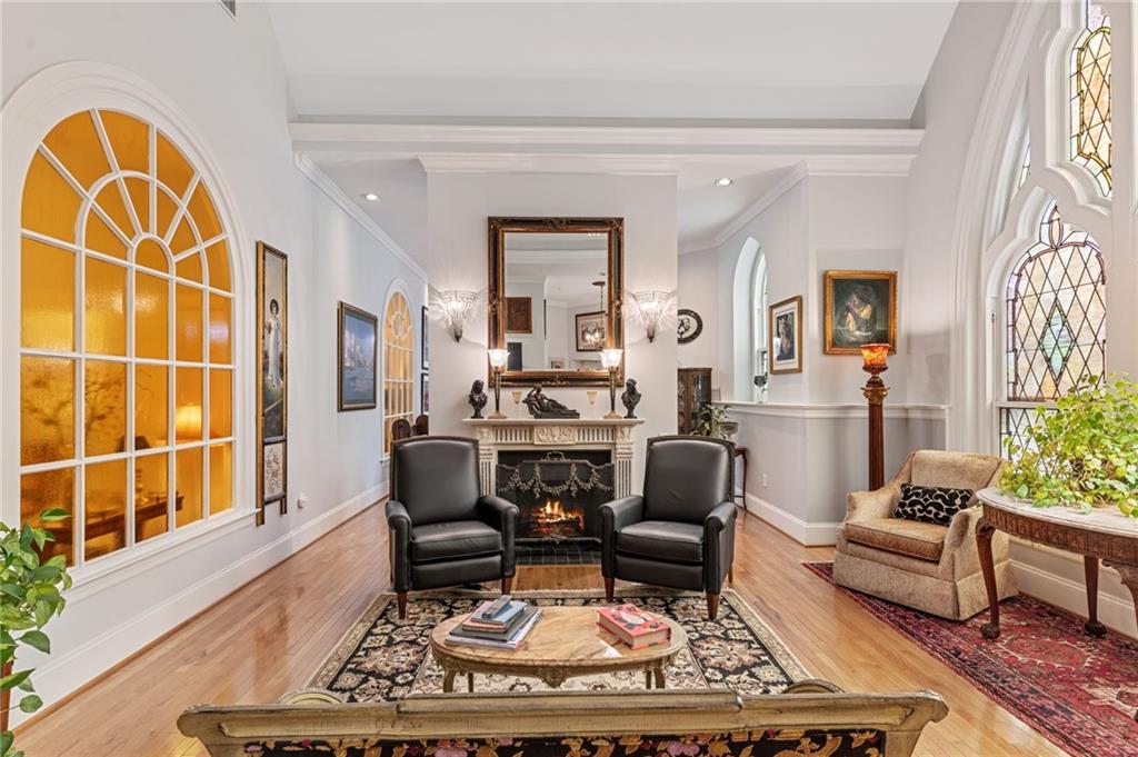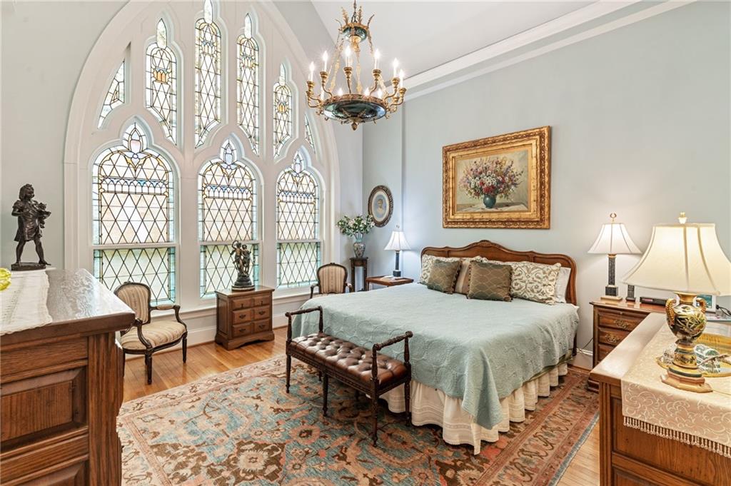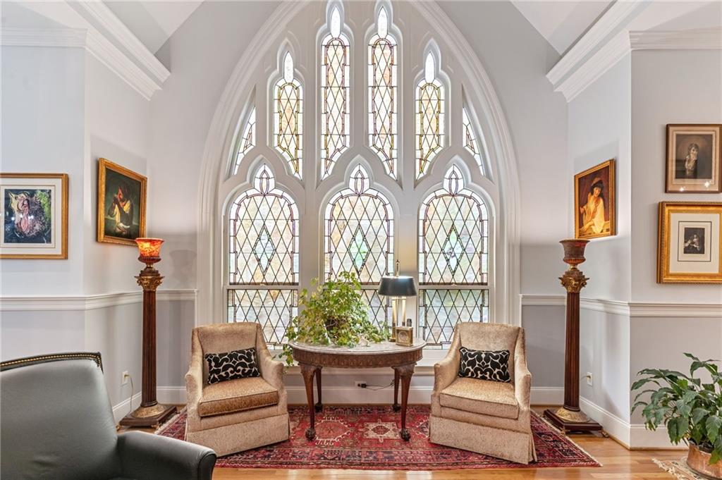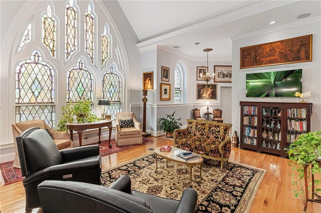 Welcome to this Rare Opportunity! What was once the Choir Loft of a Church, is now a beautiful 3 bedroom/2.5 bath one-level unit on the top level of the Sydney Condominiums. Many stunning original architecture details from the 1920’s were preserved, including breathtaking stained-glass windows. The Renovated Kitchen is complete w/ SS appliances, granite countertops & a peninsula, w/ an open flow to the Formal Dining Room via a large archway. Notice the beautiful chandeliers & soaring ceilings throughout this home! Make your way to the Living Room & swoon over the cozy FP & 2-story stained-glass window. The Primary Bedroom also features an elaborate stained-glass window, cathedral ceilings & a specially curated chandelier. Ensuite Bathroom beautifully updated w/ a double vanity, walk-in shower & separate soaking tub. A 2nd Full Bath serves 2 addit’l Bedrooms. Also included: 2 off-street parking spaces & a private storage room. The Building provides handicap accessibility, an exercise room, conference room & bike storage. Enjoy maintenance-free living w/ a prime location within the Fan District, an easy stroll to Fan favorites like Kuba Kuba, Garnett’s, Joe’s Inn & Lombardy Market!