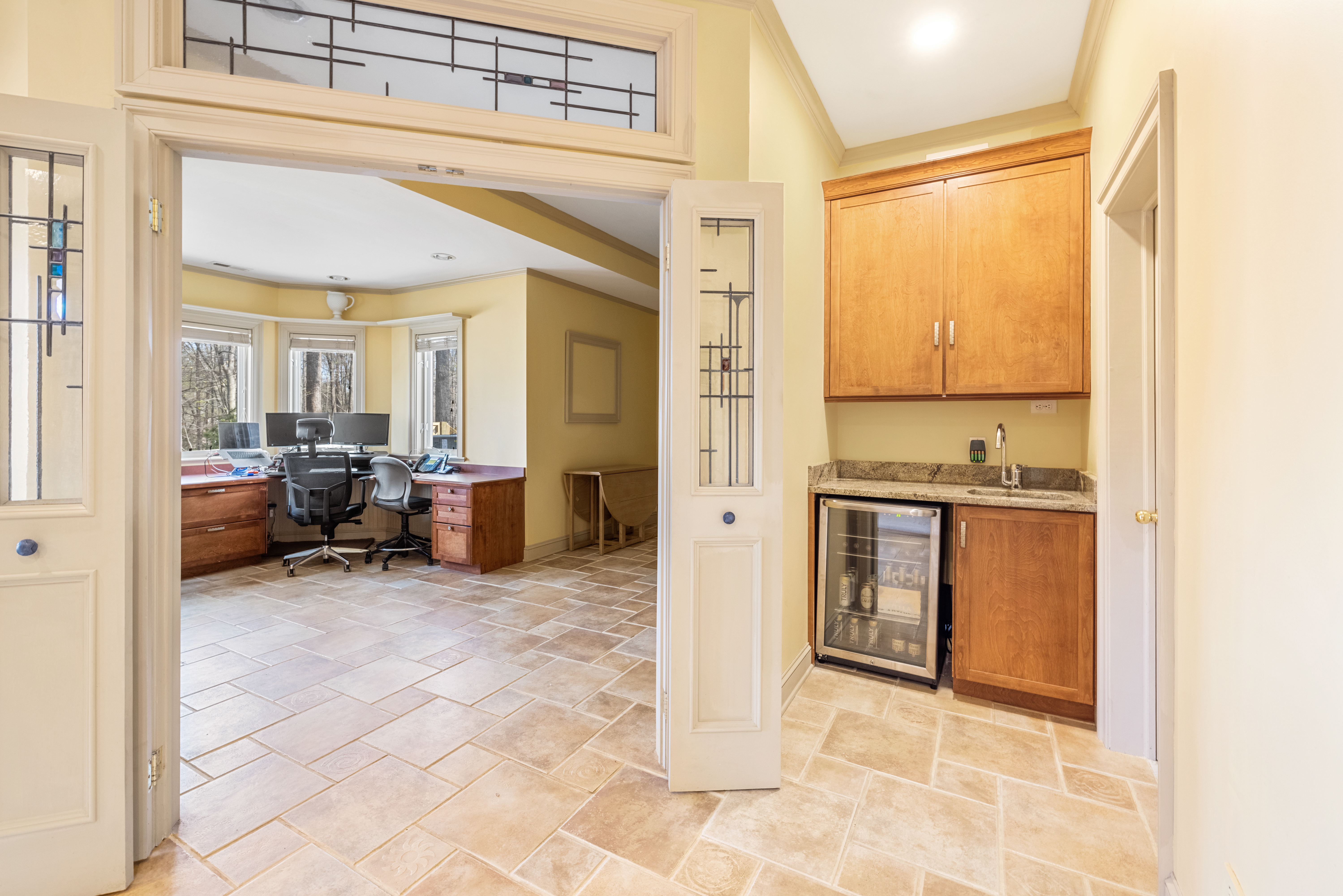 Located in the highly desirable Lower Tuckahoe neighborhood, this 5 bedroom, 4 1/2 bath brick transitional house features over 5000 sq. ft of living spaces with first and second floor primary suites! The open and light-filled interior features a dramatic 2-story foyer with marble floors, a living room with vaulted ceiling and wet bar, formal dining room with bay window, and open kitchen/family room with fireplace, built-in bookcases and breakfast area. The kitchen is updated with white cabinets, corian counters and stainless steel appliances. Upstairs you will find 3 additional bedrooms and two updated baths. The lower walk-out level features a wonderful and large recreation room with built-in cabinets, gas fireplace and wet bar plus an office with built-in desks plus the perfect au pair or guest suite. Additional features include the attached 2-car garage, ample walk-in closets and storage plus a rear deck that overlooks the private fenced rear yard.