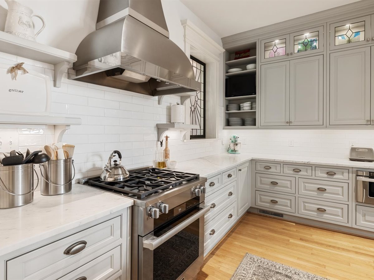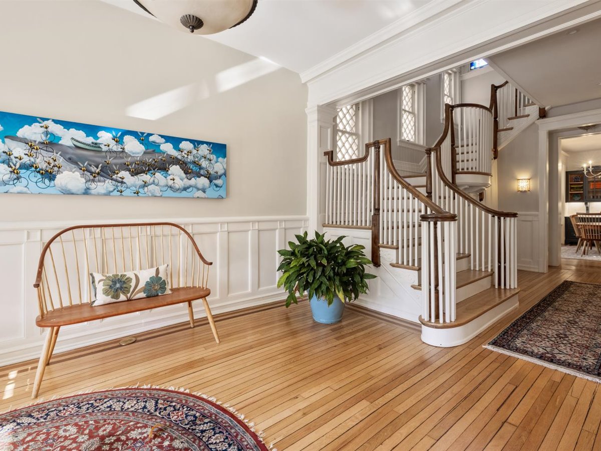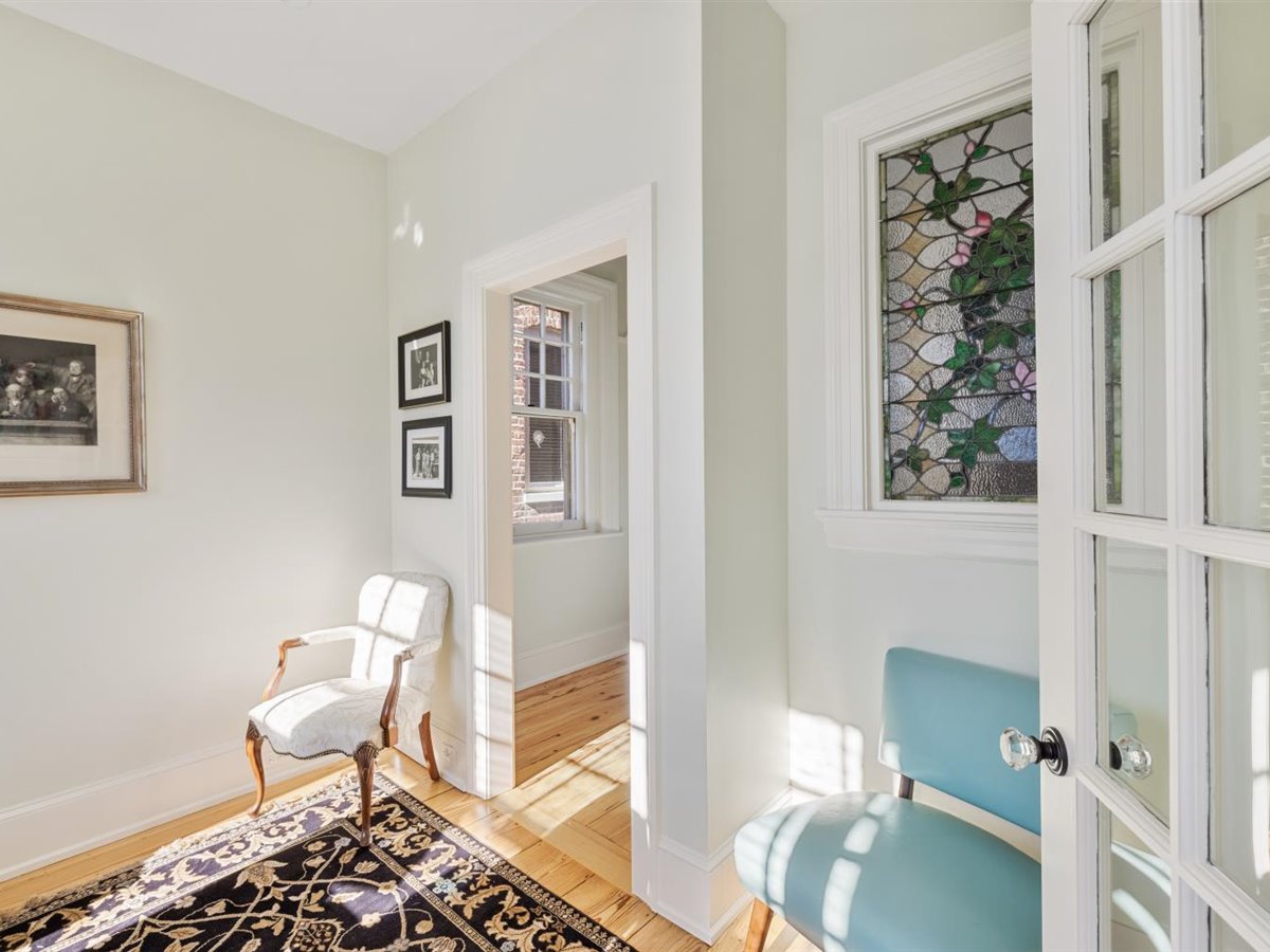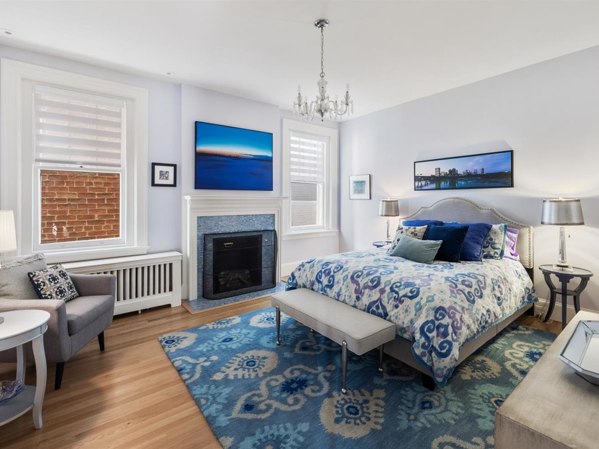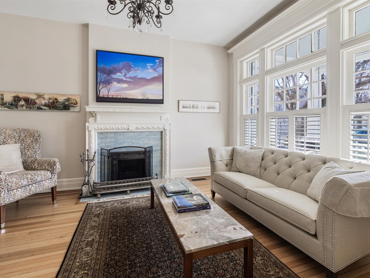 Meticulously renovated 5 bedroom, 4 1/2 bath home with FIRST FLOOR PRIMARY SUITE AND 3 CAR GARAGE. Extensively renovated in 2017, this detached Fan rowhouse offers a large foyer with beautiful wainscoting and turned staircase, double parlors with fireplaces, a high-end Chef’s kitchen with custom cabinetry, Miele stainless steel appliances and Carrara marble counter/island – all open to an informal dining area with expansive bowed window. The first floor is completed by a primary bedroom suite with dual walk-in closets and a beautiful ensuite bath with marble topped vanity and shower. The second floor features a a large family room with built-in bookcases/cabinets plus 3 bedrooms and 2 full baths, including a private suite with separate sitting room and balcony. The third floor features a charming bedroom with built-in beds and desks plus full bath- a perfect space for a private teen suite, sleepovers or even a virtual school set-up! Bonuses include full front porch, enclosed bluestone courtyard, 9+ ft. ceilings, 4 fireplaces, wood floors throughout, and interior basement for home gym/workshop plus a sizable tax abatement until 2027!