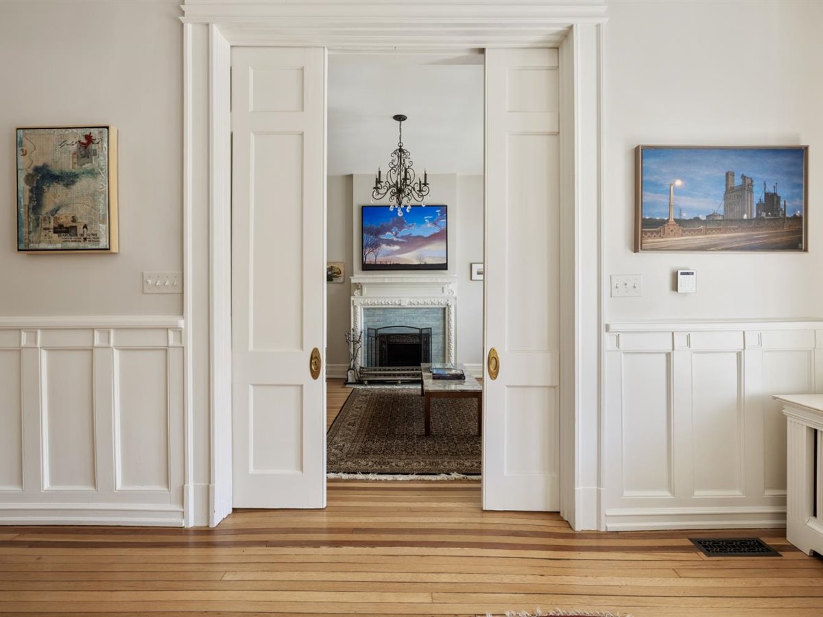 Pocket doors open to front parlor