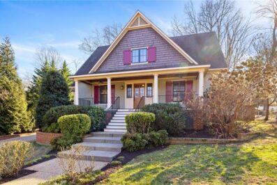Located near the many trails of the James River Park System and Larus Park, this 4 bedroom, 3 1/2 bath Craftsman bungalow exudes charm, architectural detail and is in turn-key condition. You are immediately welcomed by the bluestone steps, full front covered porch and handsome oak entrance. The inviting foyer with wainscoting and turned staircase opens into the formal rooms which seamlessly transition to the beautiful eat-in kitchen with cherry cabinets, granite counters and stainless appliances and the expansive family room with gas fireplace. The first floor is completed by a luxurious private primary suite that opens to the patio and features a walk-in closet with built-ins and a generous bath with separate jetted tub and shower. Upstairs you will find three bedrooms – including an option for a second primary suite, plus an open loft – perfect for an office or homework area. This meticulously maintained home is completed by the detached garage, raised patio, paved driveway with brick retaining walls, and landscaped irrigated yard. Can’t beat this convenient location with nearby shopping, dining and easy access to the interstate.